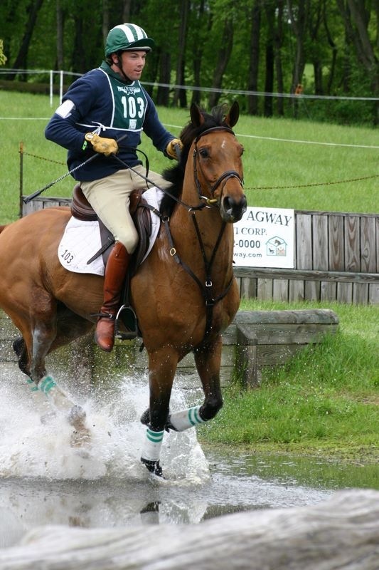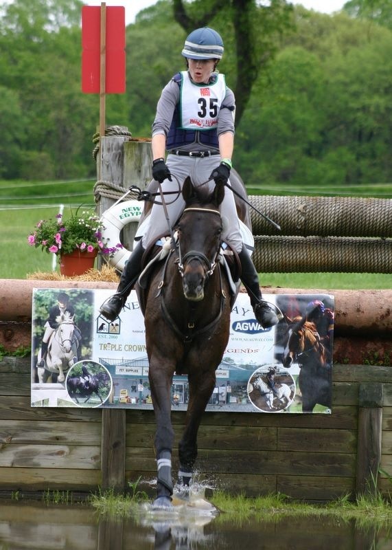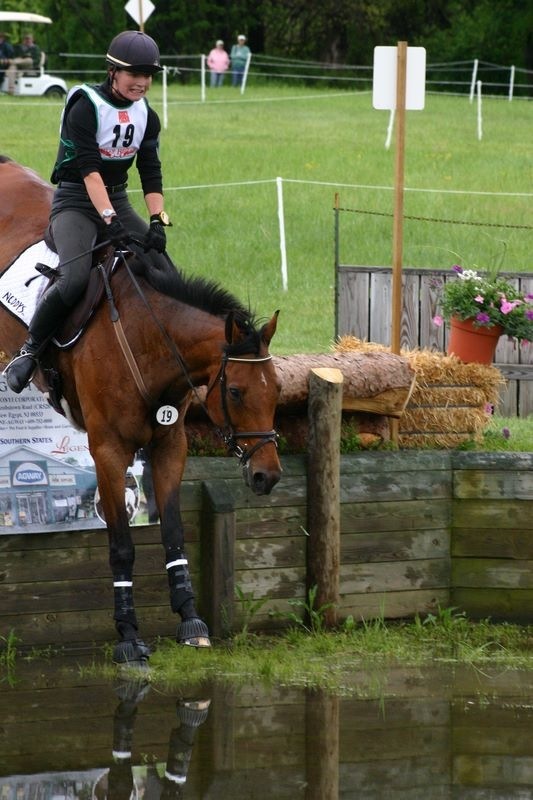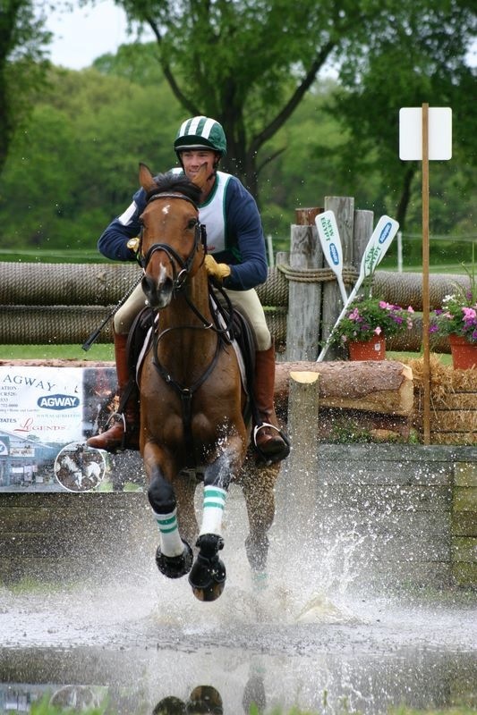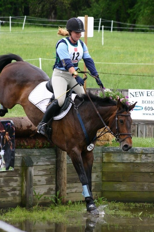 Here's Will's other ride Nevada Bay, a 9yo TB gelding owned by Nanki Doubleday. I have to do this whole sequence...it's priceless. Here he is looking pretty good on the drop down into the water...