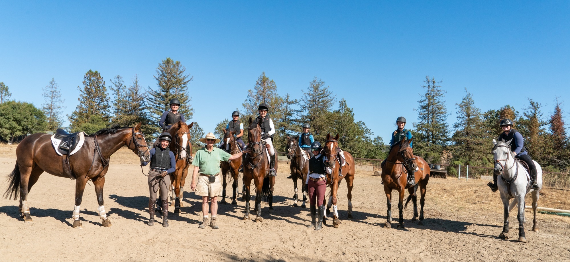Specifics of the "Fun & Education Formula" were provided to all at the Jim Wofford Clinic held on August 20 & 21 at the Horse Park in Woodside, northern California. Eager riders, auditors, and volunteers gathered for a much anticipated two-day clinic with the master bright and early Saturday morning.