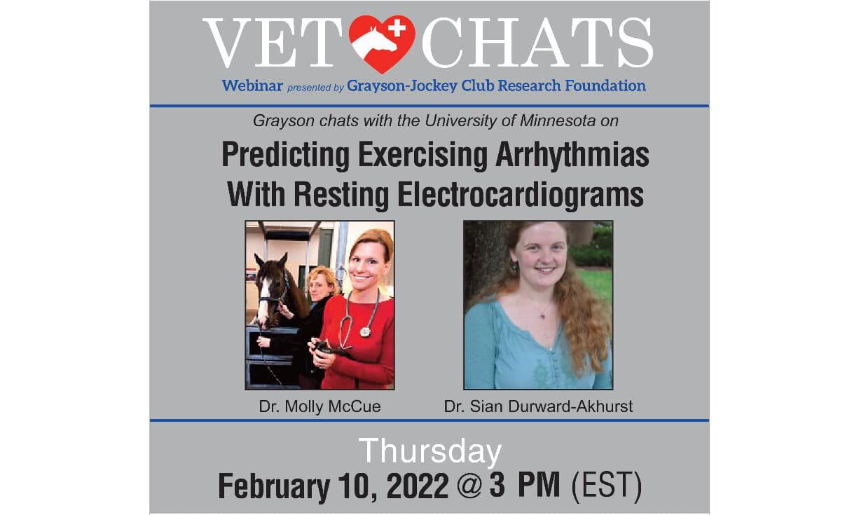Click here to join the Grayson-Jockey Club Research Foundation on Thursday, February 10th at 3:00 p.m. EST, to learn how the important work Dr. McCue and Dr. Durward-Akhurst are doing to keep your sport horse safe!