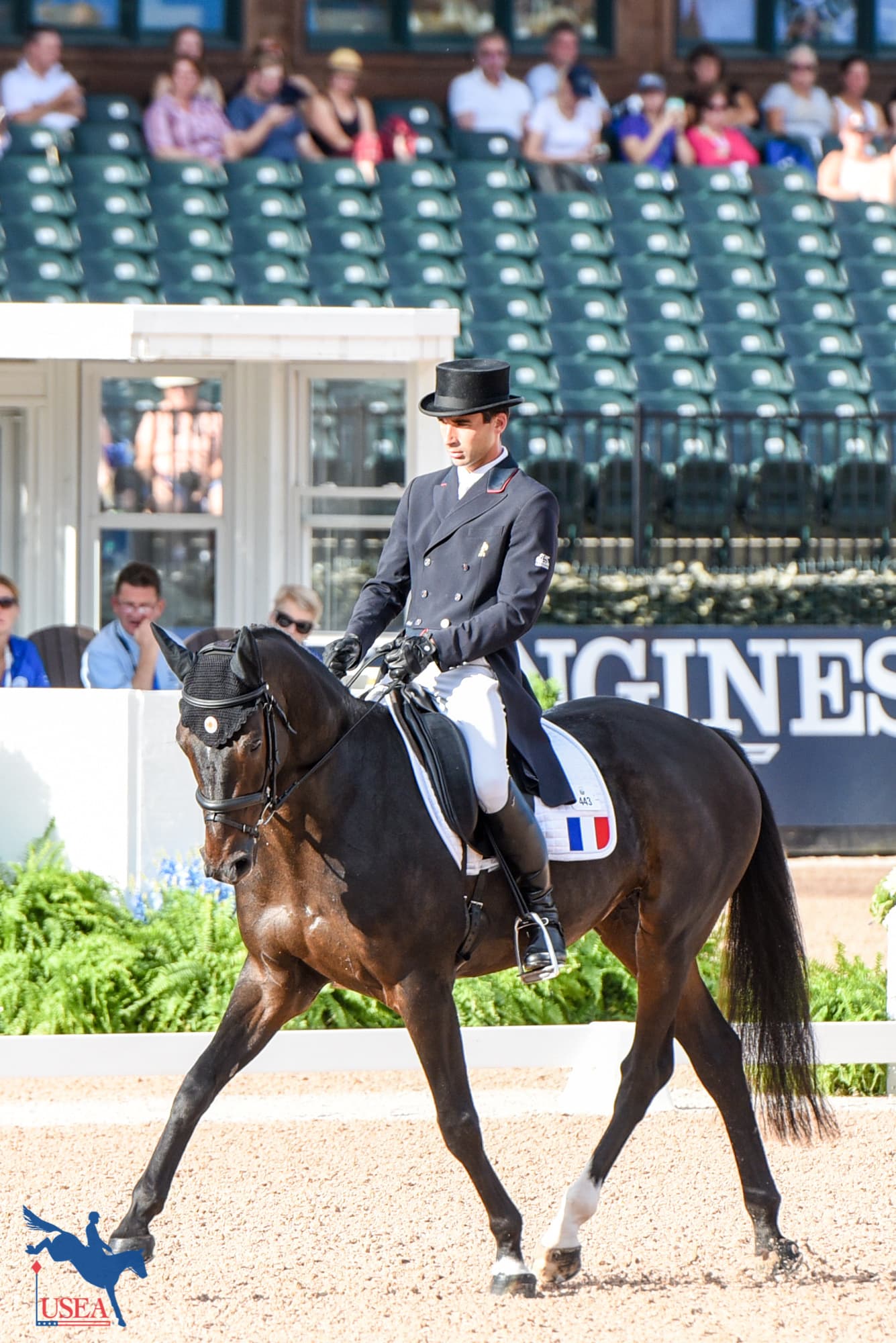 Phillip Dutton and Z (Asca x Bellabouche), the 10-year-old Zangersheide gelding owned by Thomas Tierney, Simon Roosevelt, Suzanne Lacy, Caroline Moran, and Ann Jones, put in a solid test for the United States as the anchor pair, scoring a 27.6 for 12th place. Z, who performed this test for the first time earlier this year at the Land Rover Kentucky Three-Day Event, bested that score by more than six points.