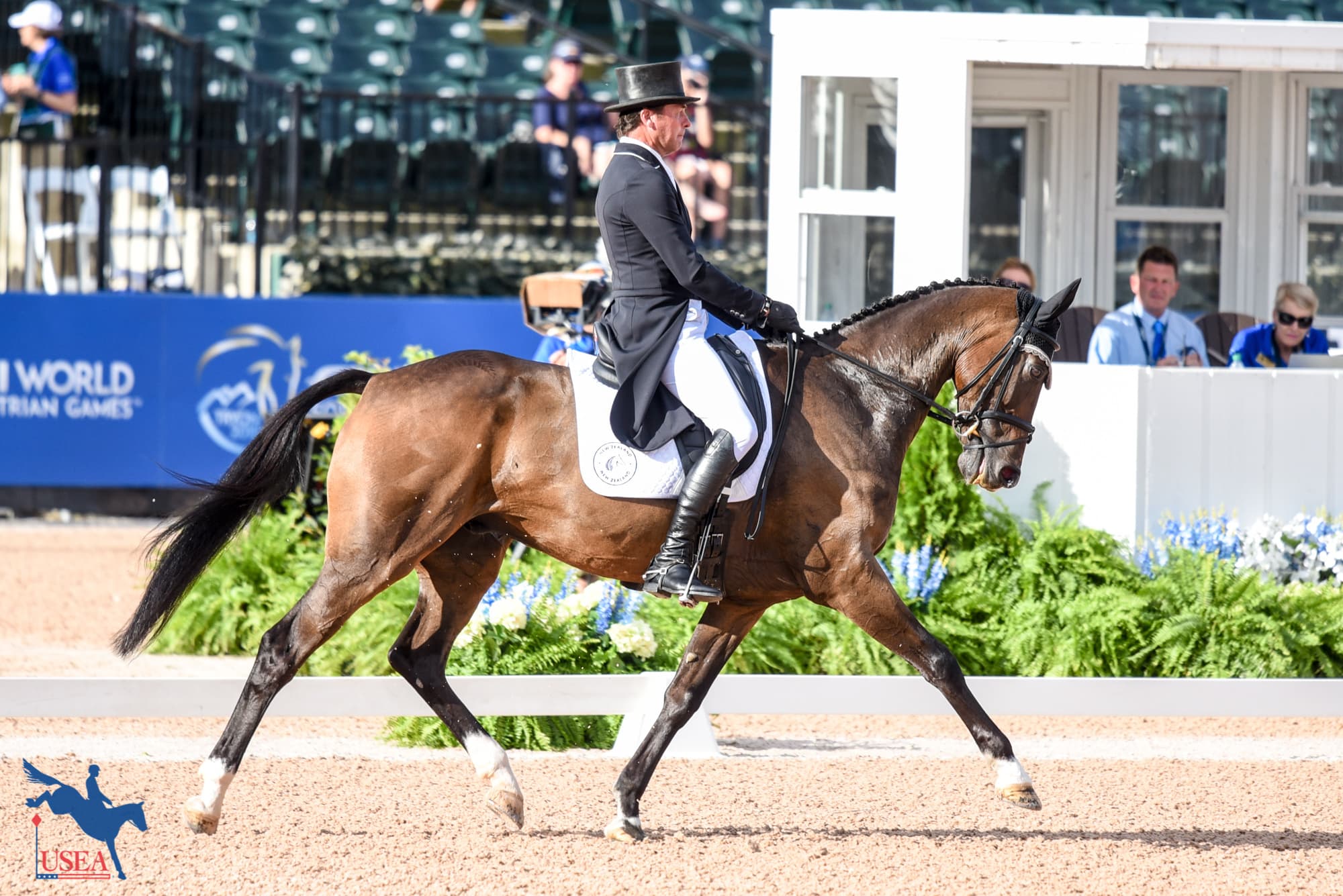 Thanks to Krajewski and Klimke’s commanding tests, Germany sits in gold medal position going into cross-country on a score of 73.4, a World Equestrian Games record. Great Britain sits 7.4 points behind Germany on 80.8 and the United States jumped up the team leaderboard from sixth place to bronze medal position on 83.0.