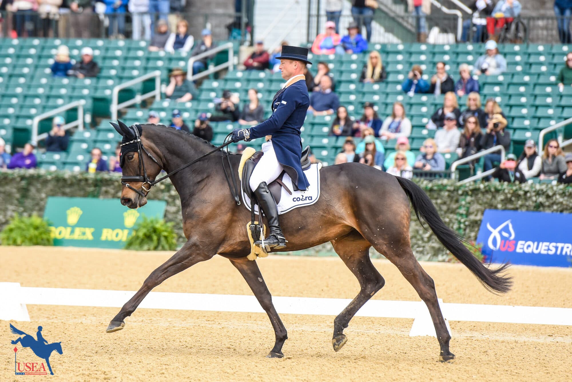 Dressage will resume this afternoon at 1:00 p.m. with Elinor MacPhail O’Neal and RF Eloquence first into the Rolex Arena. Full scores can be found here.