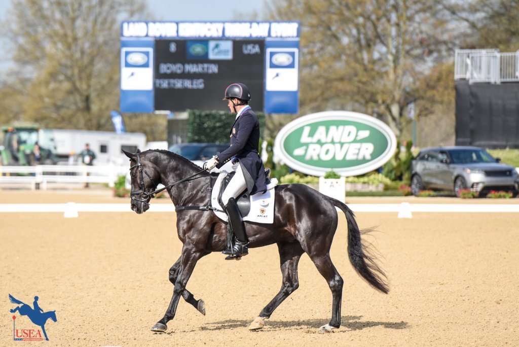 Boyd Martin and Christine Turner’s 11-year-old Trakehner gelding, Tsetserleg (Windfall x Thabana), currently sit in second place four points behind Jung and FischerRocana FST on a score of 31.2.