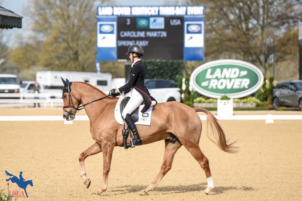 Caroline Martin and her own and Sherrie Martin’s 12-year-old Irish Sport Horse gelding Spring Easy (Garrison Royal x Castlegrogan Clare) were just the third to go this morning but picked up a 33.3 for fourth place. Phillip Dutton and Z (Asca x Bellabouche), the Z Partnership’s 10-year-old Zangersheide gelding sit just .4 away from them in fifth place on 33.7.