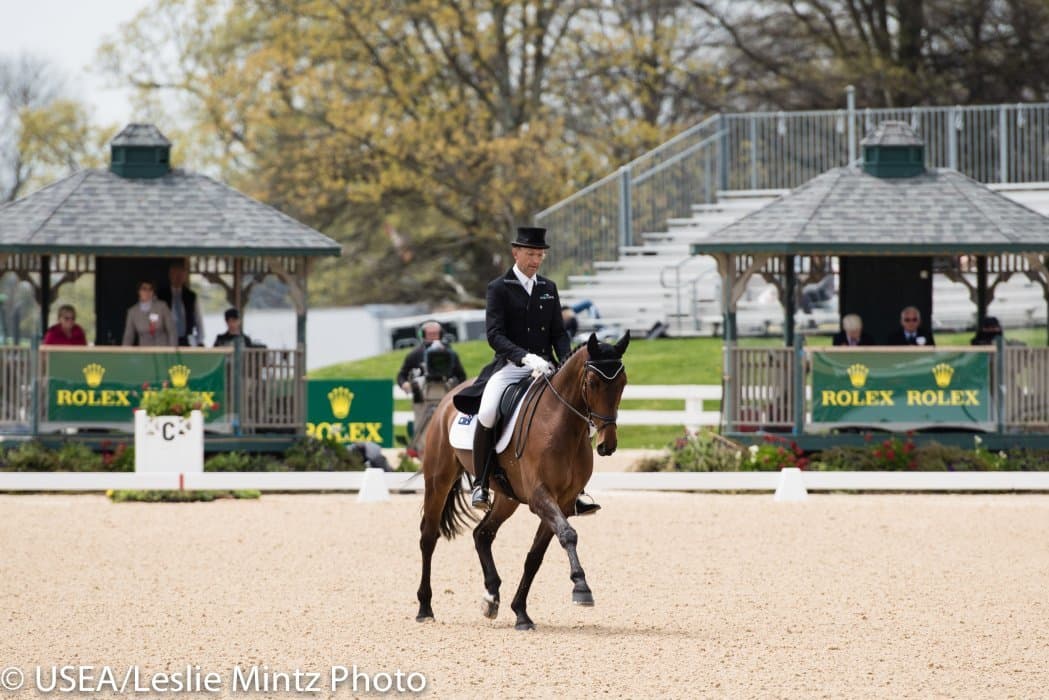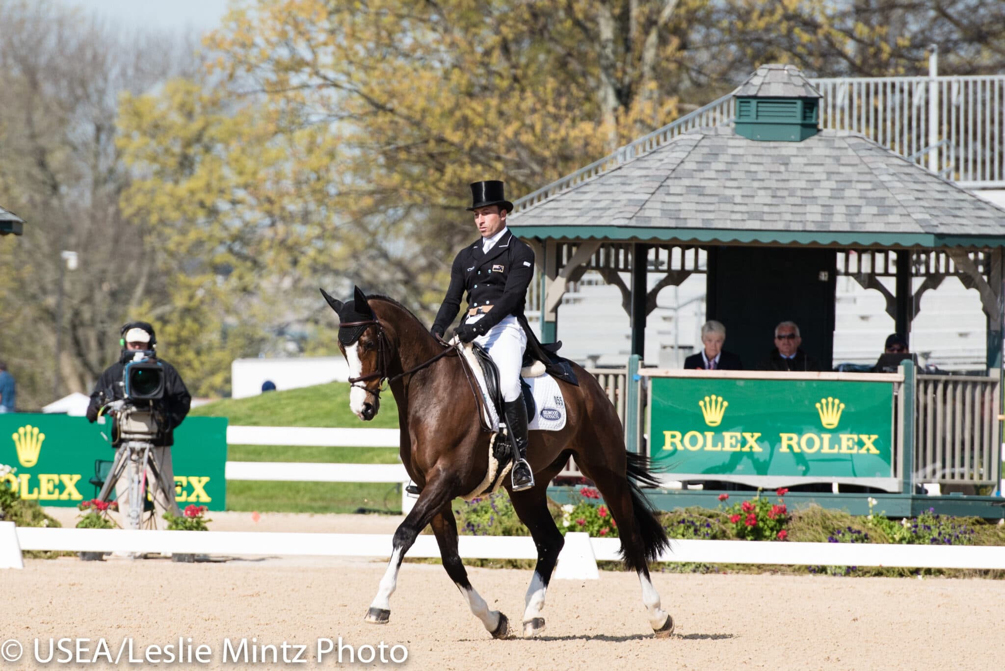 Lexington, Ky., April 24, 2015— Tim Price of New Zealand and Michael Jung of Germany are the co-leaders after the dressage phase of the Rolex Kentucky Three-Day Event, presented by Land Rover. Price rode Wesko to a score of 36.3 just after 10:00 a.m., and then Jung—who won Thursday’s session on Fischerrocana FST—rode La Biosthetique Sam FBW to the same score just before 4:00 p.m.
