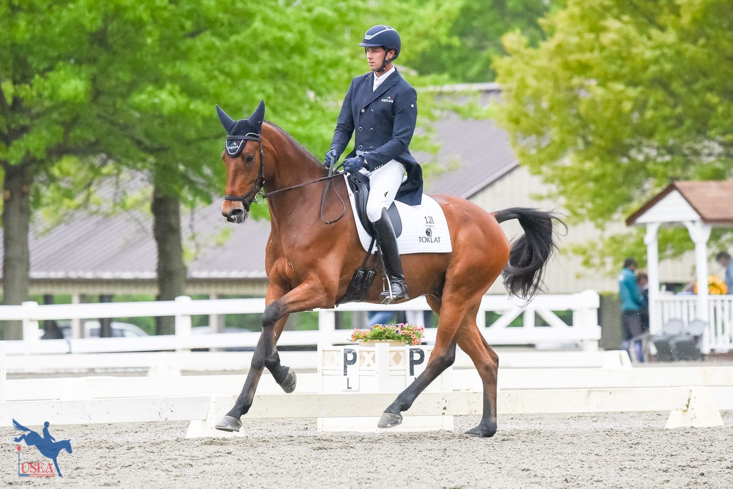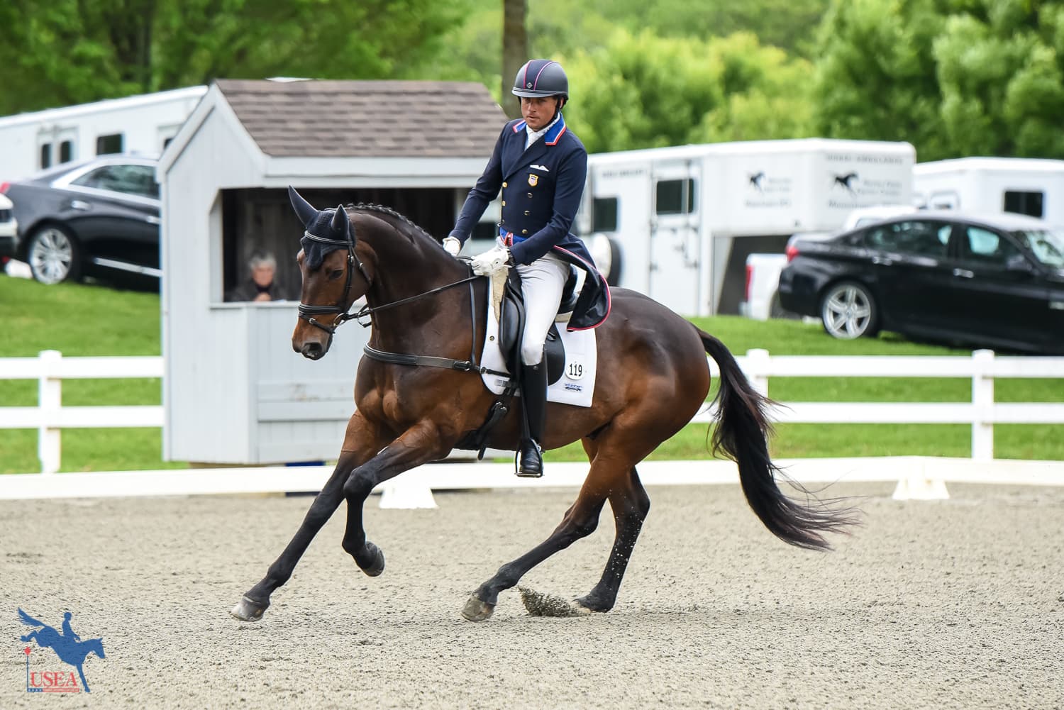 An unseasonably cold and windy day greeted riders on the first day of competition at the Jersey Fresh International Three-Day Event in Allentown, New Jersey. Twenty-nine pairs came forward in the CCI4*-S in front of judges Sue Baxter (GBR), Jo Young (CAN), and Wayne Quarles (USA) to perform their dressage tests, while the CCI3*-S division saw the first 46 pairs trot down centerline for judges Robert Stevenson (USA), Valerie Vizcarrando-Pride (USA), and Janice Conlon (USA). The CCI4*-S division is also a qualifier for the $60,000 Adequan USEA Advanced Final that will take place in August at the USEA American Eventing Championships.