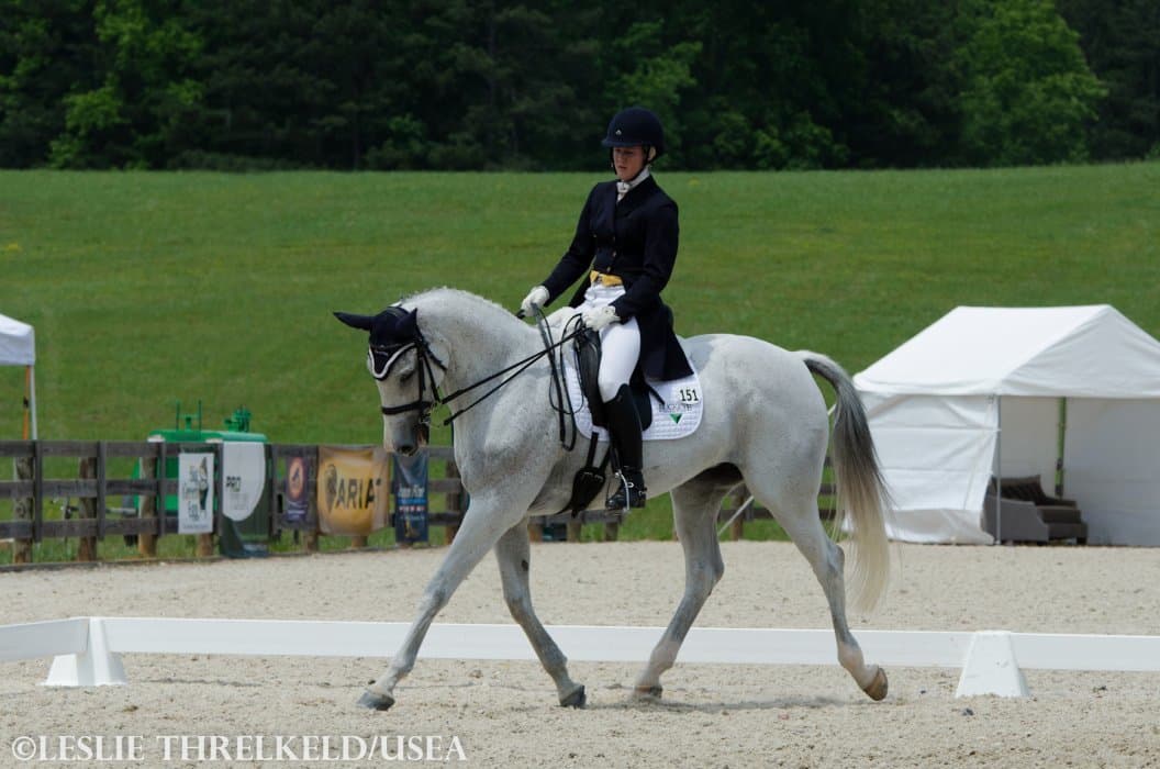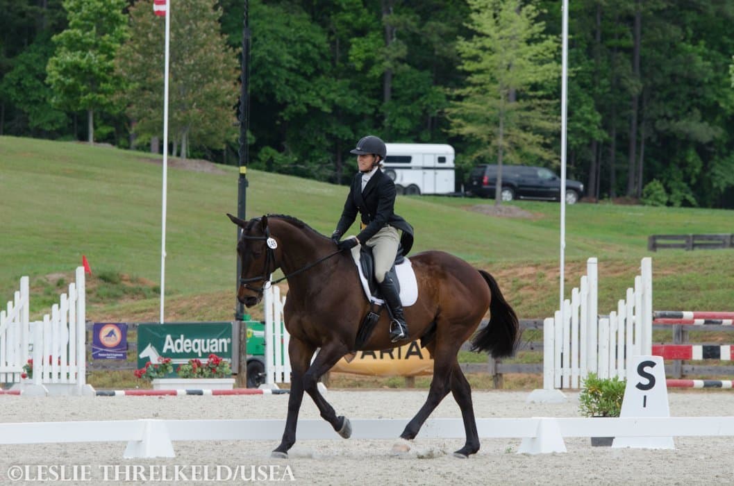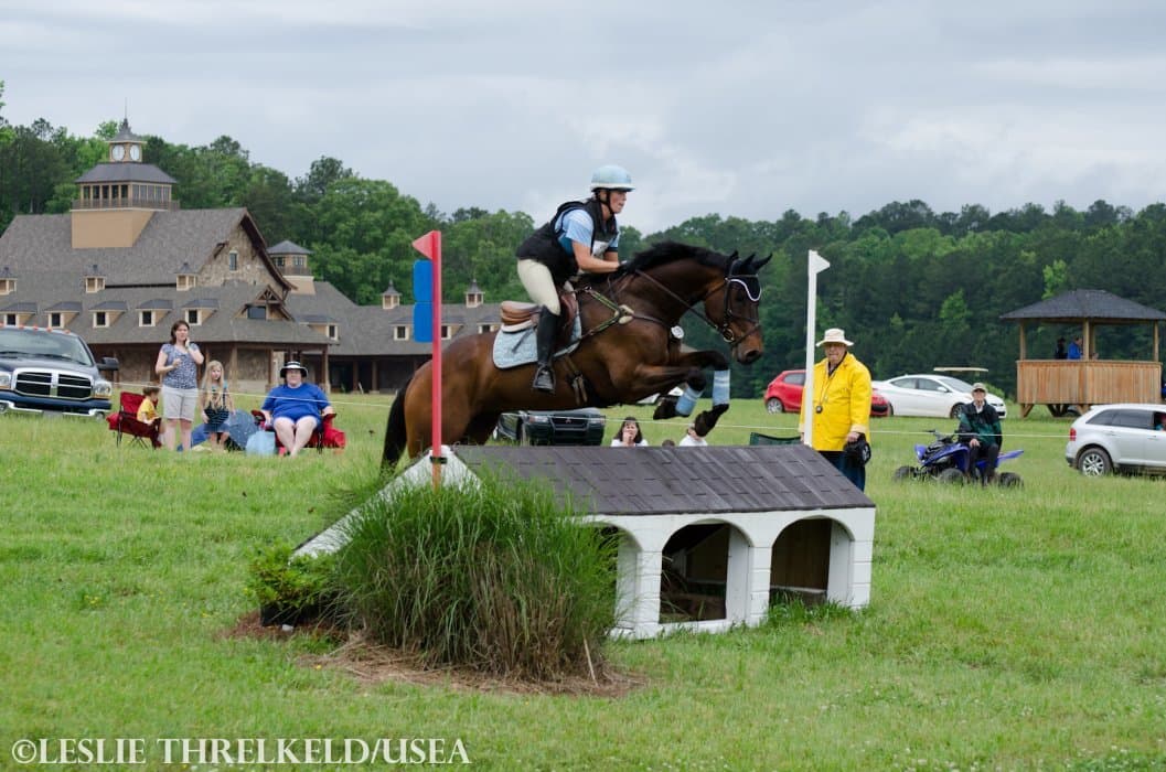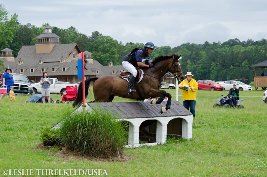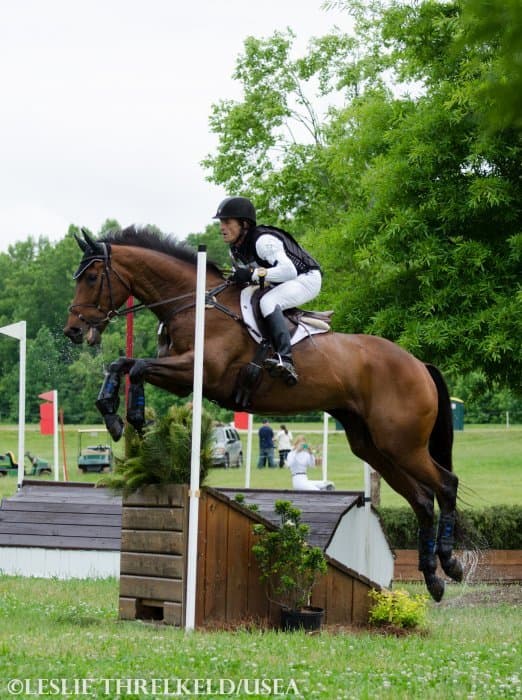 Sir Oberon suffered a strained suspensory in 2010 during an event. Doughty gave him a year-and-a-half off to fully recover and began competing again at Intermediate last fall. Their first Advanced was this March at Texas Rose. “[This course] actually seemed smaller than Texas Rose. When I did Texas Rose, every question was big. Here it seemed like there’s a couple more letup fences,” Doughty said. “The combinations I thought were a little tougher. You had to hold your line, but he’s so adjustable…At the galloping fences, I just sit up and he does his thing.”