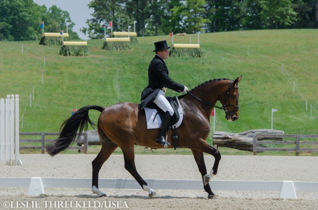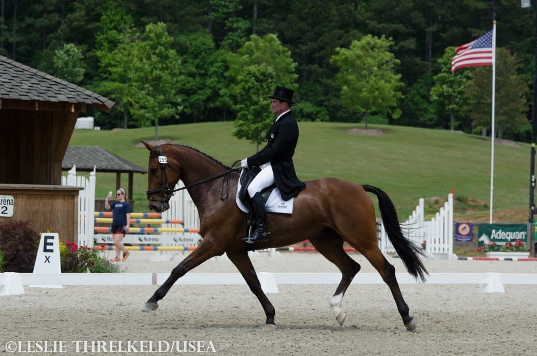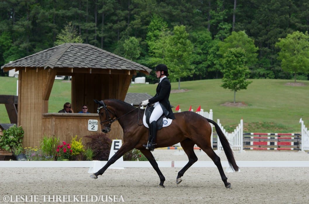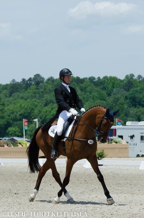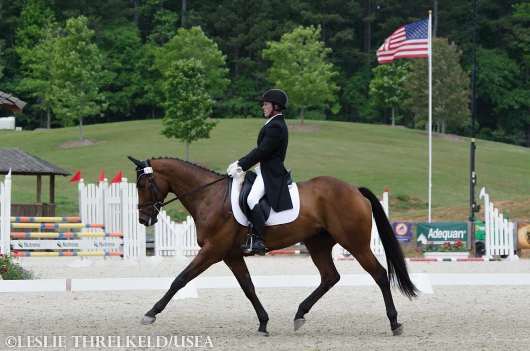 Sir Oberon suffered a strained suspensory in 2010 during an event. Doughty gave him a year-and-a-half off to fully recover and began competing again at Intermediate last fall. Their first Advanced was this March at Texas Rose. “[This course] actually seemed smaller than Texas Rose. When I did Texas Rose, every question was big. Here it seemed like there’s a couple more letup fences,” Doughty said. “The combinations I thought were a little tougher. You had to hold your line, but he’s so adjustable…At the galloping fences, I just sit up and he does his thing.”