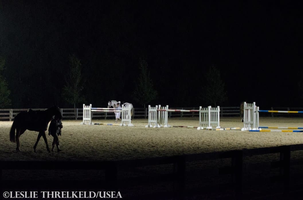 Doughty said she is working to ride Sir Oberon more forward as she has a tendency to over collect him, particularly in stadium. This method likely worked to her advantage in the show jumping. “When we jumped the first fence in warm-up he was kind of backed off at it, and then we got in the arena and he was good. He looked at the cross-country fence coming into one and our first couple fences were a little hairy,” Doughty said. “He’s a good show jumper. It he hits a rail he’s not going to hit any others. He’s just a good horse all around. He tries hard….with the lights he wanted to take an extra peek and see the fences which I think made him even more careful than he normally is.”