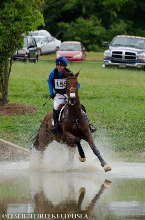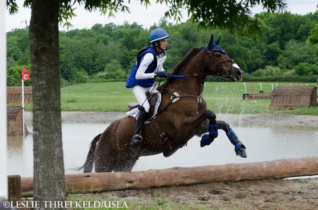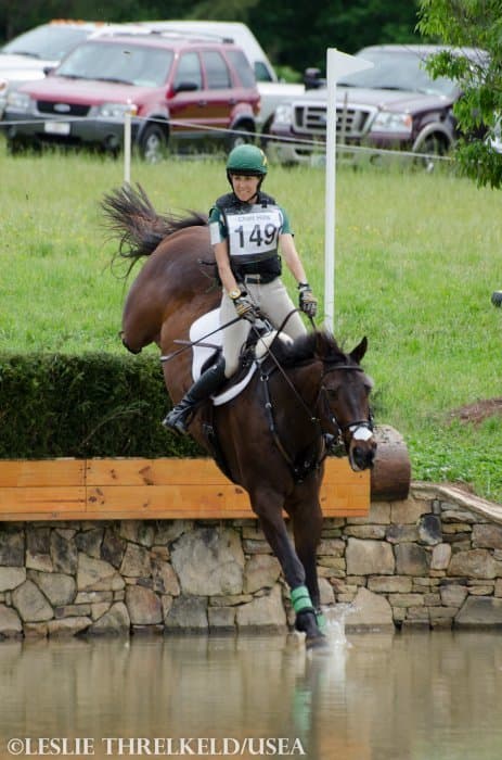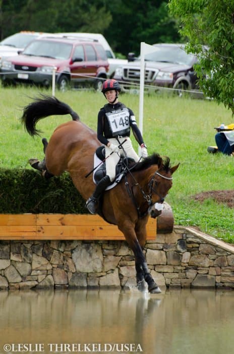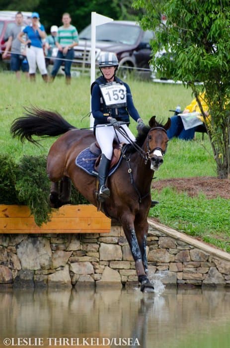 Kieffer and Veronica had an intense moment at the Water Complex when the mare left out an entire stride before the bank and took the long one. She managed to scramble to the top and put in a tidy stride to the D element, an offset narrow brush. “I definitely saw another [stride] coming up that bank!” Kieffer said. “She fought for it to get to that skinny. She’s just a genius like that. She’s amazing like that. She’s very competitive in her own mind.” Veronica was not the only horse to see the long spot out of the water. Lizzie Snow took a tumble off Coal Creek due to the same mistake. Both horse and rider were uninjured.