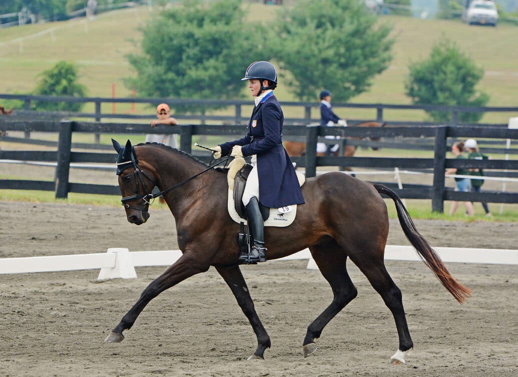 Storms moved into the area during the afternoon sessions and many riders performed in the pouring rain. Although several pairs came close, none could catch Kim and her 15-year-old Irish Sport Horse today, but there are some heavy hitters still to come tomorrow, including Sparky’s talented stablemate Cooley Cross Border.