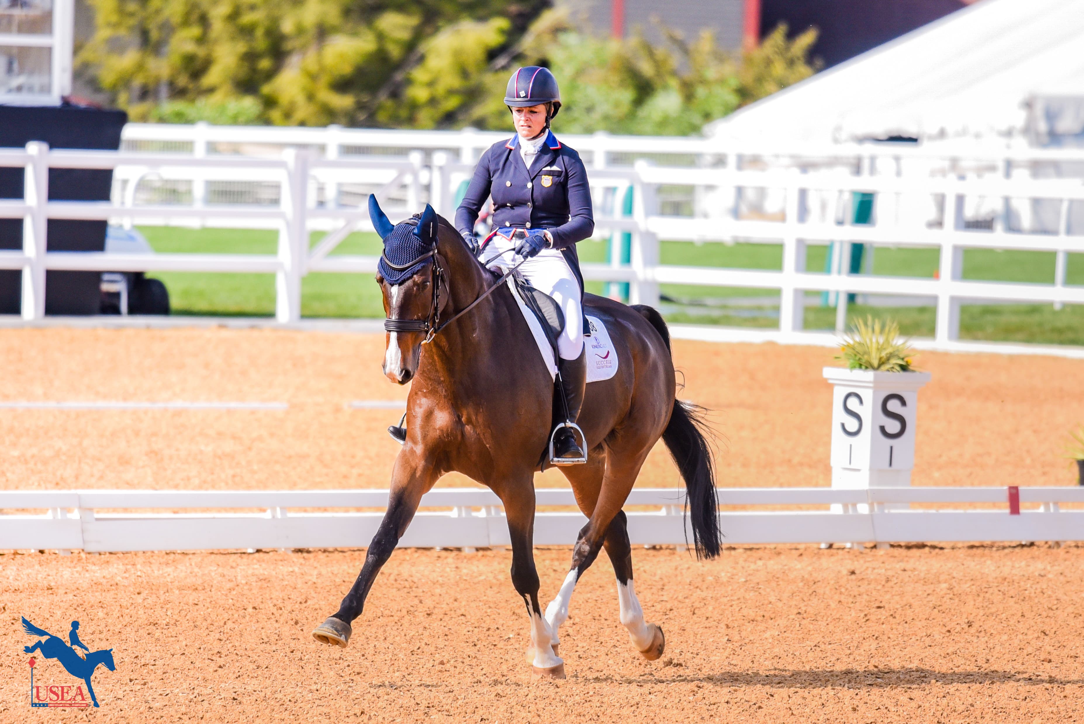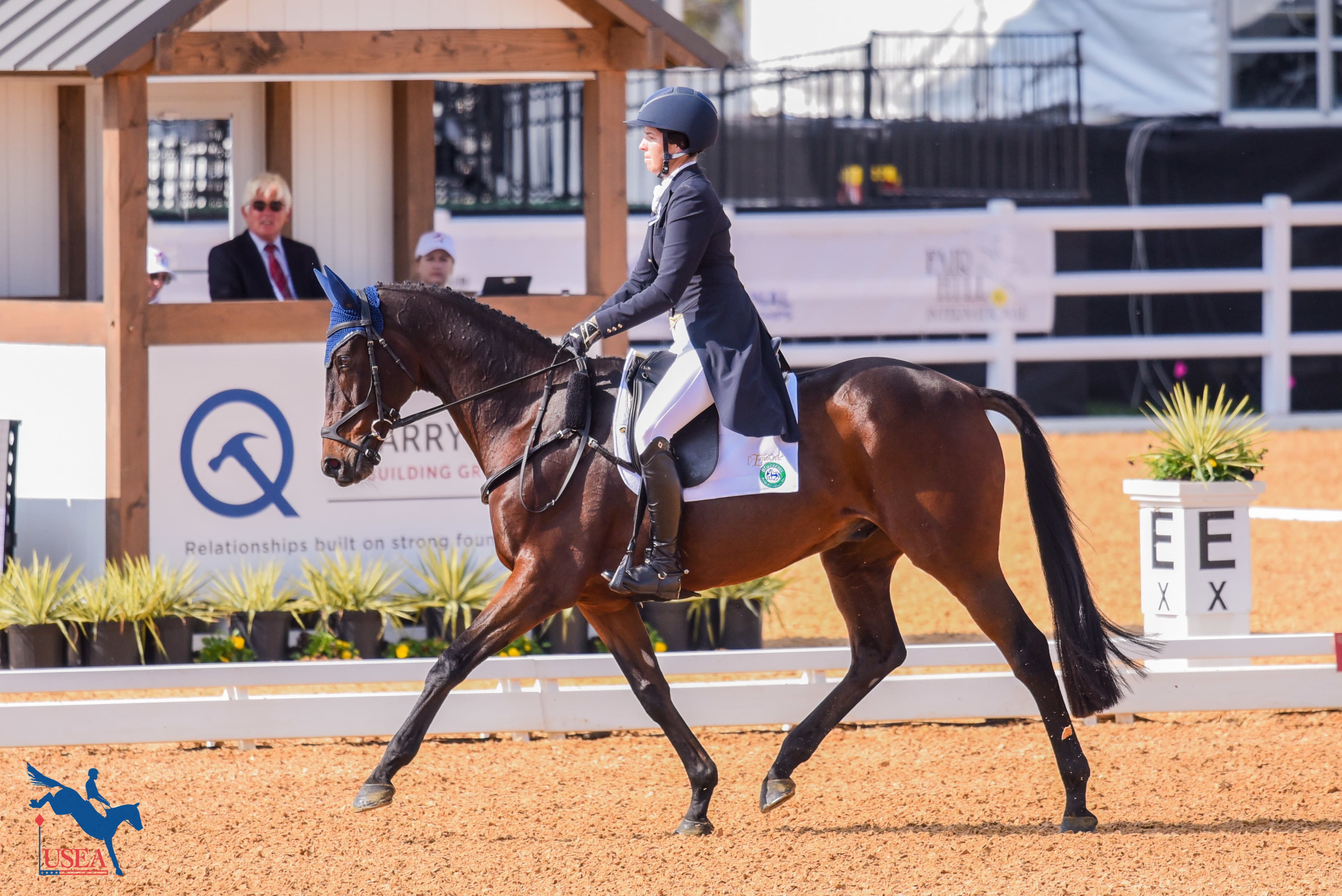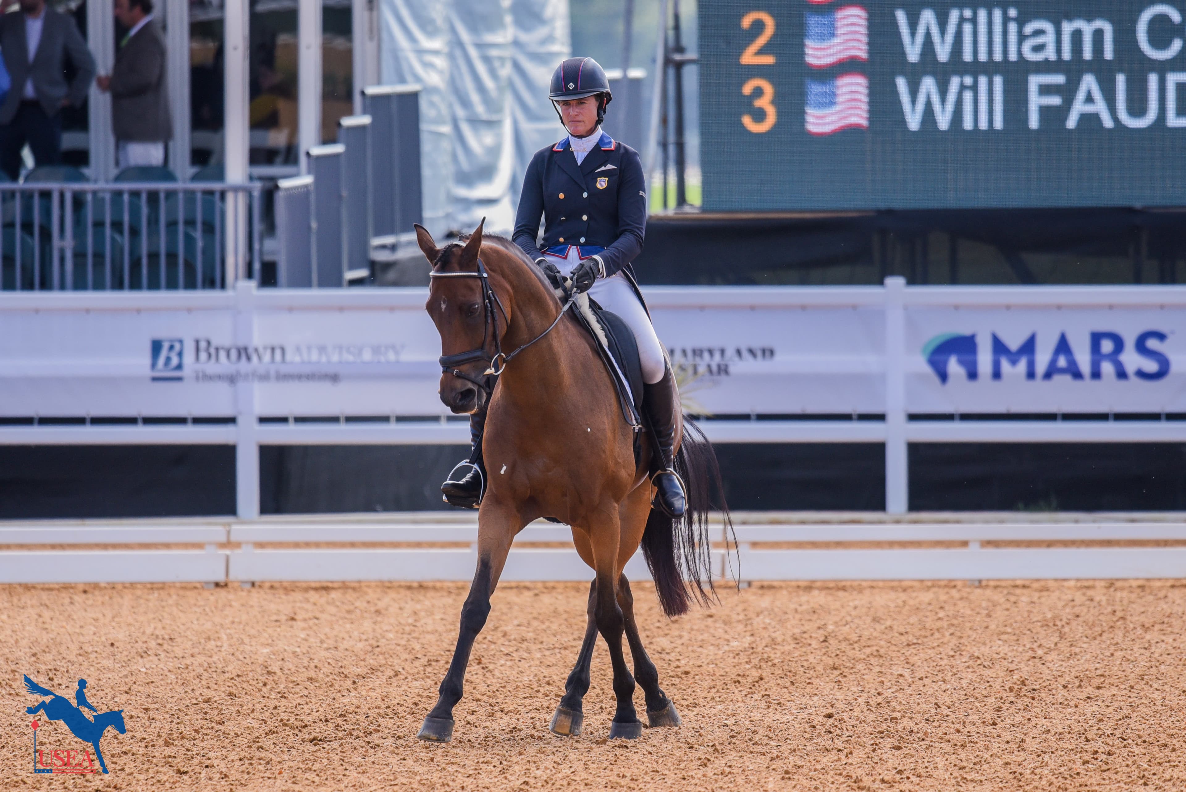 “I was really happy with my horse,” said Burnett. “He was very fluid and rideable. I felt quite a bit of pressure going in because he was so relaxed and ready to put in a very good test. And at one point I did kind of lose track of where the centerline was and went a little bit to the side of it and then veered back. Otherwise, I was really happy with the whole test and how we performed as a partnership.”