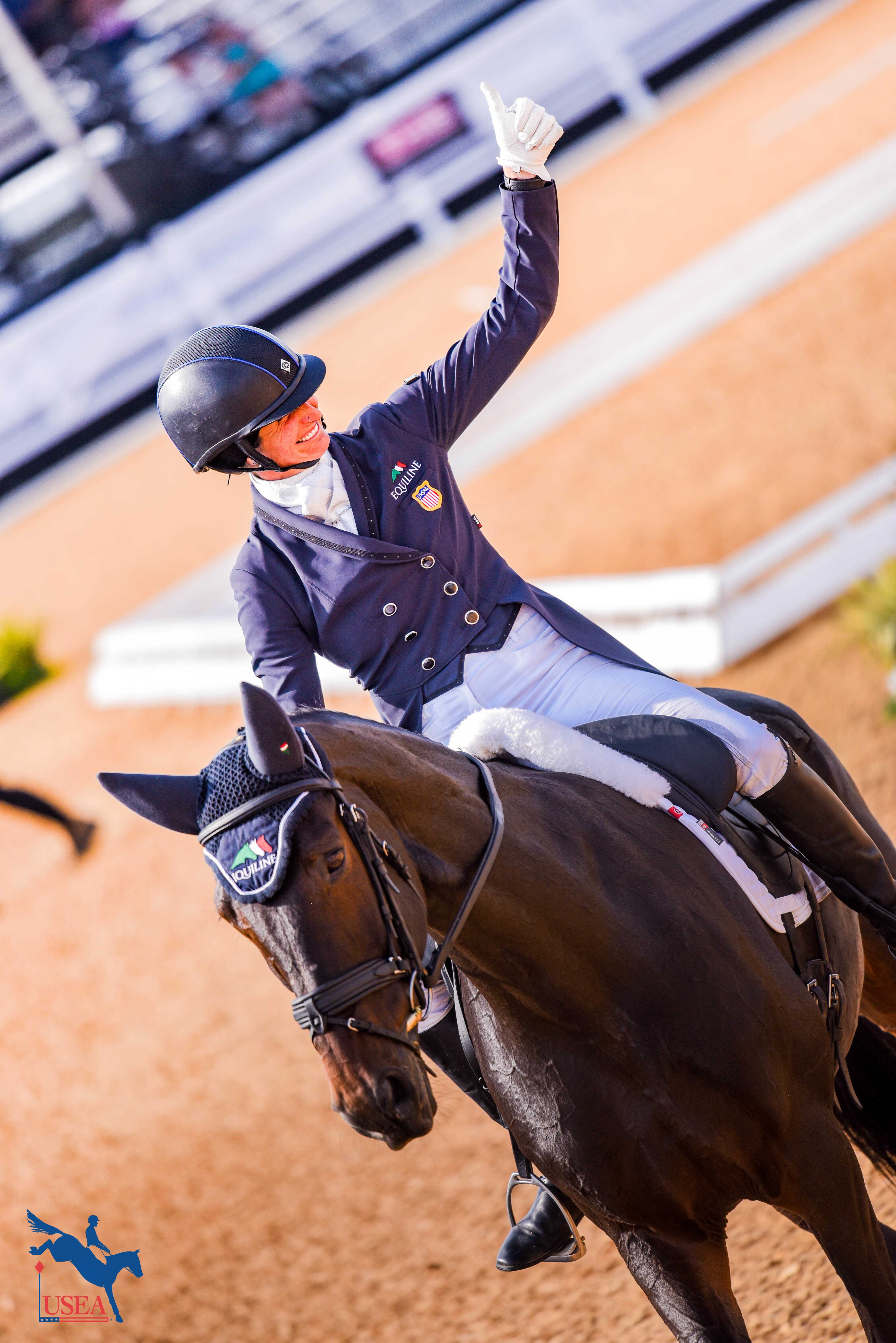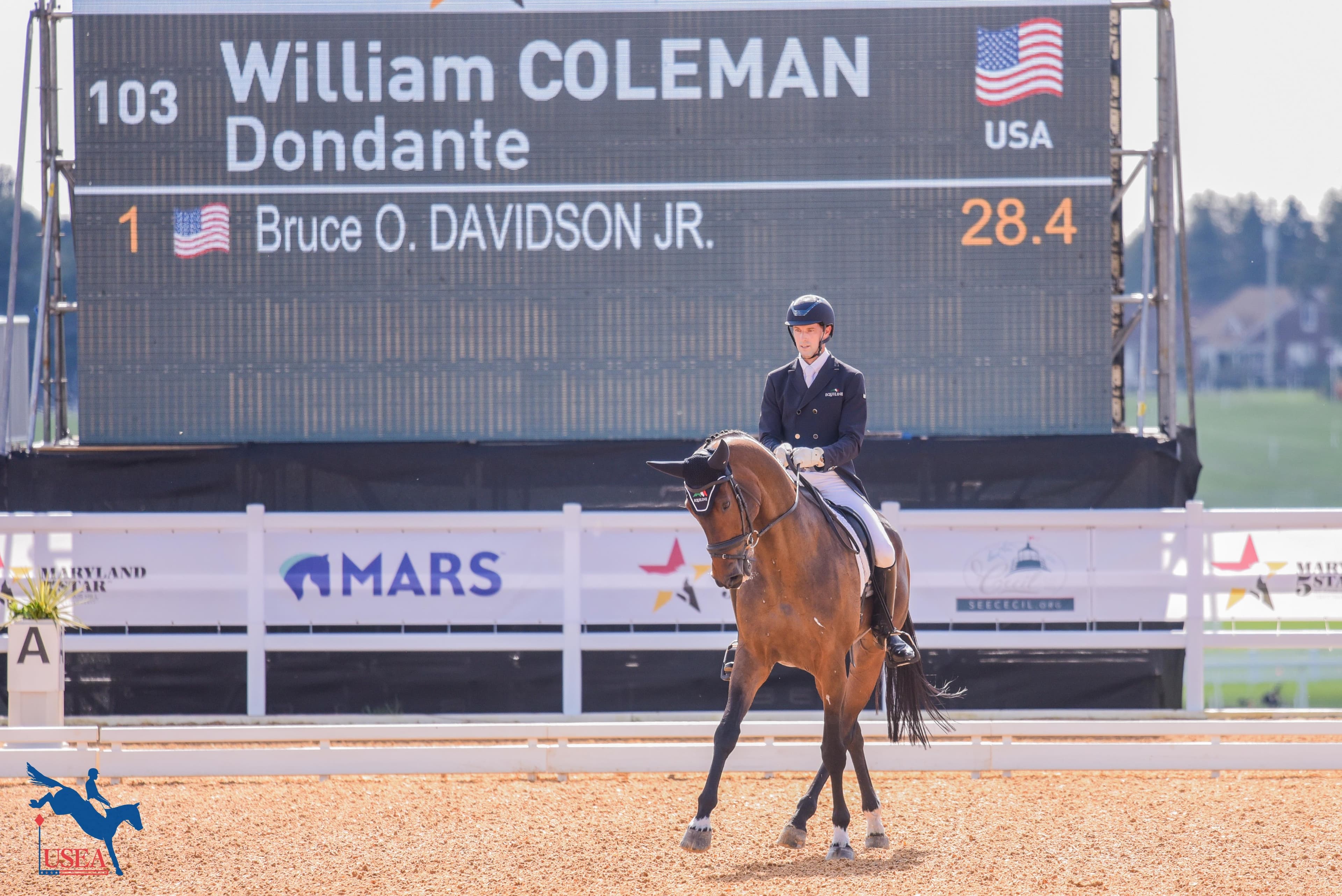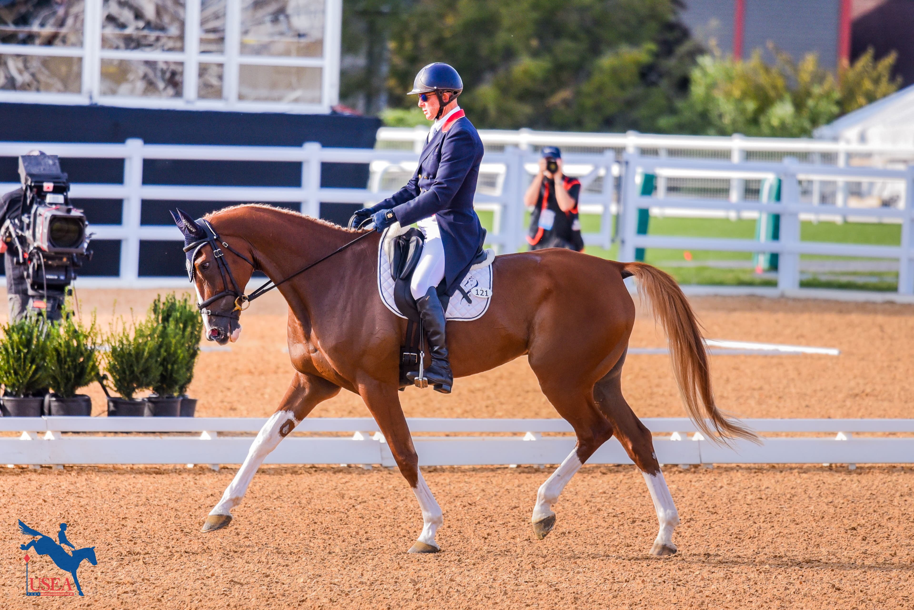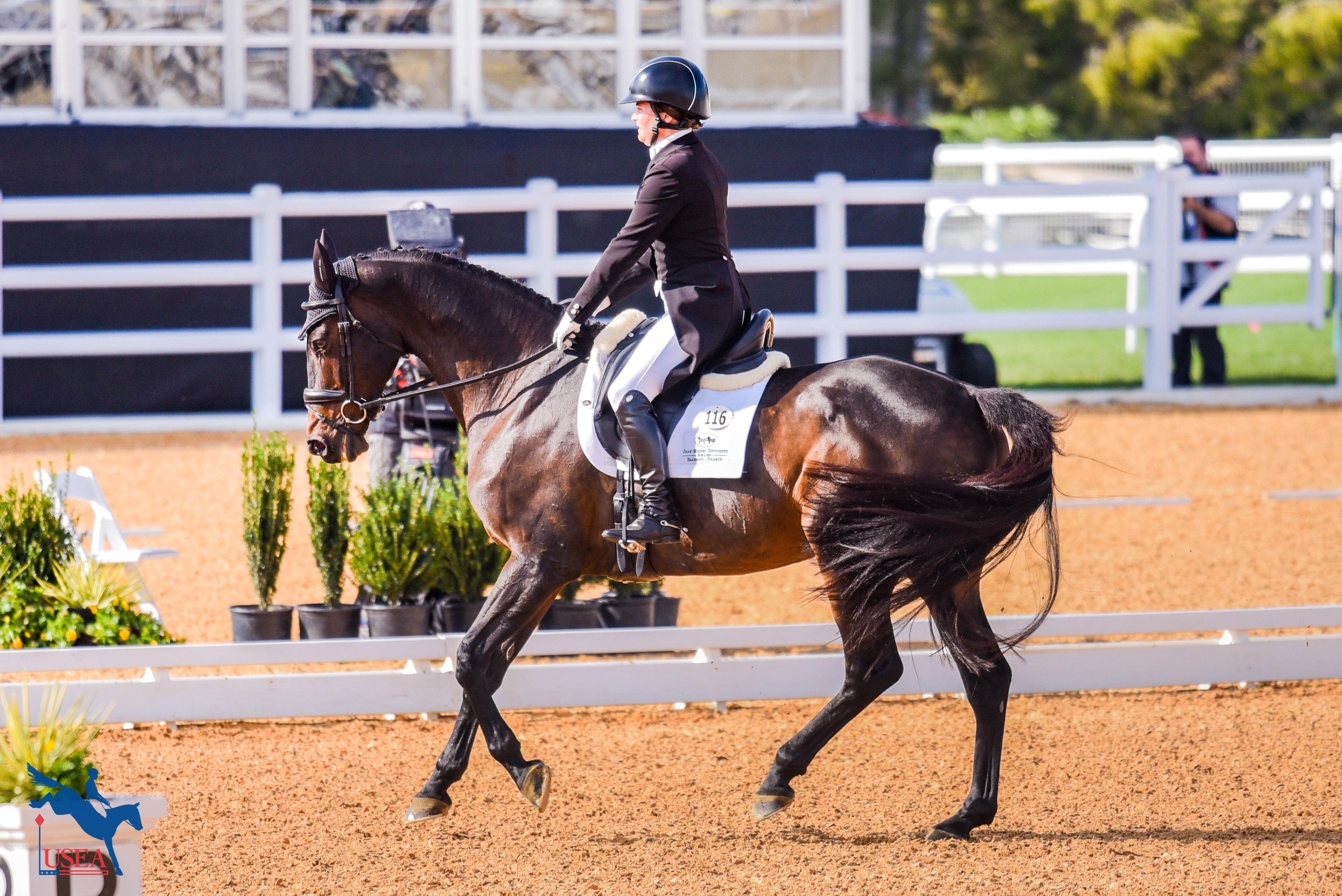 “I was really happy with my horse,” said Burnett. “He was very fluid and rideable. I felt quite a bit of pressure going in because he was so relaxed and ready to put in a very good test. And at one point I did kind of lose track of where the centerline was and went a little bit to the side of it and then veered back. Otherwise, I was really happy with the whole test and how we performed as a partnership.”