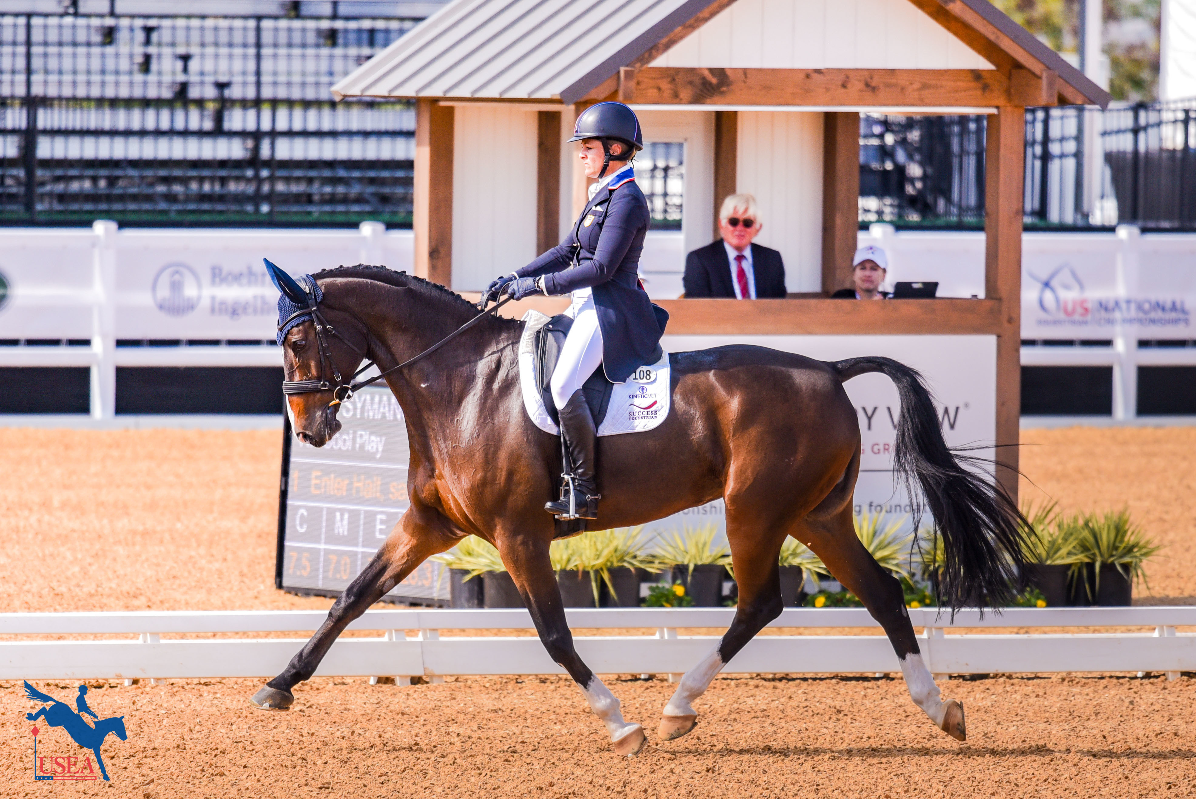 “He was quite hot the last two days, but I thought his trot work was pretty excellent for him,” said Symansky. “I gave away some points in the changes which was a little uncharacteristic, so the score could have been better but that won’t matter on Saturday. For his first time at the level I was quite happy with him.”
