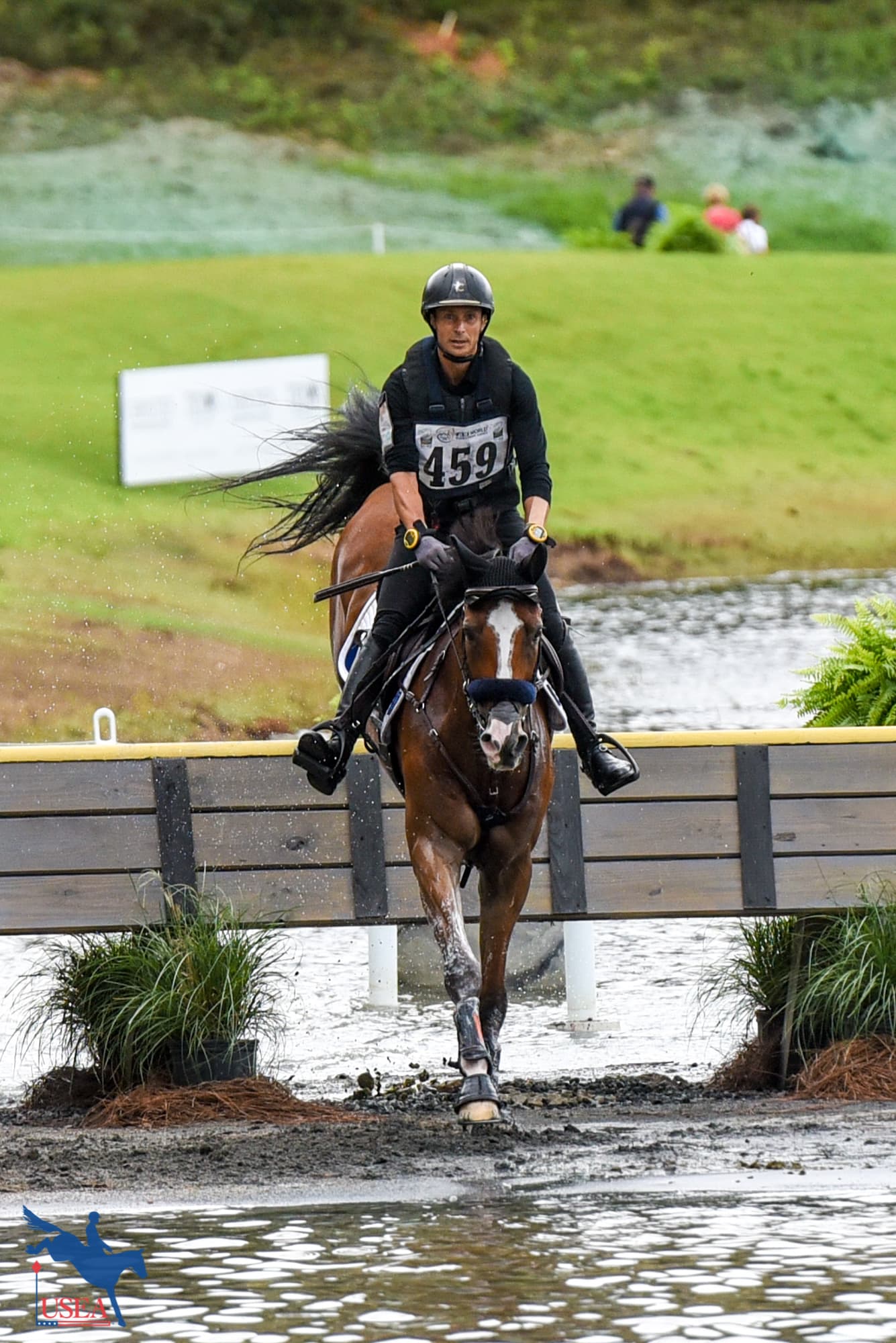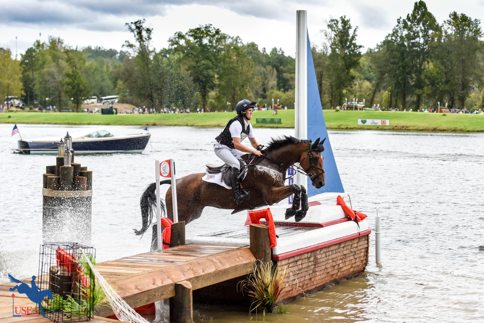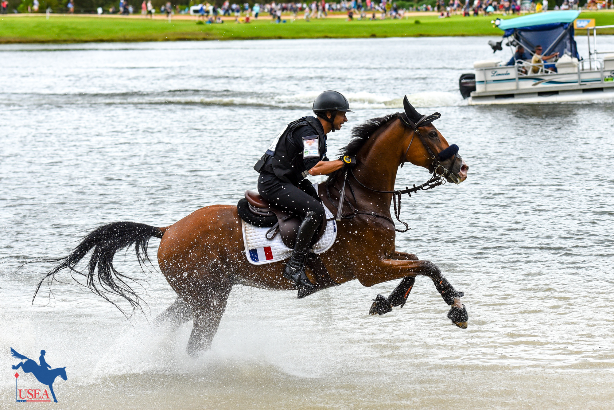 Marcio Carvalho Jorge and Coronel MCJ successfully tackling the boat in the water at the Mars Sustainability Water. USEA/Leslie Mintz Photo.
