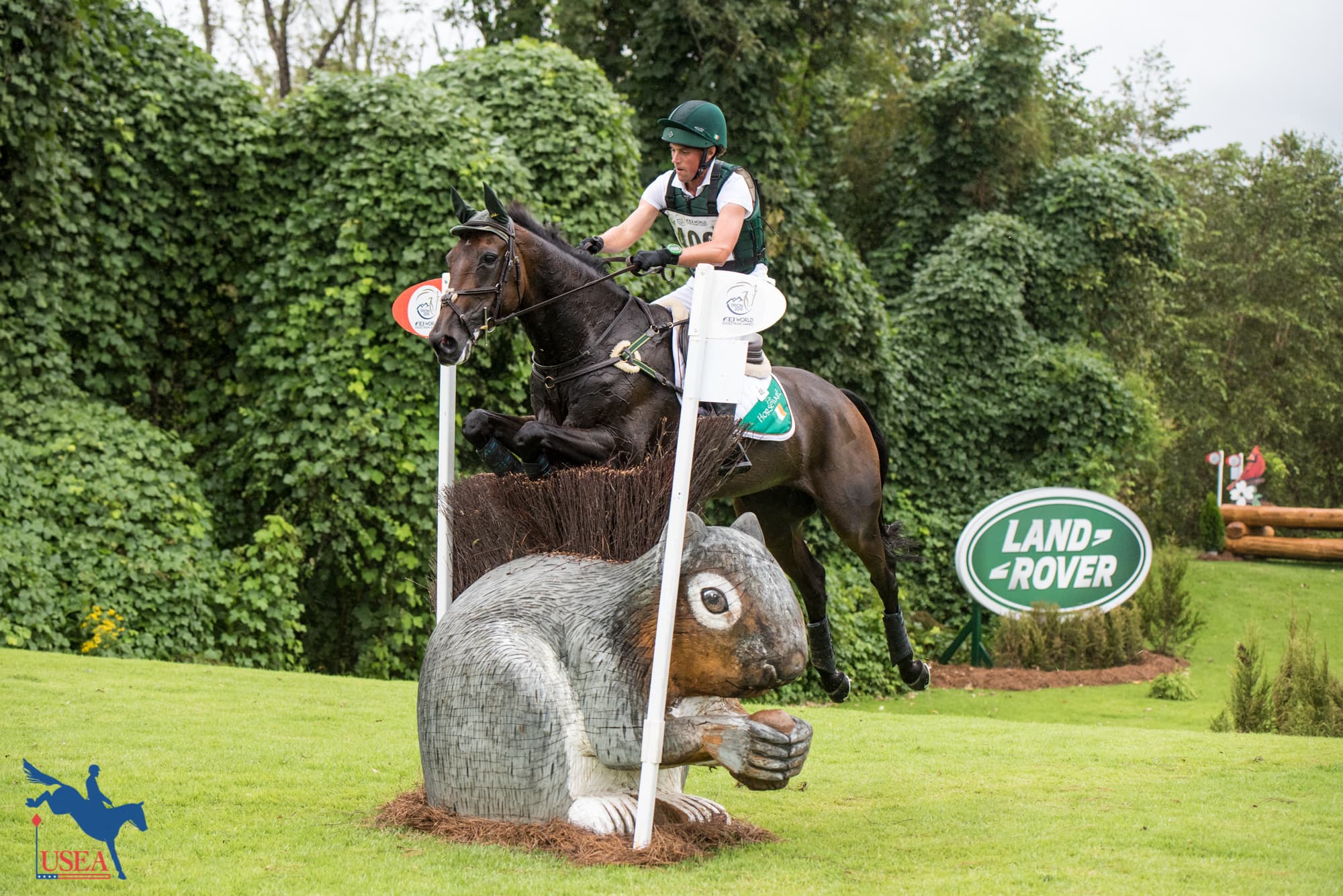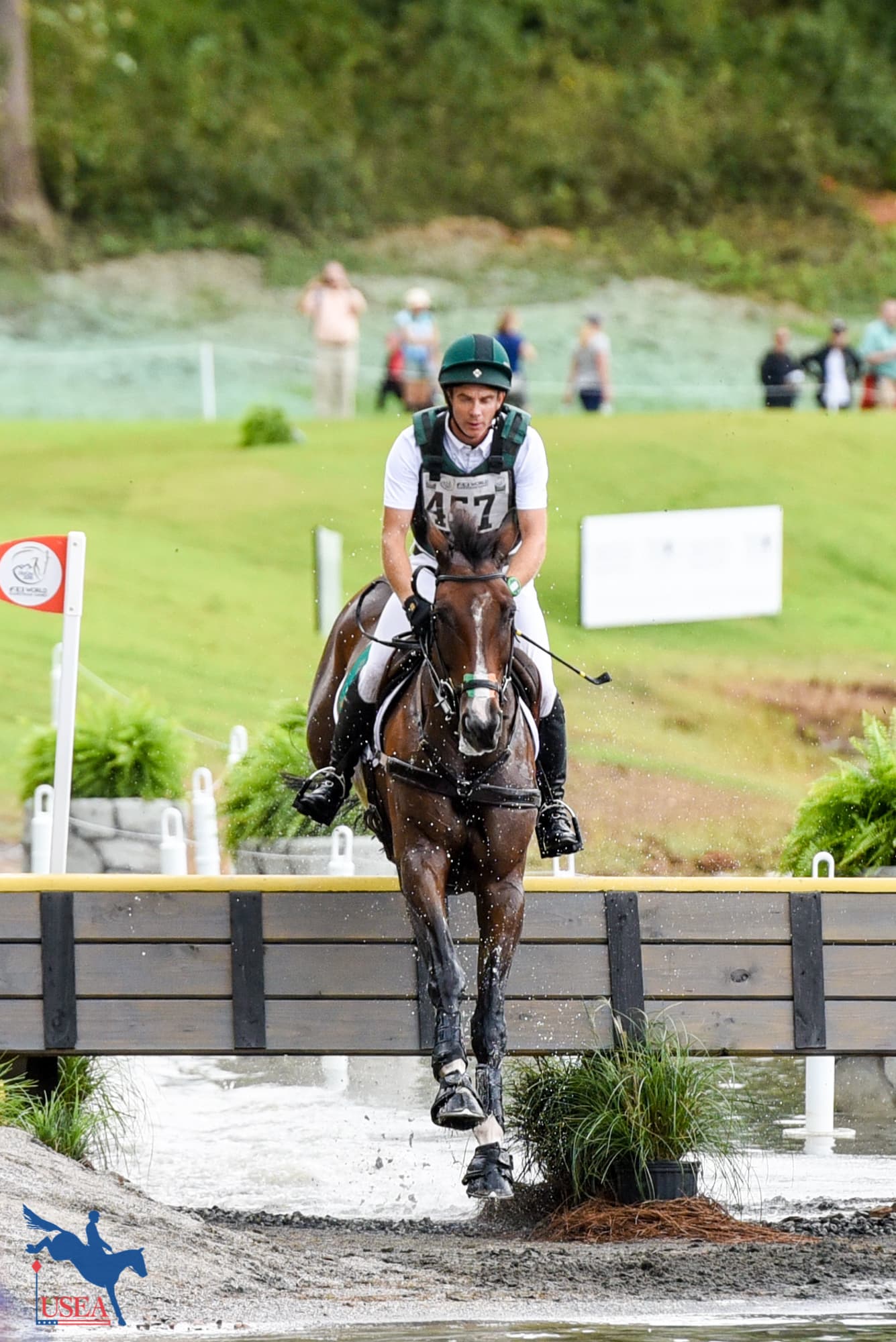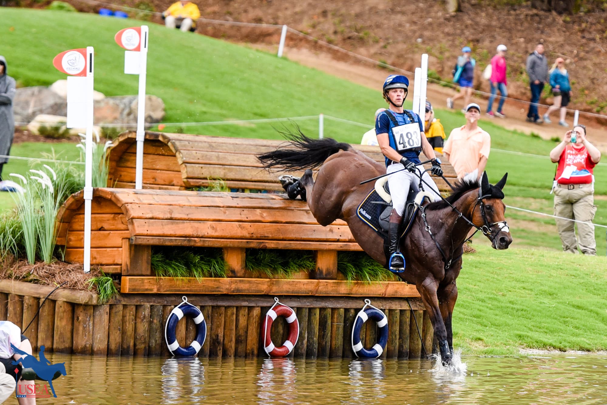 Boyd Martin and Tsetserleg (Windfall *PG* x Thabana), Christine Turner’s 11-year-old Trakehner gelding, William Coleman and Tight Lines (Turgeon x Merindole), The Conair Syndicate’s 11-year-old Pur Sang gelding, and Lauren Kieffer and Vemiculus (Sazeram x Wake Me Gently), Jacqueline Mars’ 11-year-old Anglo Arabian gelding, all ran into trouble on course today. Martin and “Thomas” picked up 20 jumping faults at fence 10B, the Mars Sustainability Water, and additional 11.6 time faults to sit in 54th place on 58.7. Coleman and “Phish” picked up two refusals, one at fence 10D and one at fence 14B, plus an additional 11.6 time faults for a two-day score of 87.2 and 68th place overnight. Kieffer, who was competing as an individual for the U.S., fell from “Bug” on the landing from fence 18A and the pair were eliminated.