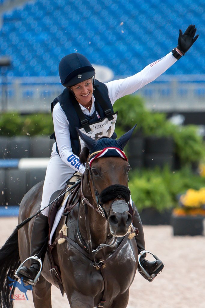 Lynn Symansky praising Donner as they cross the finish line. USEA/Jessica Duffy Photo.