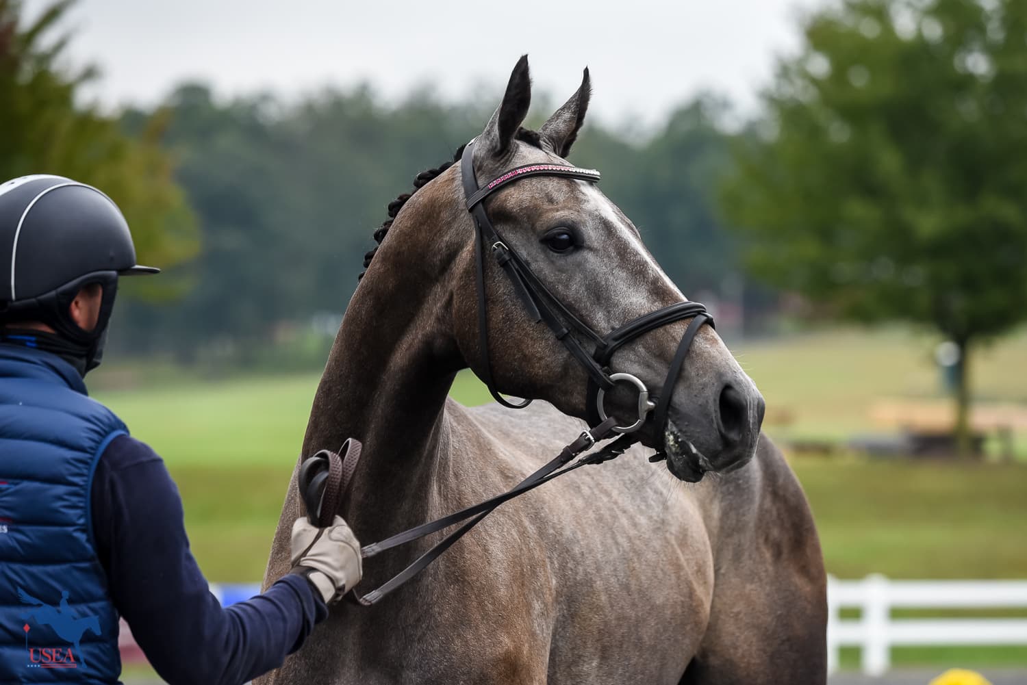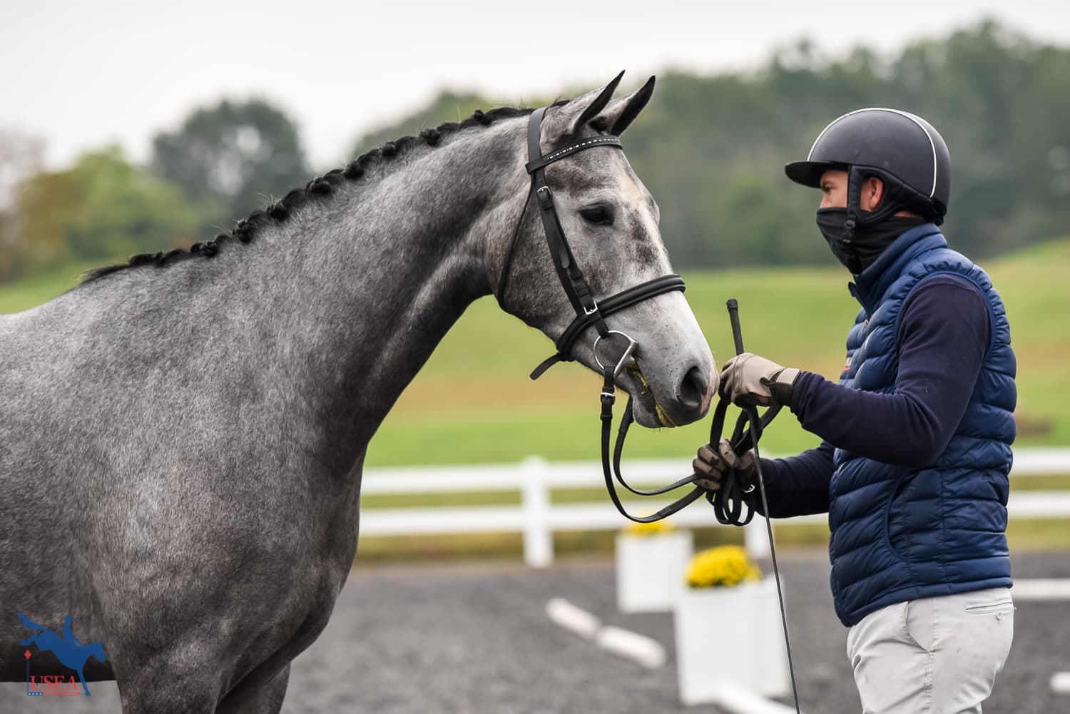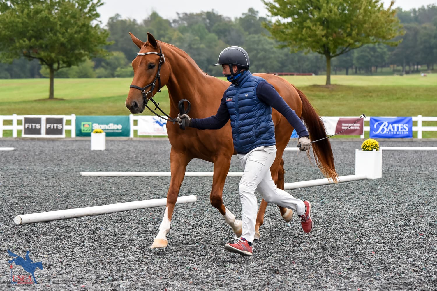 Emeraude Sharer made the trek from her home in North Carolina with her two horses, Ciel d’Emeraude and Knuit d’Emeraude, to compete in their third FEH East Coast Championships. Knuit d’Emeraude (Contendro I x Etoile d’Emeraude), a Holsteiner filly, was the FEH East Coast Yearling Filly Reserve Champion in 2018 and this year took home the FEH East Coast 3-year-old Filly and Overall Champion titles on a score of 81.445 to be named the 2020 USEA FEH East Coast Grand Champion. Knuit d’Emeraude was handled in today’s competition by Martin Douzant.