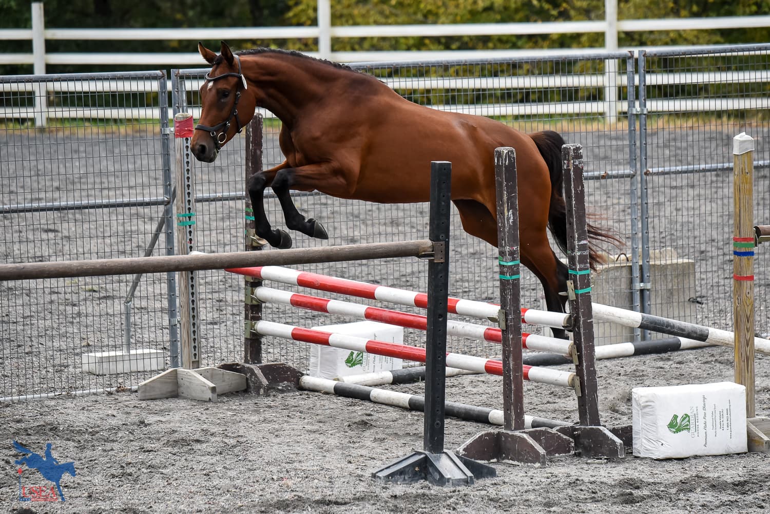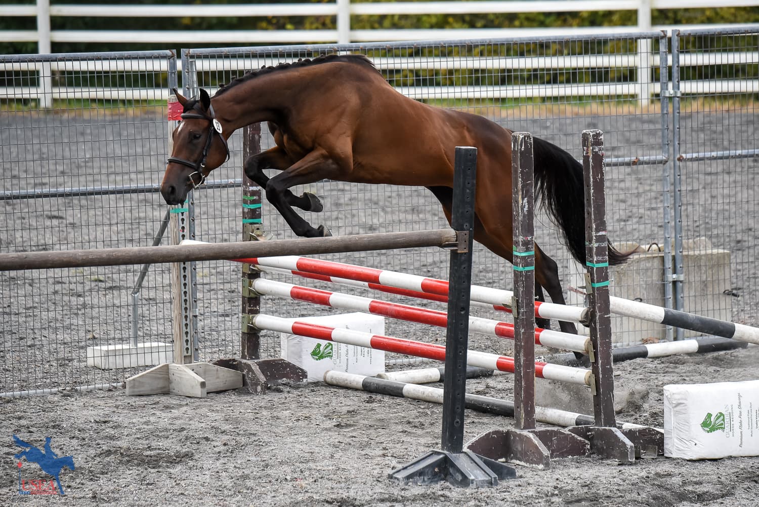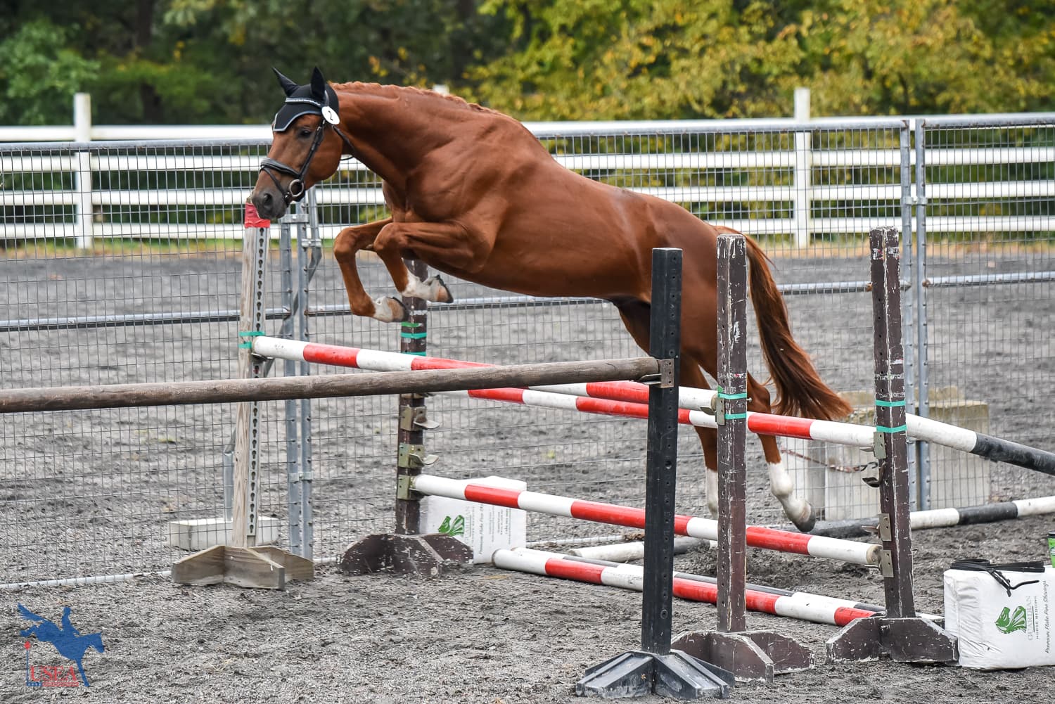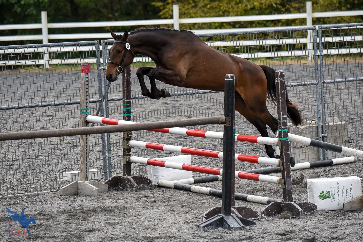 Emeraude Sharer made the trek from her home in North Carolina with her two horses, Ciel d’Emeraude and Knuit d’Emeraude, to compete in their third FEH East Coast Championships. Knuit d’Emeraude (Contendro I x Etoile d’Emeraude), a Holsteiner filly, was the FEH East Coast Yearling Filly Reserve Champion in 2018 and this year took home the FEH East Coast 3-year-old Filly and Overall Champion titles on a score of 81.445 to be named the 2020 USEA FEH East Coast Grand Champion. Knuit d’Emeraude was handled in today’s competition by Martin Douzant.