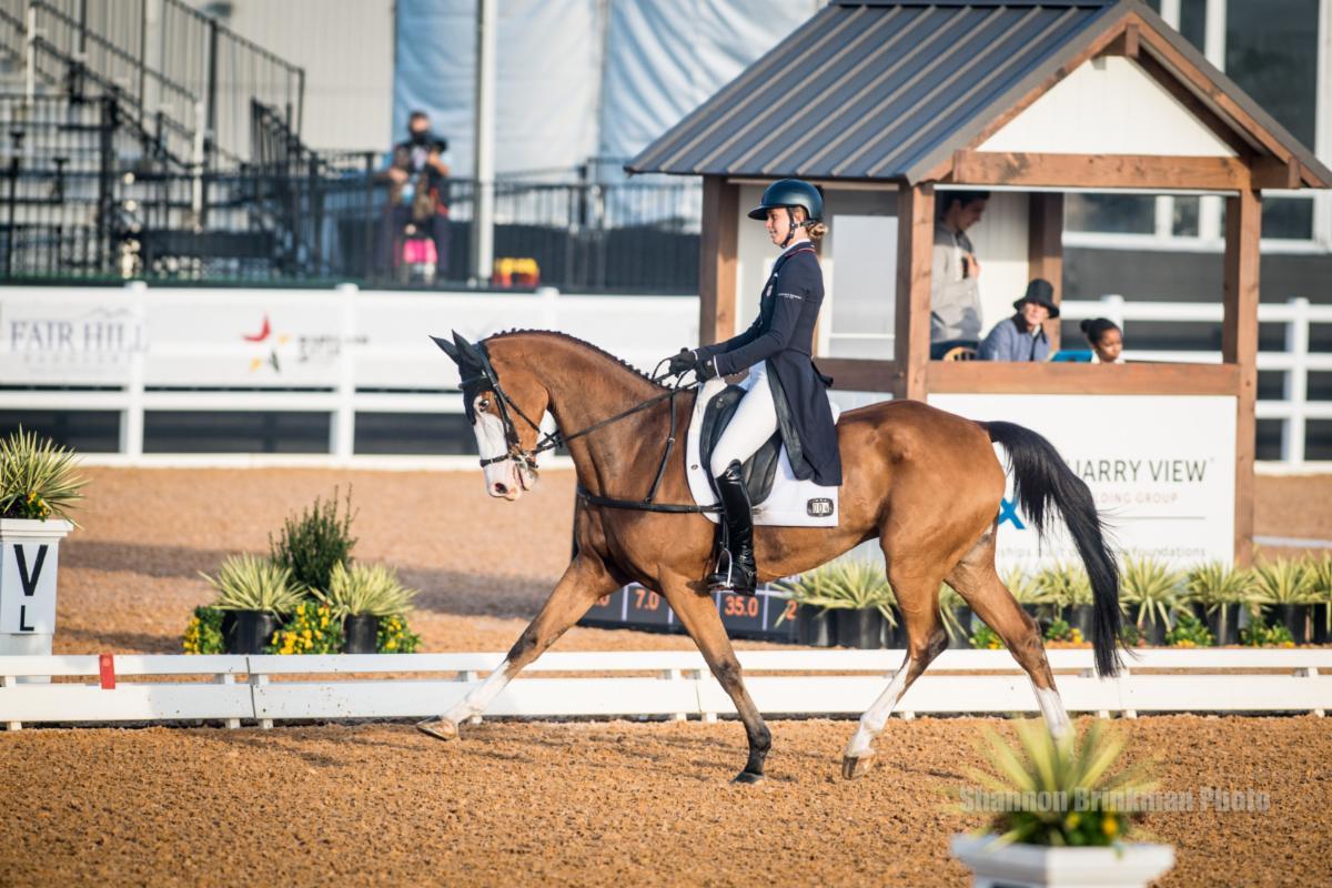 “Cabbie is usually quite obedient, and he felt quite responsive in the warm-up ring,” Brown said. “His eyes got a little bit big when I came up into the arena itself. He took a few peeks around throughout the test, but he kept responding to me and kept showing up to do what I was asking. I’m very pleased with him.