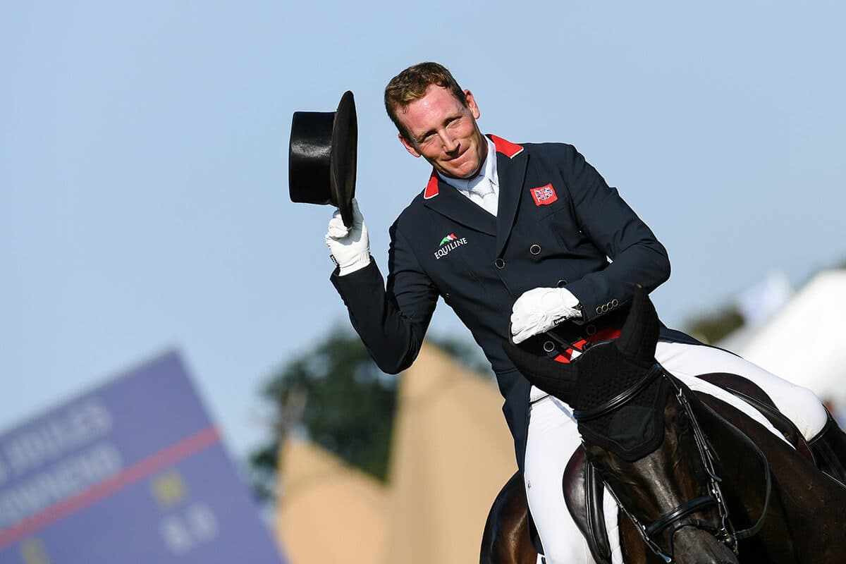 Despite some equine acrobatics at the first horse inspection, Harry Meade’s Away Cruising posted probably his smartest dressage tests to date to move into third place on 29.5: “I’m delighted with him,” said Meade immediately after his test. “I’ve felt all season that he was on the path to putting in a good test and today was a good day to execute our plan.”