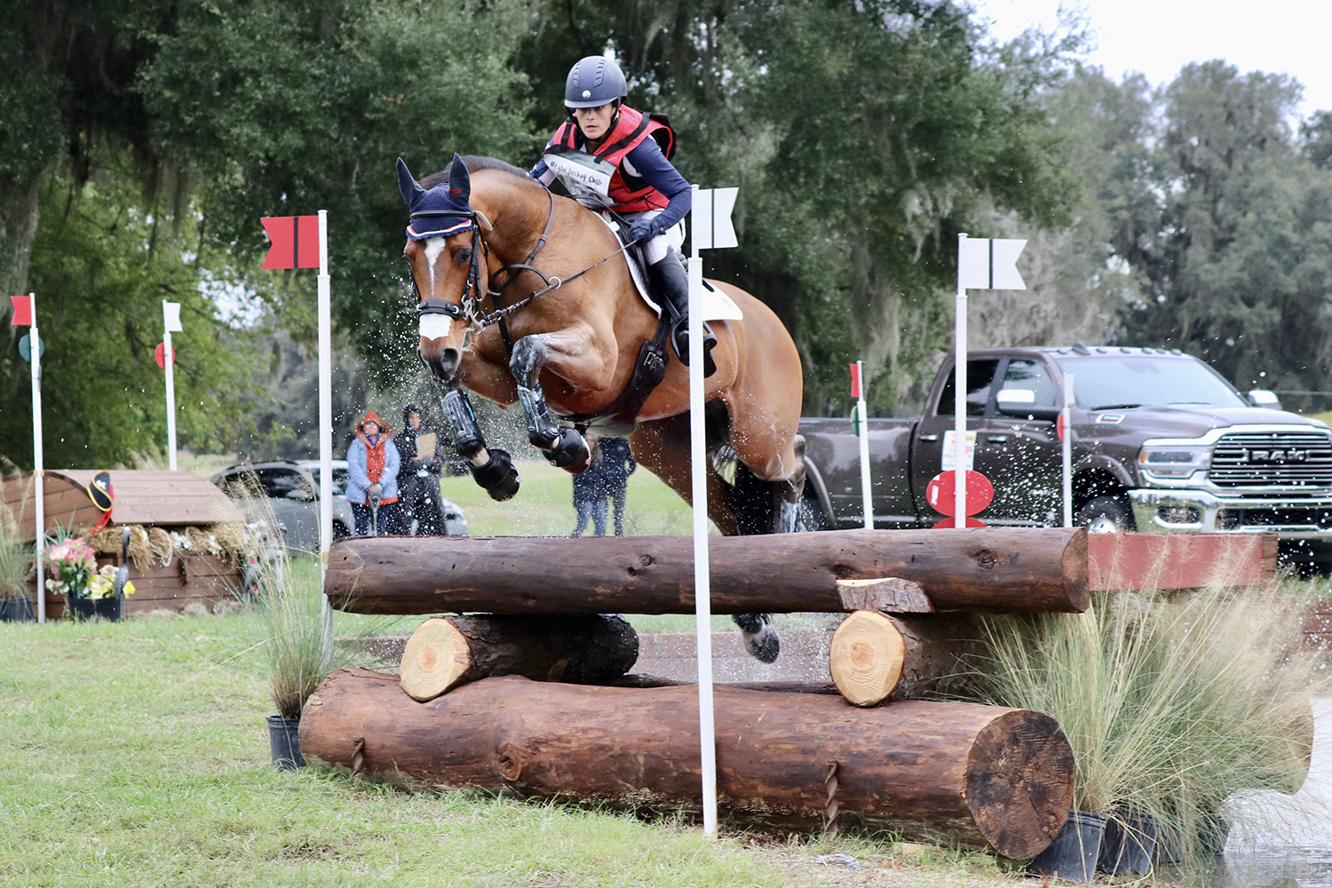It was a game of seconds out on the cross-country today at the Ocala Jockey Club International Three-Day Event. Twenty of the 31 starters jumped around Clayton Fredericks CCI4*-L course without jump penalties, but only two managed to cross the finish line without any time penalties. And both of those crossed it bang on the optimum time of 10 minutes and 26 seconds.