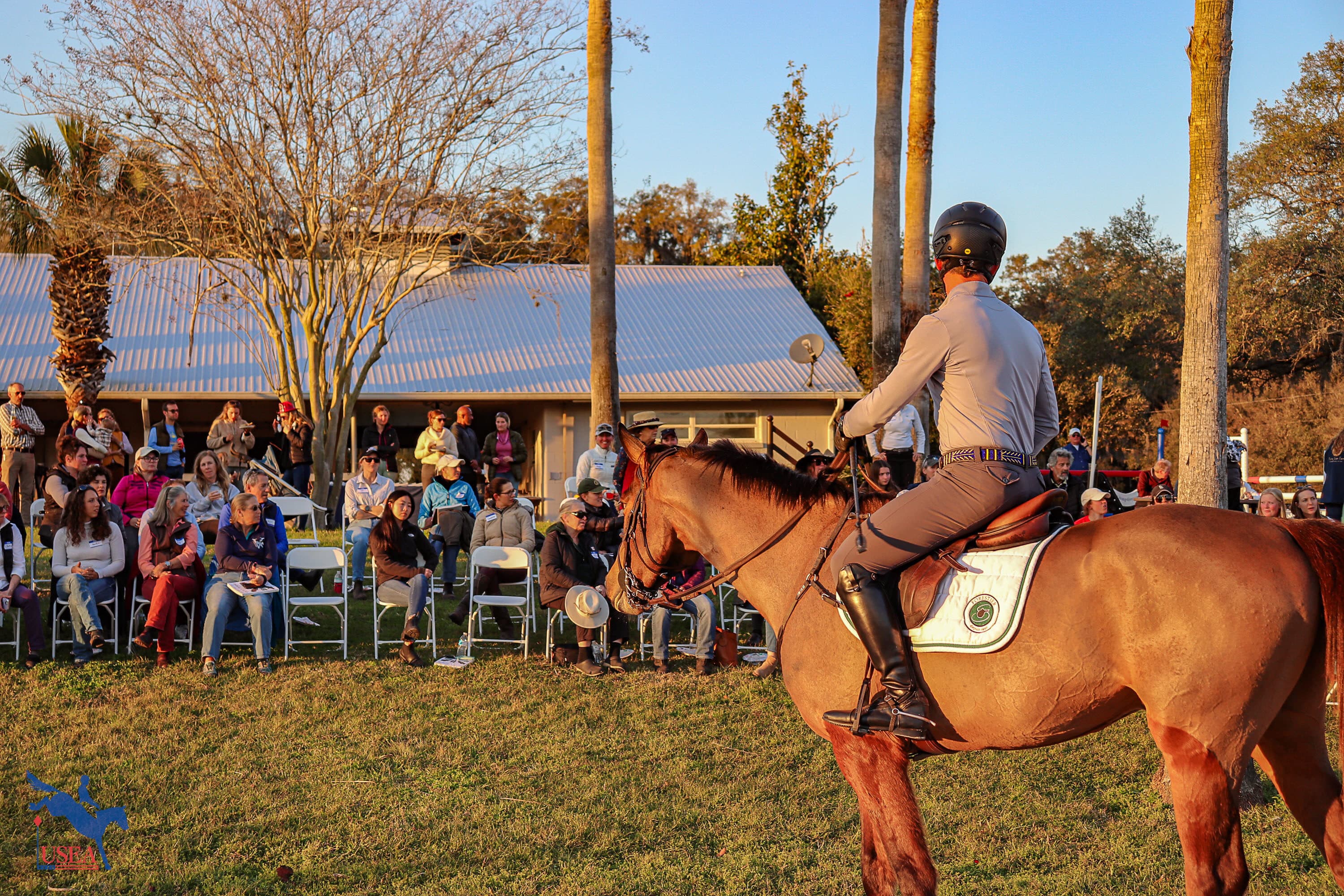 As the cheers from the crowd subsided, Jonathan Holling kicked on to his gymnastics exercise with his, Jen Holling, and Kathryn Krische’s Capstone (Tatendrang *Ps* x Catch the Bouquet), a 5-year-old Trakehner gelding bred by Krische. “Pretzel,” as he is known around the barn, impressed the audience with his incredible composure under the setting sun and lights of the O’Neal’s main arena. Krische, who was also in attendance, added valuable insight into Pretzel’s breeding and early training that allowed his to progress to the point he is at today.