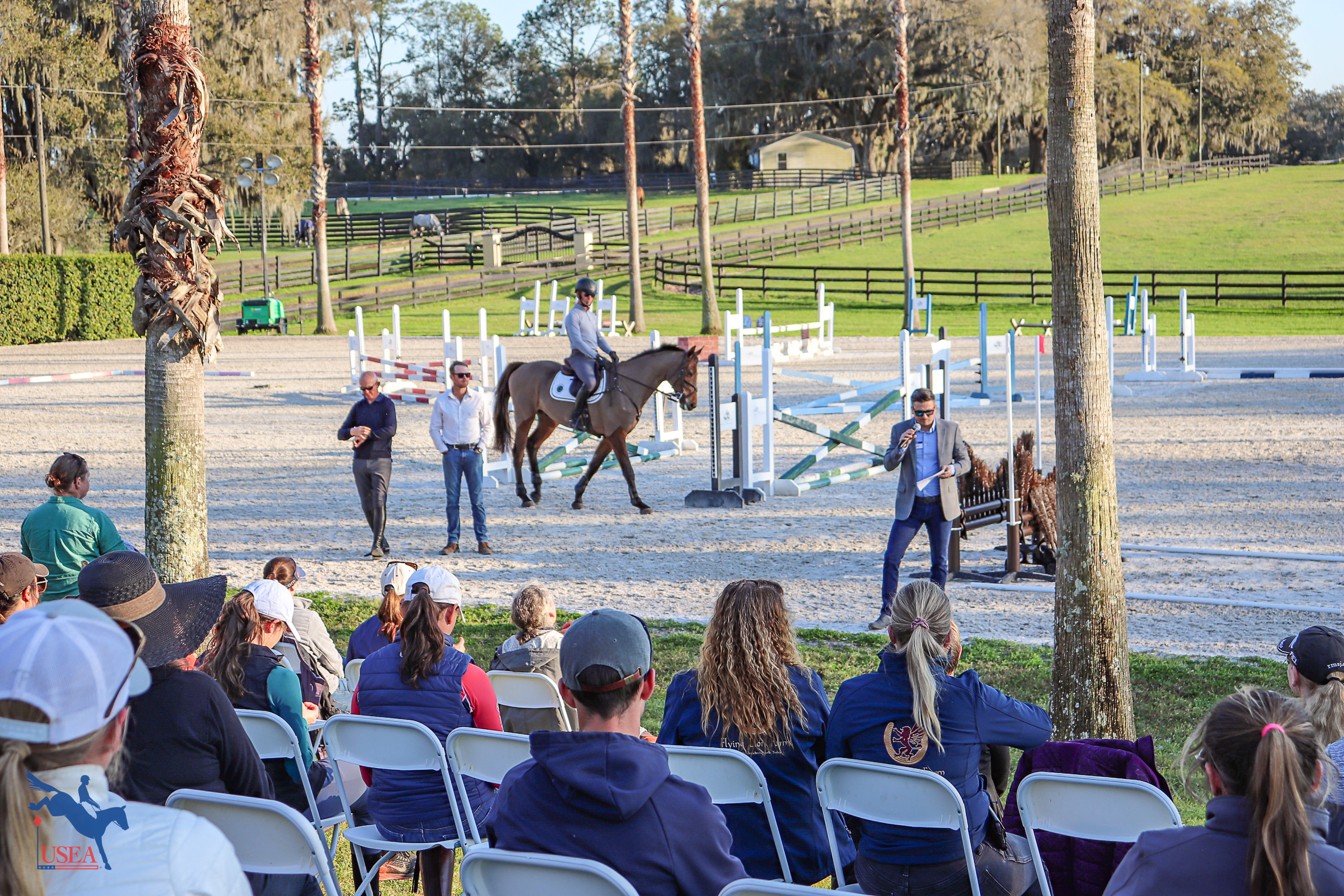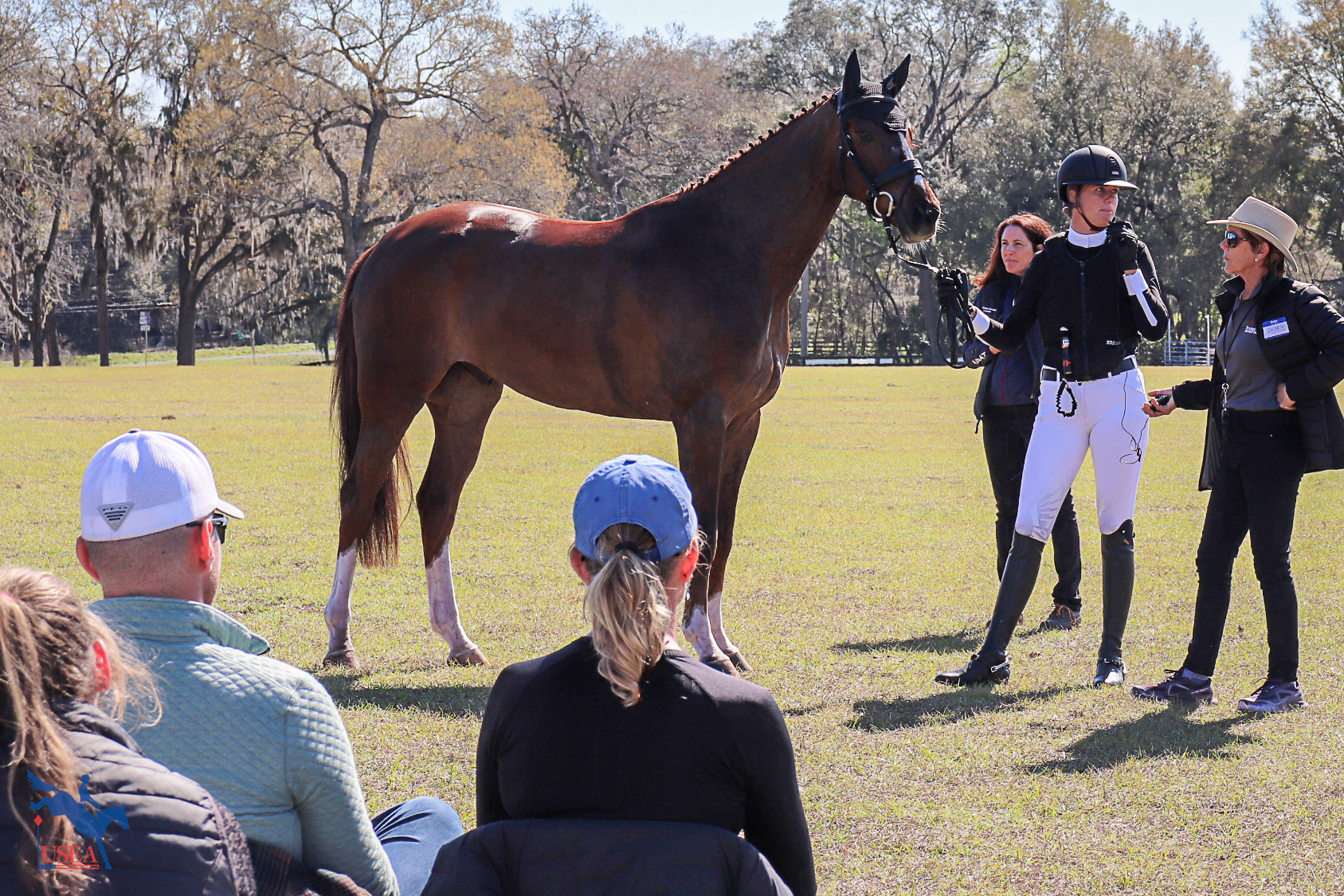Majestic Oaks Ocala, the expansive venue generously donated for use by owners Marisa and Rob DiMauro, served as the backdrop for the first session of the day, which was led by Marilyn Payne, co-chair of the YEH Committee. Lauren Nicholson, Liz Halliday, Debbie Adams, and Dr. Lisa Casinella served as the panel of experts that watched four up-and-coming eventing prospects and dissected each on their suitability for the sport.