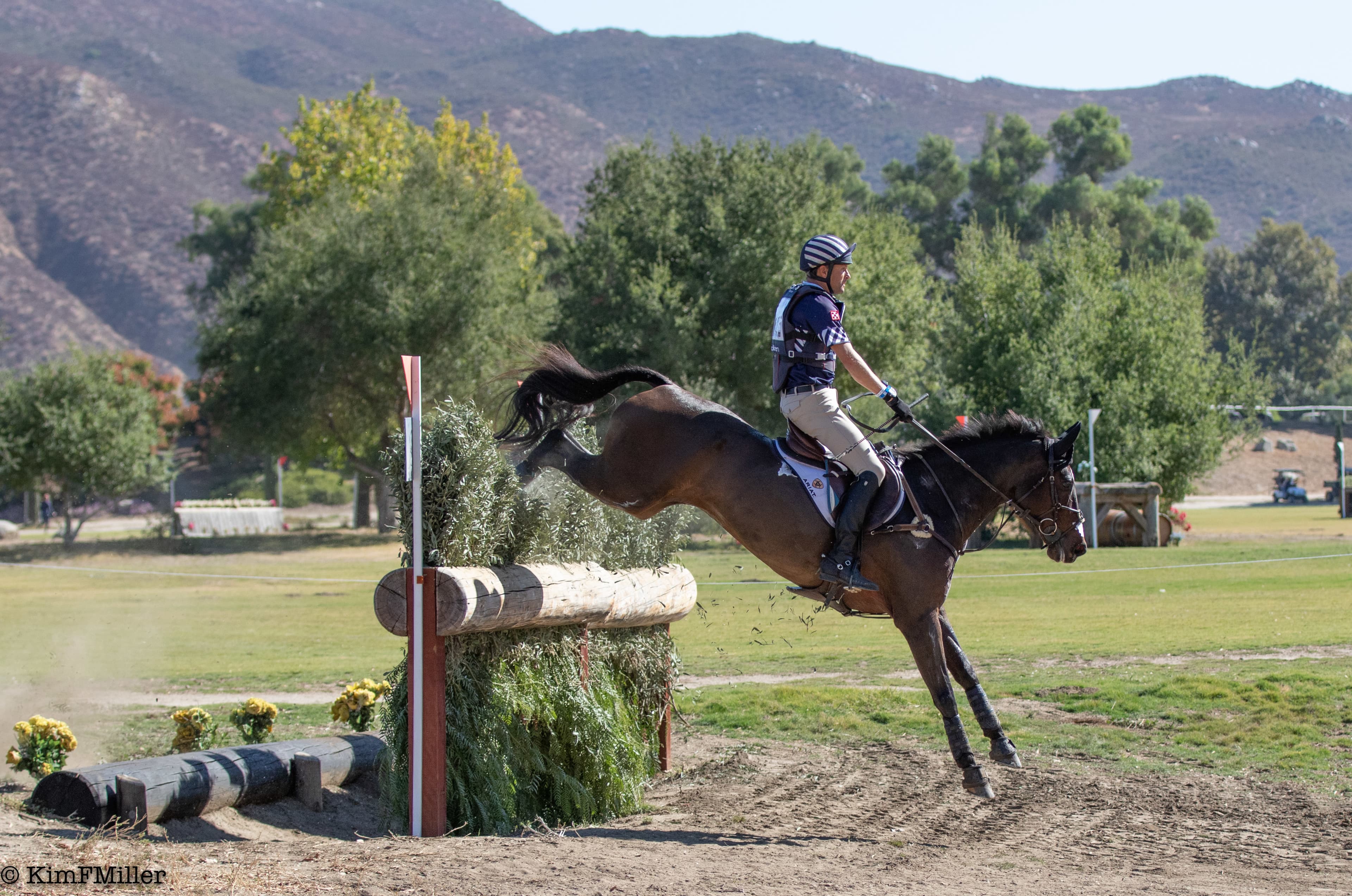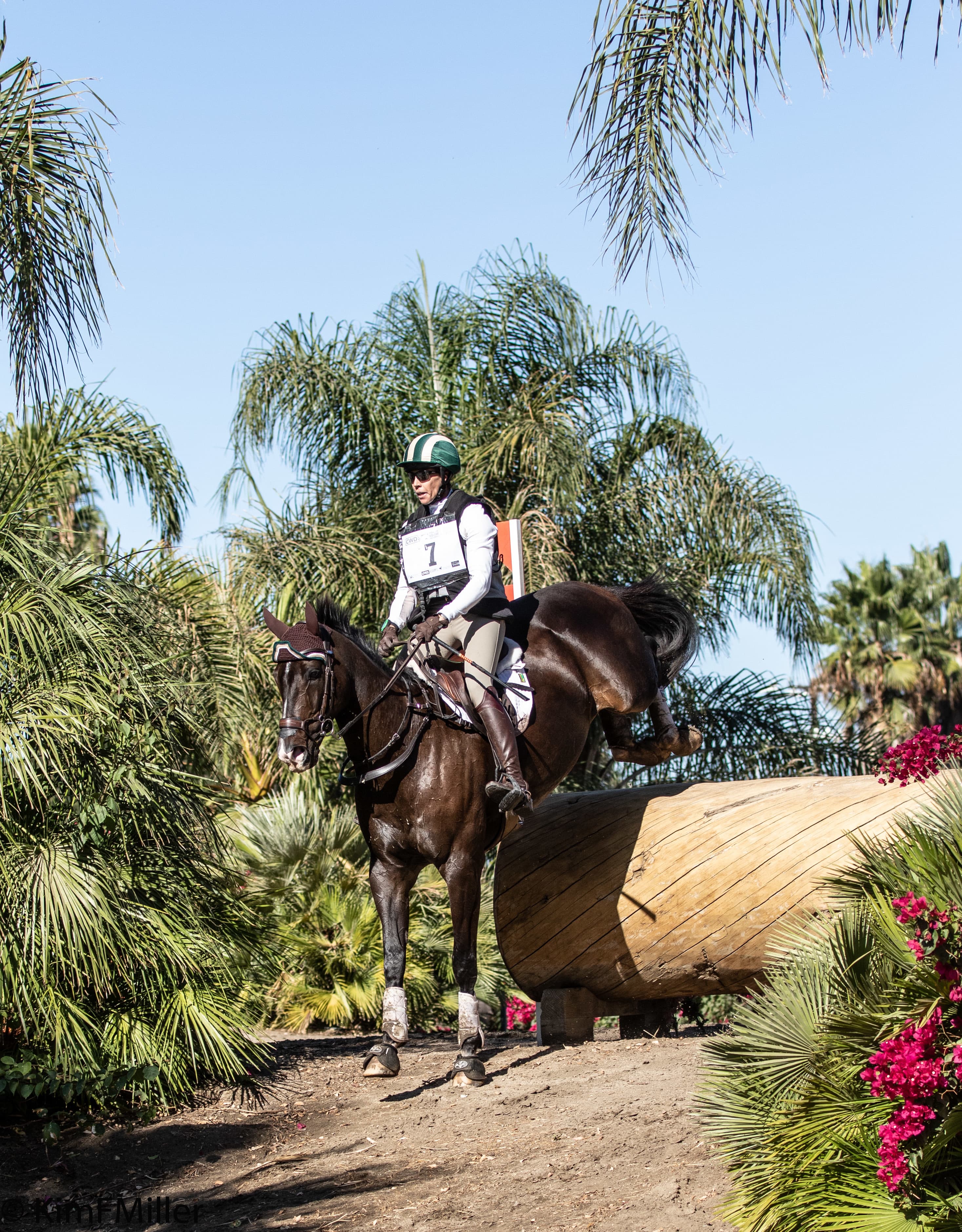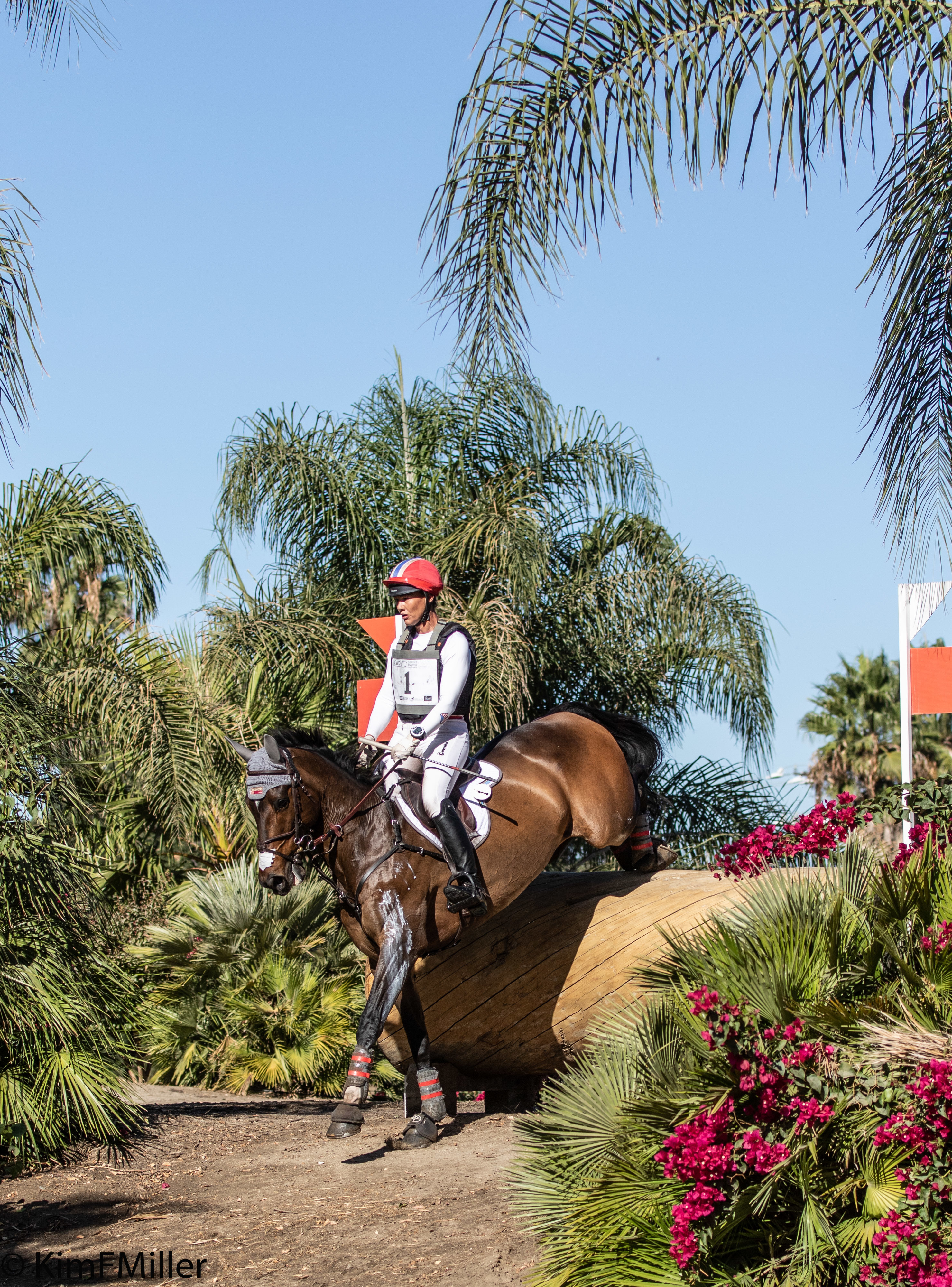 Elisabeth Halliday-Sharp was another to get a flag penalty at 16B. An initial extra 20 penalty points were later removed after review by the ground jury determined she had not re-addressed the fence. Nonetheless, it was a disappointing day for the East Coaster in her native Southern California for the current #1 ranked U.S. eventer. The flag penalty plus 8.40 time penalties dropped them from fifht to eighth.