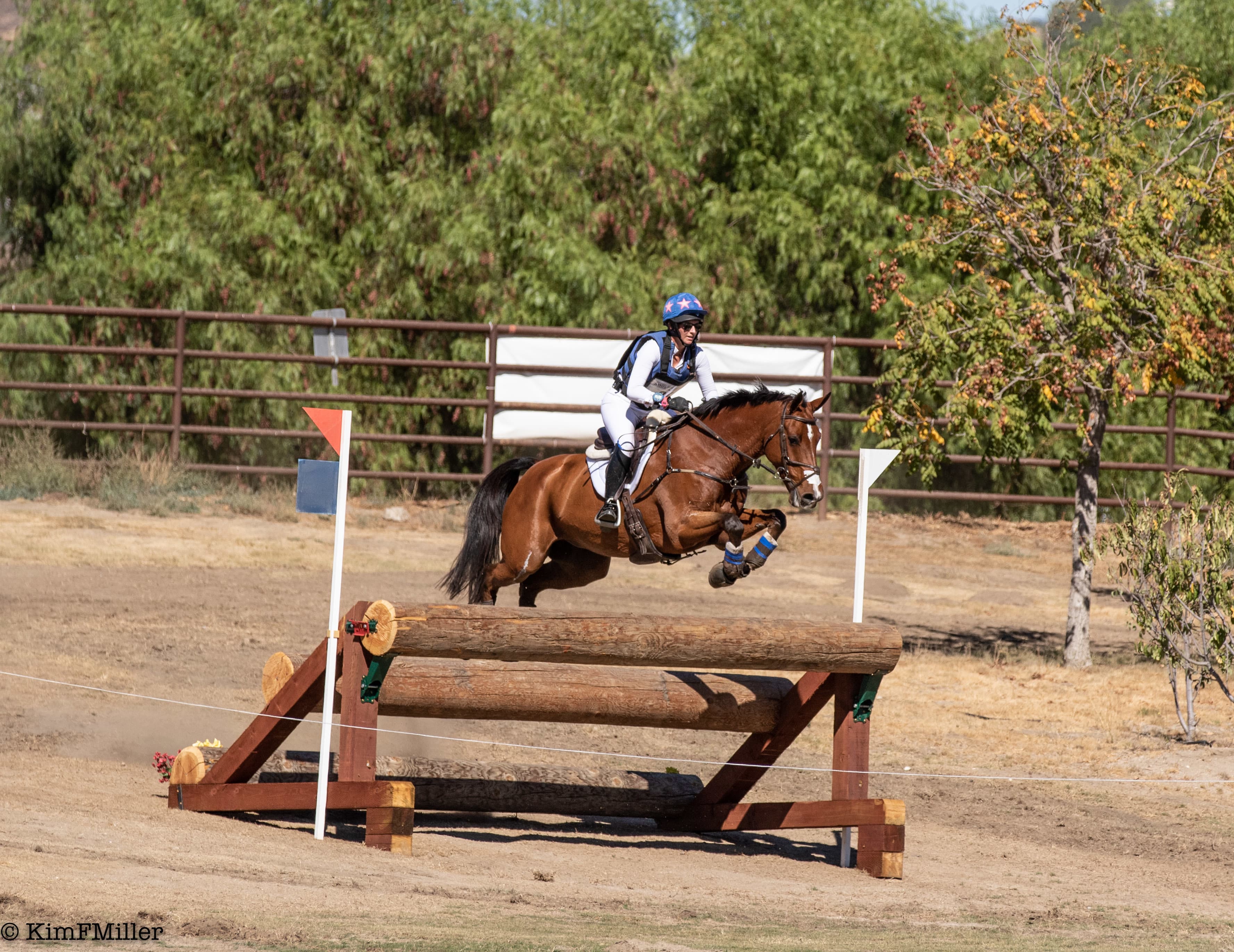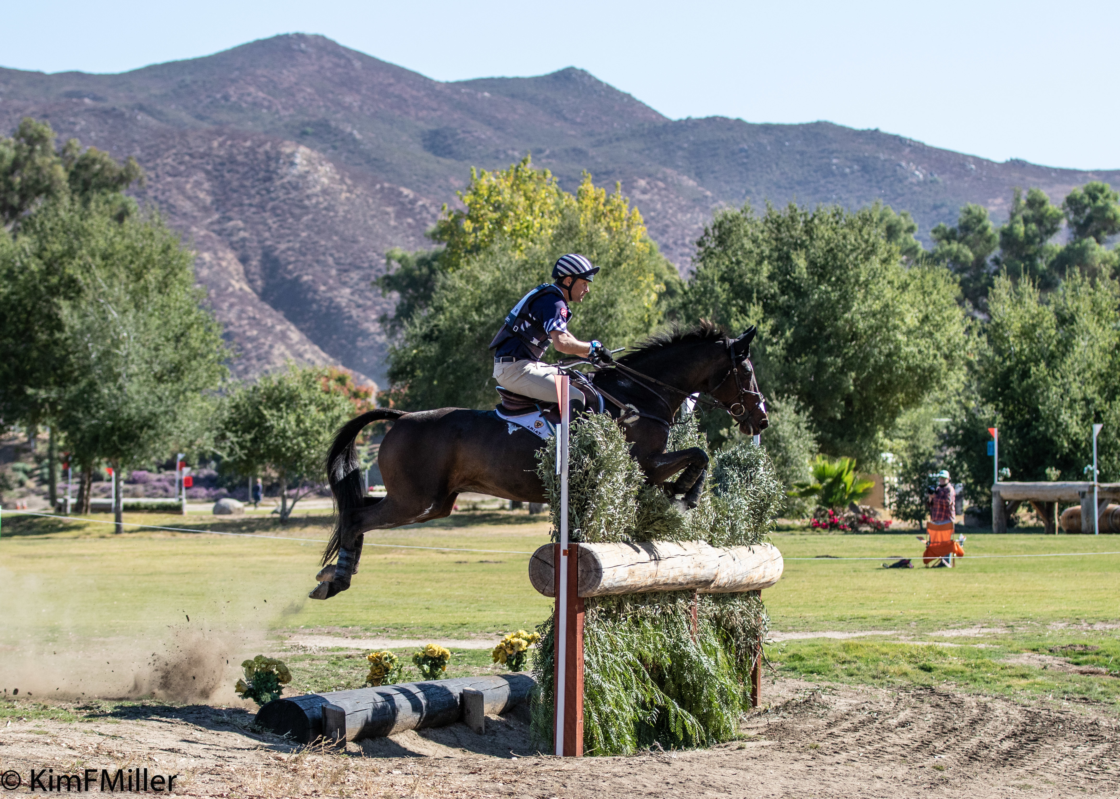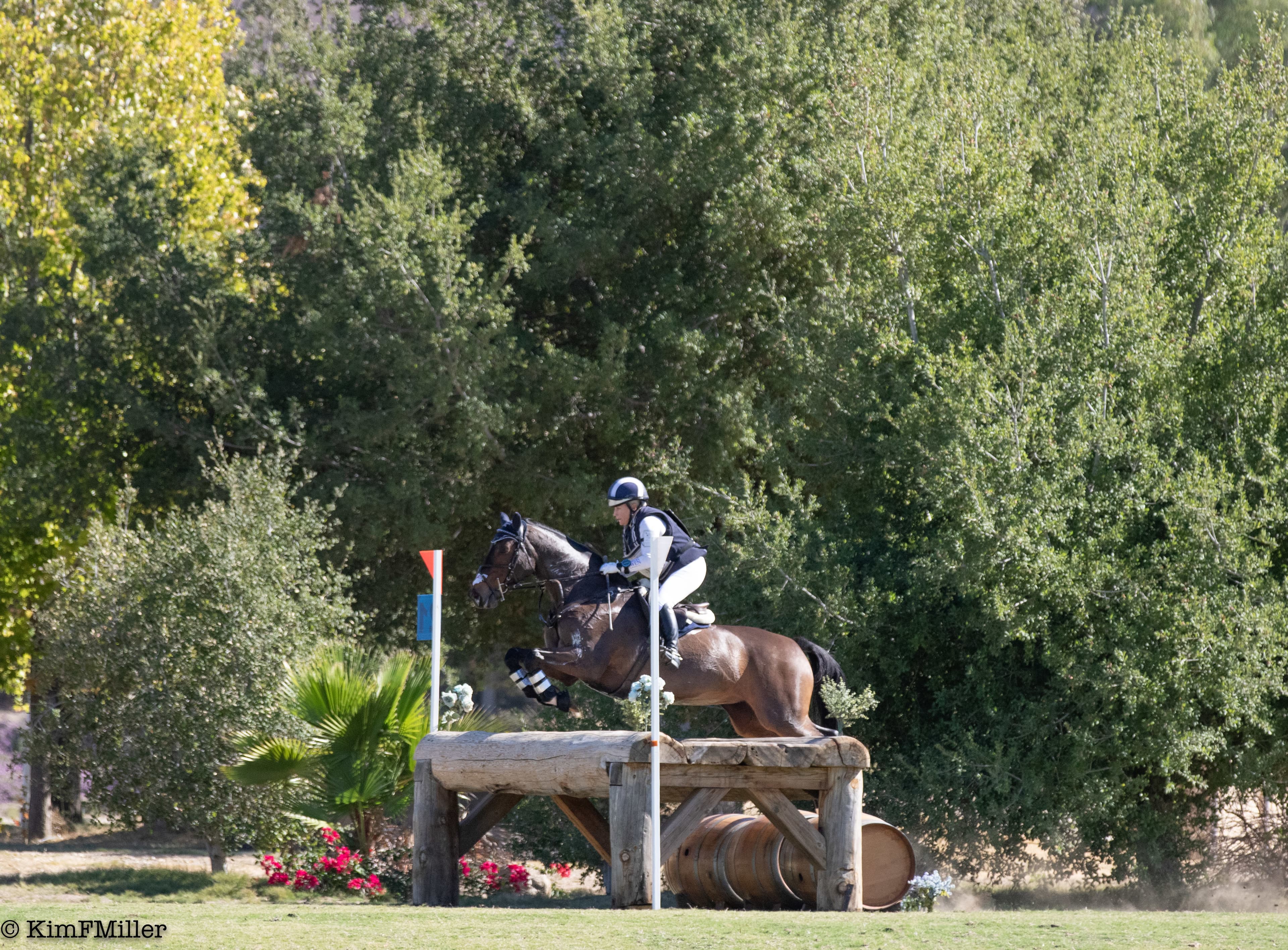 Amateur rider India McEvoy rode with Phillip Dutton when she was in college and had a refresher with him just last week in a clinic near her Northern California home. Getting Redbull, her own 8-year-old Oldenburg gelding by Redwin, more in front of her leg during the cross-country warm-up was among the suggestions she put into play today for a double-clear round to stay atop the standings on a 26.50. "He's a funny combination of good temperament for dressage and he could gallop forever, but having Thoroughbred from his mom, he can get a little nervous. Phillip rode him a little during the clinic and gave me pointers about making sure he's forward and letting him have a second to think so he doesn't get frazzled."