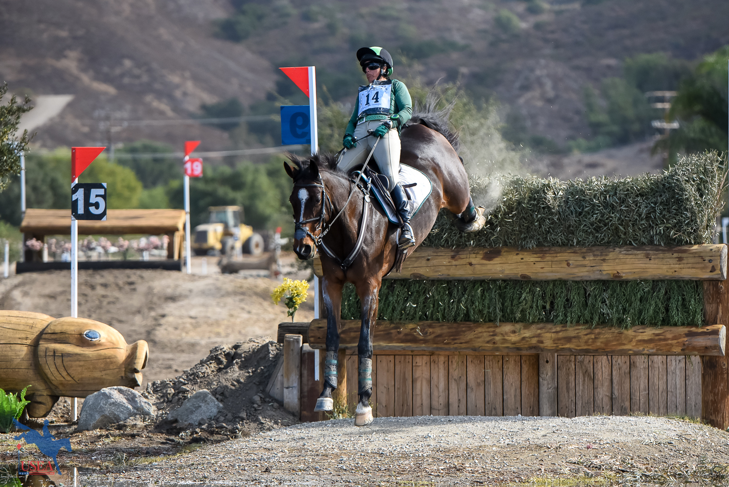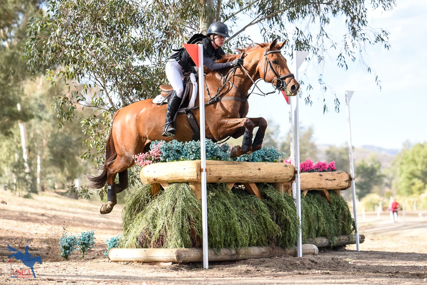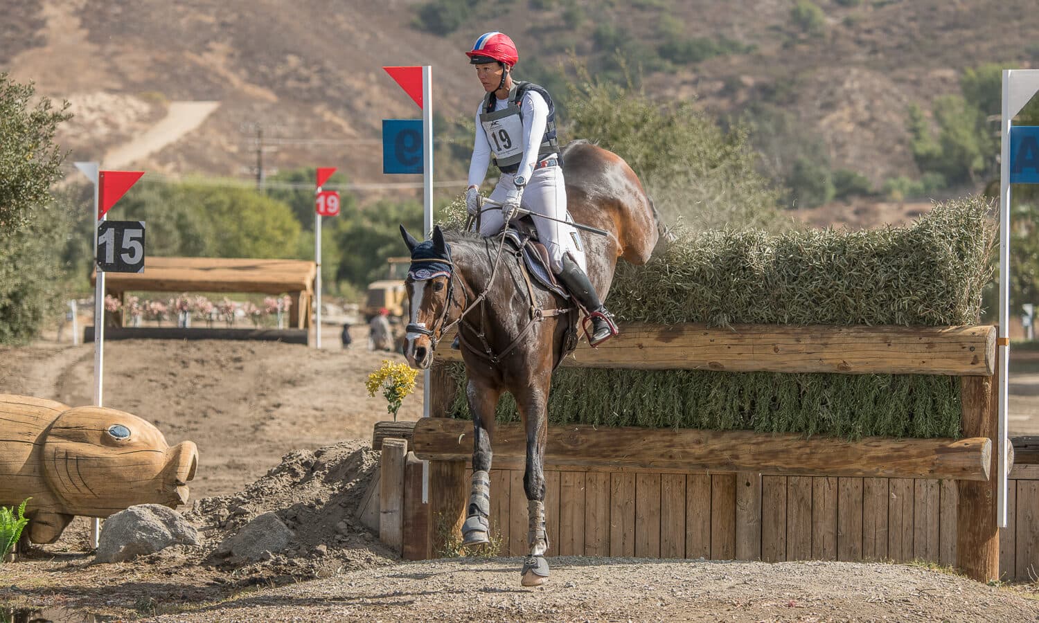 Riders in the CCI4*-L, CCI3*-L, and CCI2*-L took their turn on the cross-country courses today at the Galway Downs International Event in Temecula, California. Jay Hambly designed the courses for the CCI4*-L and CCI3*-L while Burt Wood designed the course for the CCI2*-L.