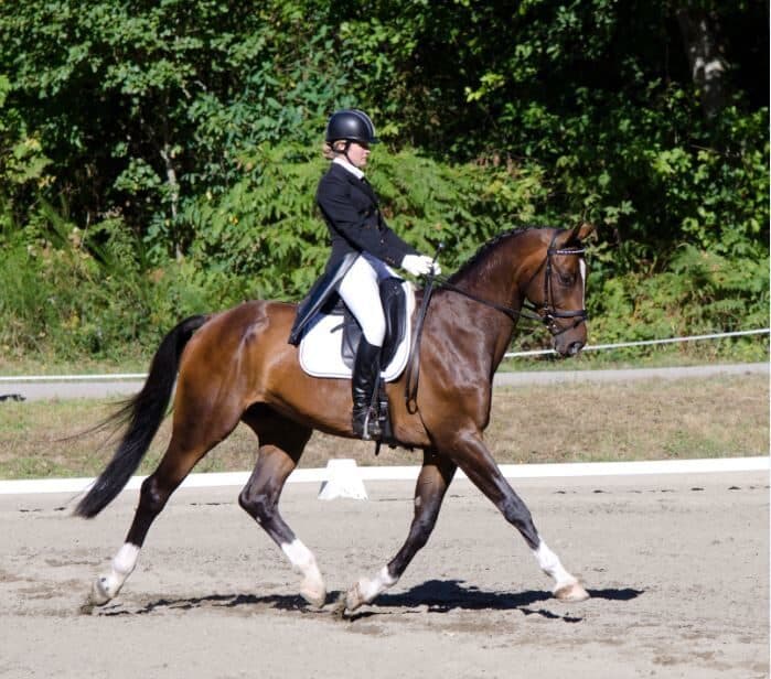 “The spook is the hardest thing with him, but I felt that while it has been a negative in the past, today I used it to my benefit and it added to his trot,” said Linstedt. “He has wonderful changes but he didn’t have them today, so in places it could have been better. But, his confidence is getting better.”