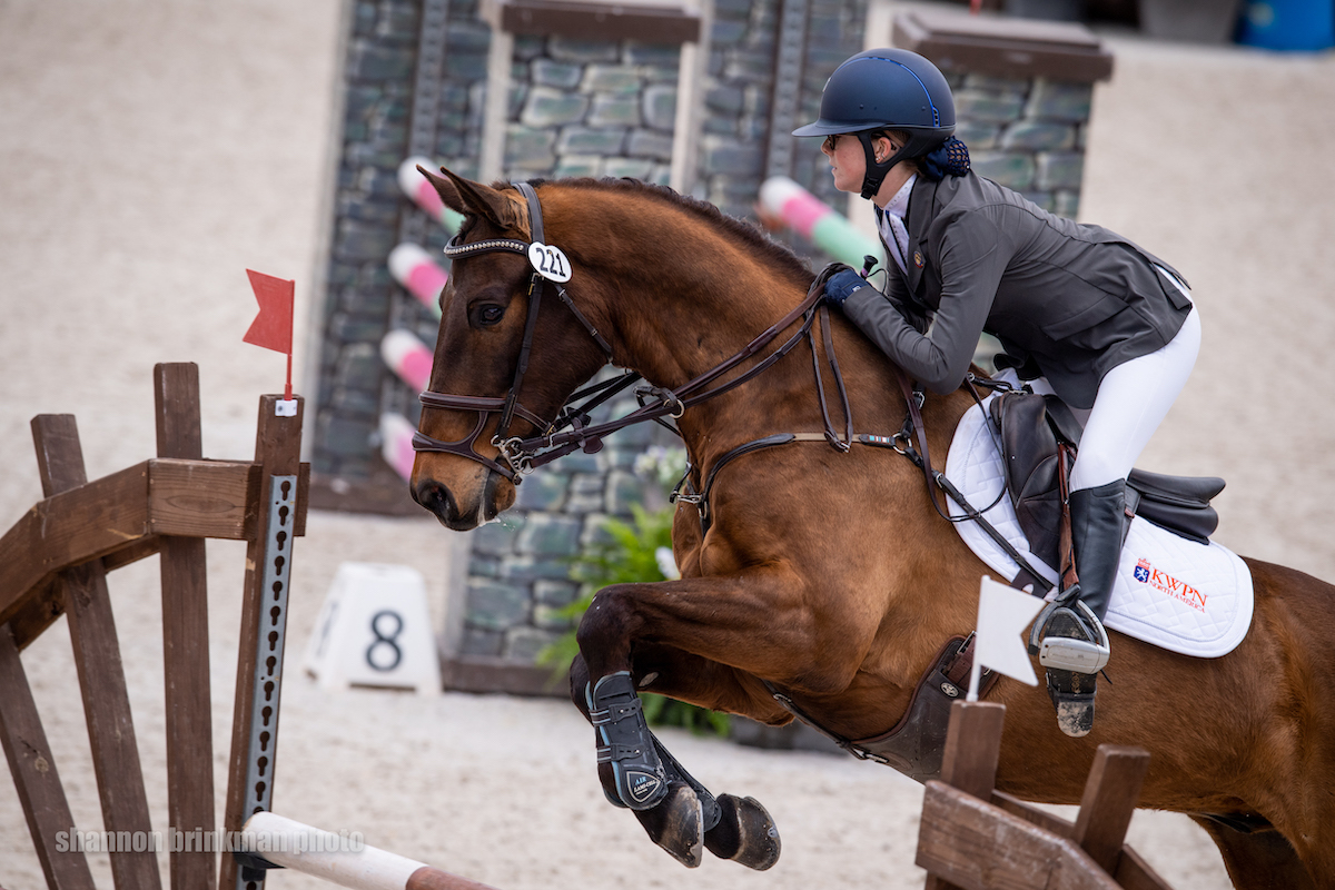 Marissa Griffin (USA) and Conquistador, her own 15-year-old Dutch Warmblood gelding (Van Gough x Haarlem), went double clear to protect their lead on a score of 28.7 in the CCI1*-S Division. A double-clear stadium round promoted Sandra Holden (USA) and Evil Munchkin, her own 19-year-old Holsteiner gelding (Clearway x Caretino), to second place on a two-round total of 32.8. Ashton Benefiel (USA) and Kingston Van Meerzicht, the 7-year-old Dutch Warmblood gelding (Harley VDL x Indoctro) owned by Ashton Brooke Benefiel, hold their podium placing on a score of 35.5.