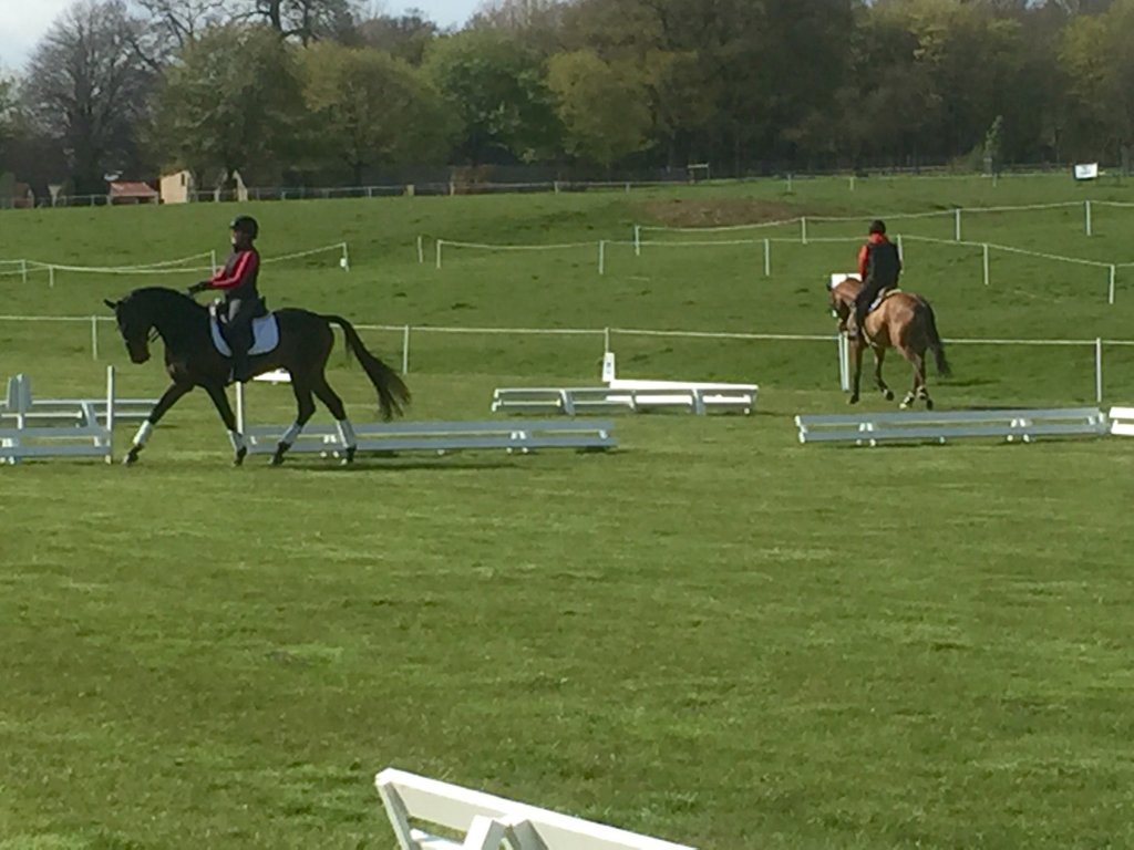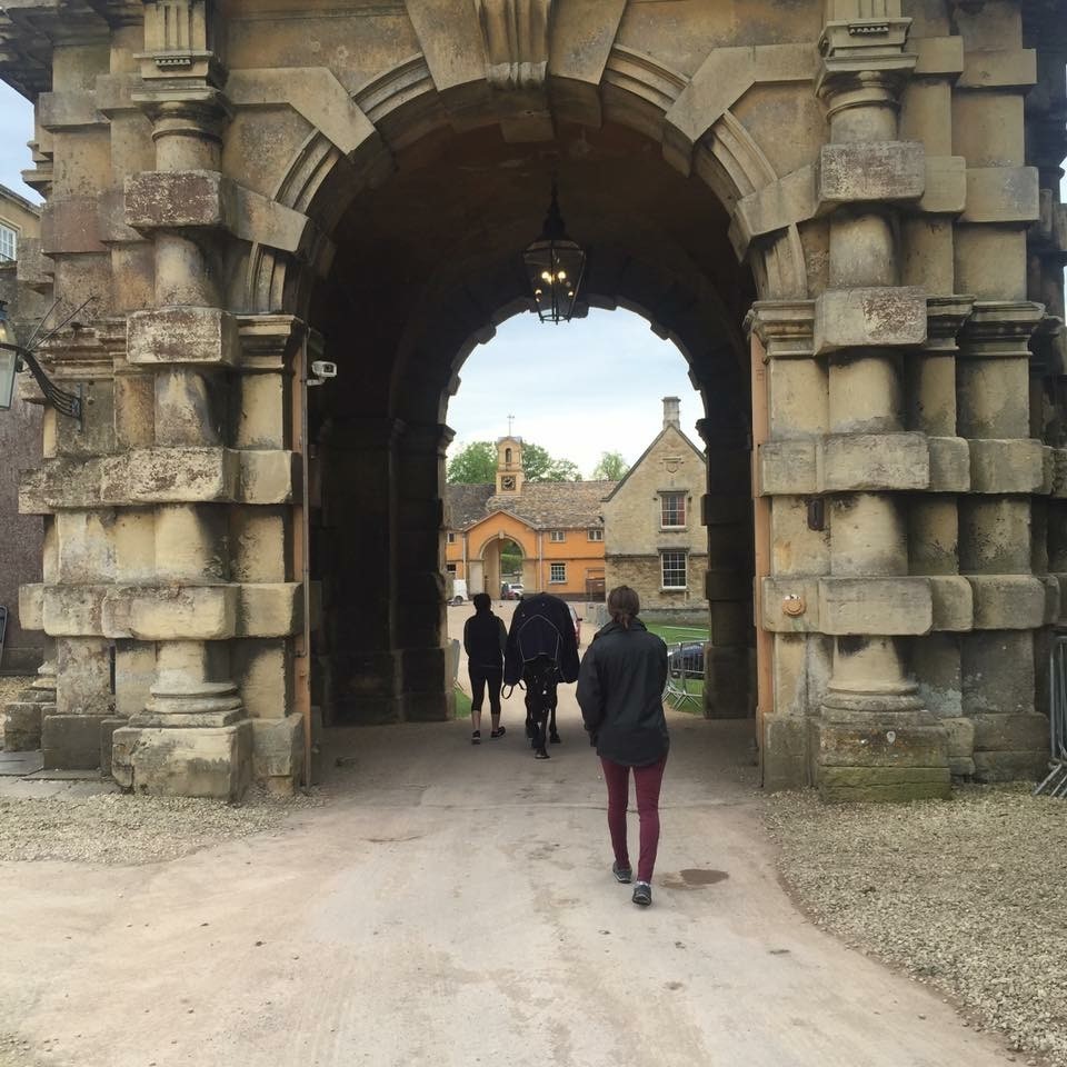 The week of Badminton came up quickly and next thing you know we are all packed up and headed the just an hour up the road to one of the biggest, most prestigious four-star events in the world! Once we got there Libby and I both had to practically pick our jaws off the floor as we looked up at the castle which hosted the actual stalls for competitors. It was one of the coolest things I have ever seen. As I went to find Rocky's stall, I was passing by the stall cards listing Izzy Taylor, Laura Collet, Chris Burton, Paul Tapner, Oliver Townend, Ben Hobday, Jock Paget, Mark Todd as well as a wheelbarrow with Jung written on it..... My mind may have just blown when seeing that one! That was when I realized how tiny a tadpole I was in this ginormous body of water we call eventing. The best of the best were here, and Libby and Rocky were a part of it. Watching each of those riders work with their horses in the days leading up to dressage was pretty spectacular. I wanted to stop each and every one of them and ask, why are you doing that? What is your prep leading up to this huge event? How are you getting that result from what you just did? I was in complete and utter awe of each and every rider - it made me want to stay in this wonderful bubble that lived, breathed and ate only eventing.
