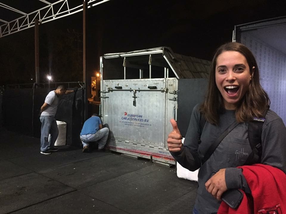 To say the beginning was intense is an understatement! I had graduated college in Athens, Ga on Wednesday, flew to Gainesville, Fl Thursday, drove with Libby and Rocky on Friday to Miami, and was on a cargo plane with Rocky to Amsterdam Saturday morning at 4:30 a.m. It was crazy and went by fast but the experience was incredible. I watched the shippers load each horse up into the boxes and then see the machines lift them into the cargo plane. I stayed up where the pilots were during the flight, periodically going down the steps to where the cargo was to check on Rocky and give him water. Each time I went to check on him, I had to bring an oxygen tank with me as a safety precaution; it was pretty cool. Rocky took everything in stride and acted as if he had done this his whole life.