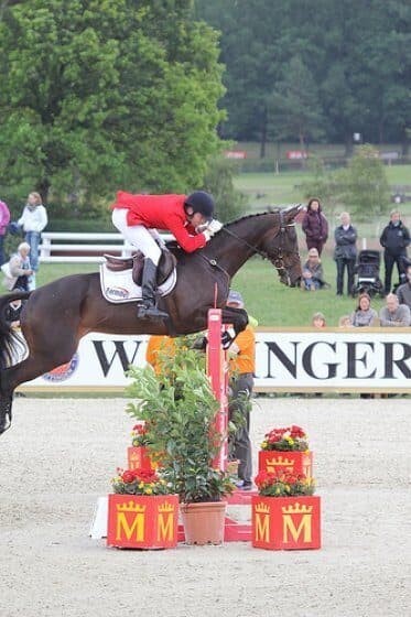 Will and Julian Stiller finished their four-star rounds with respectable final scores after a rain-drenched and more difficult CCI 4* show jumping competition. There were only five clear rounds out of 28. Fence 4 was a difficult triple combination with a big oxer as the middle element that caused much of the trouble. Final results were very popular with three home team riders in the top three positions: Andreas Dibowski on a clear round in 1st, with Sandra Auffarth and Frank Ostholt in 2nd and 3rd place. Piggy French, leader after cross-country, was 4th and our old friend, Clayton Fredericks (Australia), moved from 8th to 5th on a clear show jumping round.
