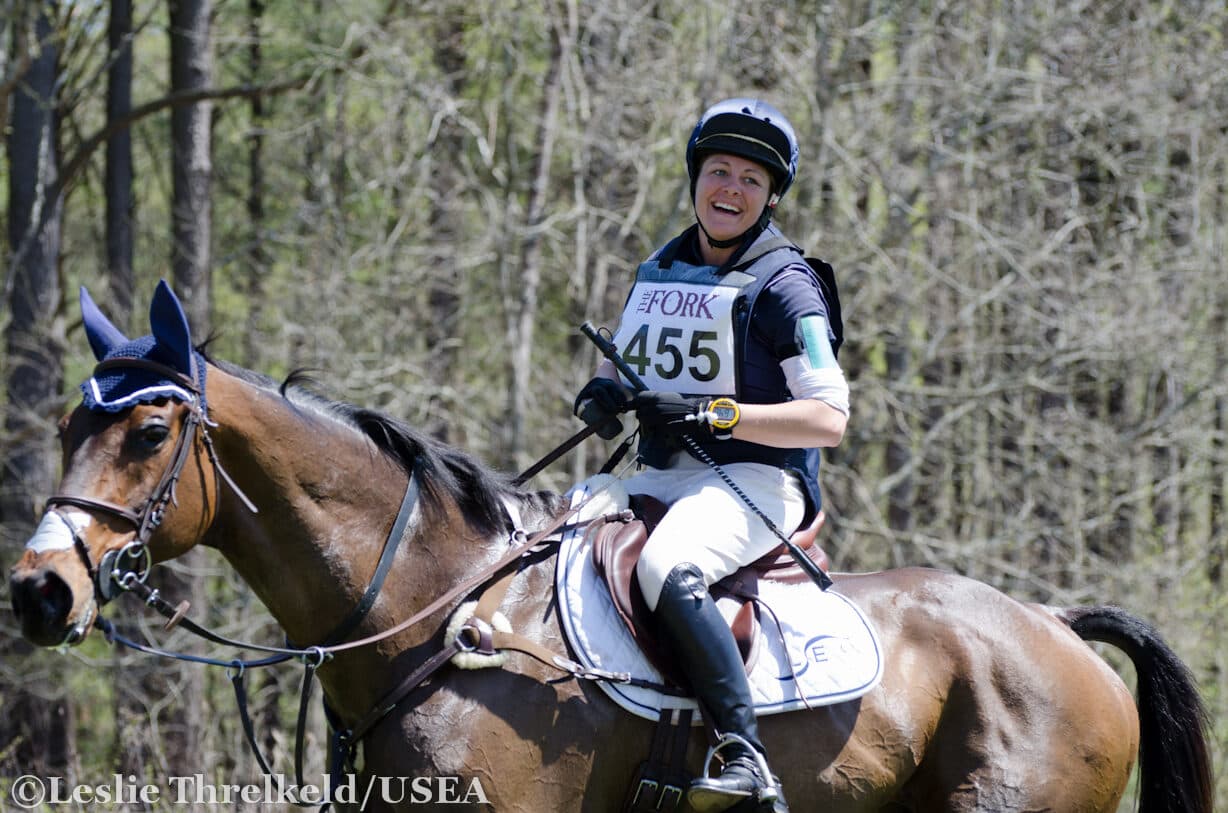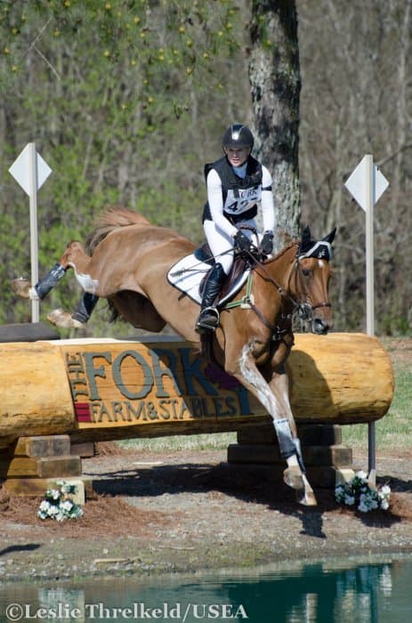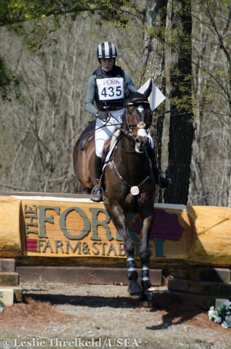 An exciting day of cross-country in the final phase of the Adequan USEA Gold Cup and PRO Tour Series CIC3* at The Fork in Norwood, North Carolina ended with a race against the clock. Tremaine Cooper’s cross-country course was challenging enough, but the optimum time was very tight, and riders and spectators anxiously waited for each competitor’s results to be announced. Many riders in this division are on their way to the Rolex Kentucky CCI4* at the end of April and therefore were not galloping for time. Lynn Symansky exclaimed at the finish line that she did not mean to make time, but she and her 10-year-old Thoroughbred gelding Donner cruised around the course in style and finished with nine seconds to spare to take home their first international win as a pair.