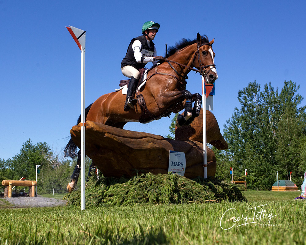 Aiken, South Carolina based Annie Goodwin is the new leader in the CCI1* following cross-country and describes her own Fedarman B, an 8-year-old KWPN gelding (Eurocommerce Washington x Paulien B) who Liz Millikin sourced in Holland as “quirky” and “very quiet” but “very hard to get on.” Tied for second behind Goodwin are Dunham, Quebec’s Colleen Loach riding Peter Barry’s horse Vermont and another Canadian, Holly Jacks Smither riding Candy King.