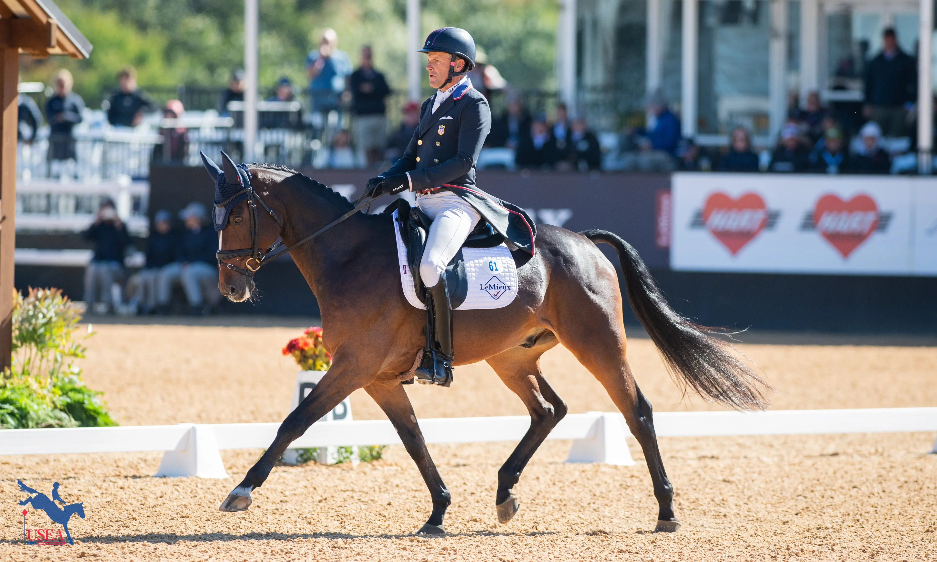 Elkton, Md.—Oct. 16—A score of 31.0 slotted Boyd Martin and Luke 140 in the lead in the MARS Maryland 5 Star following day 1 of dressage on Thursday.