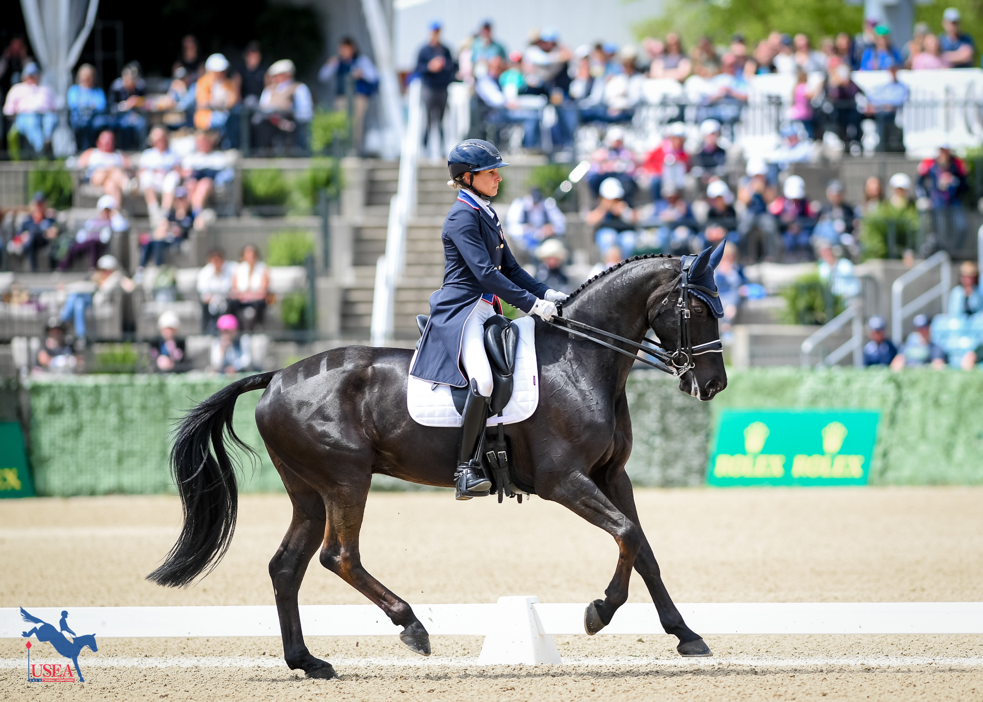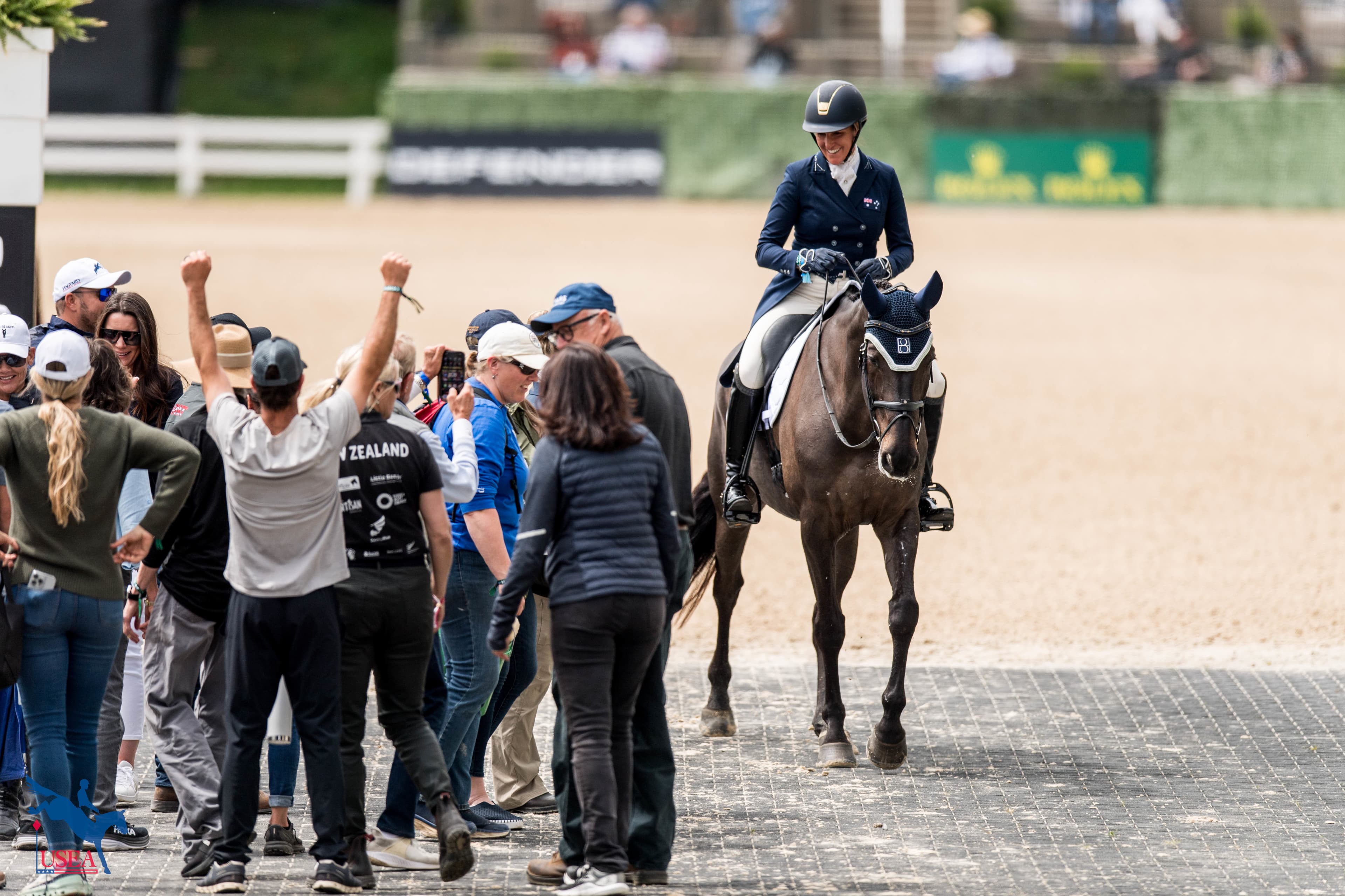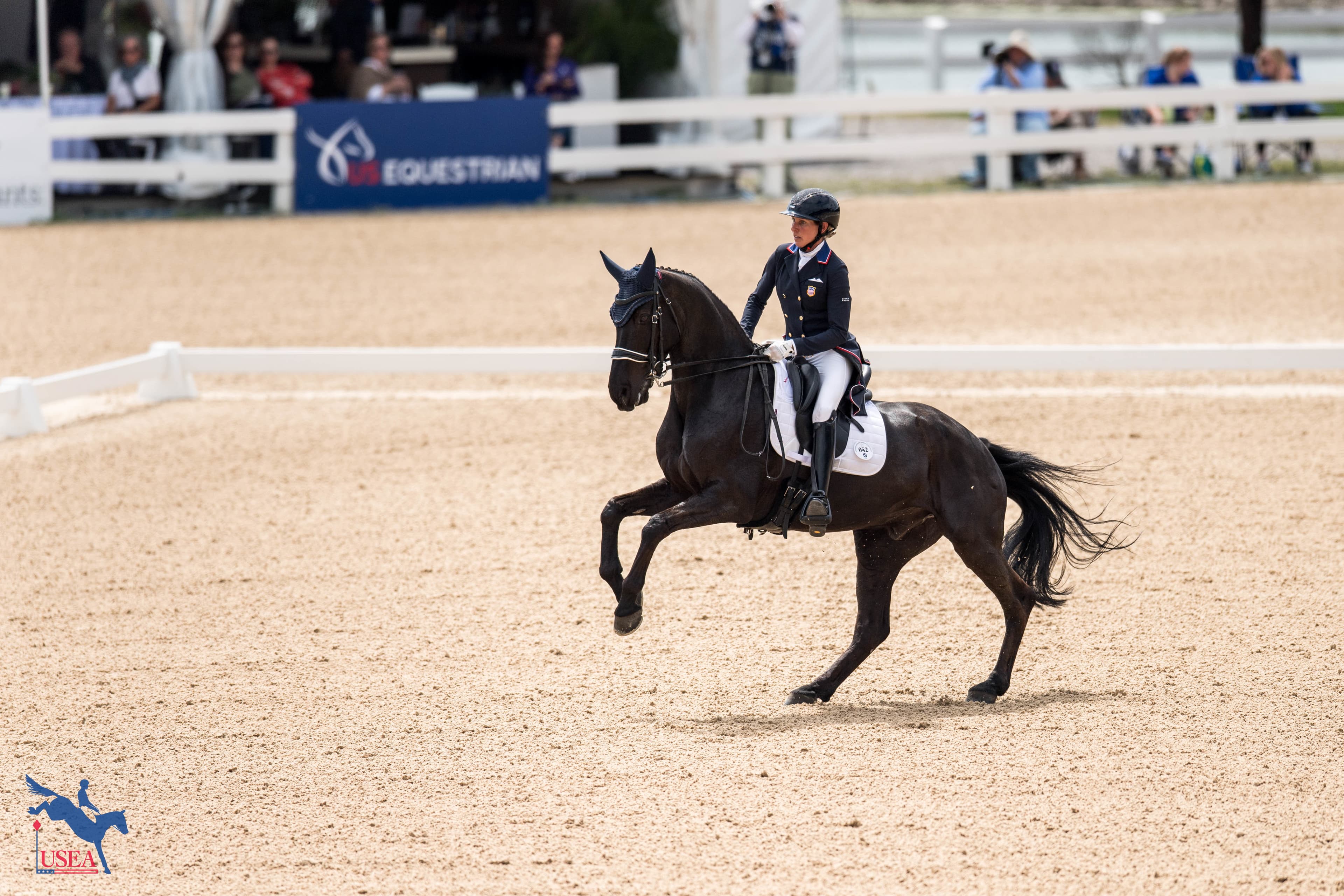 “I was really thrilled with him,” she said. “He’s a young horse, very much a horse in the making still. For him to be in the top three with what I would consider the finished product sort of test—I’m thrilled with. He definitely noticed the cameras and the crowd cheering from the warmup, but he’s just a horse I believe so much in, and I’m absolutely thrilled with him today.”