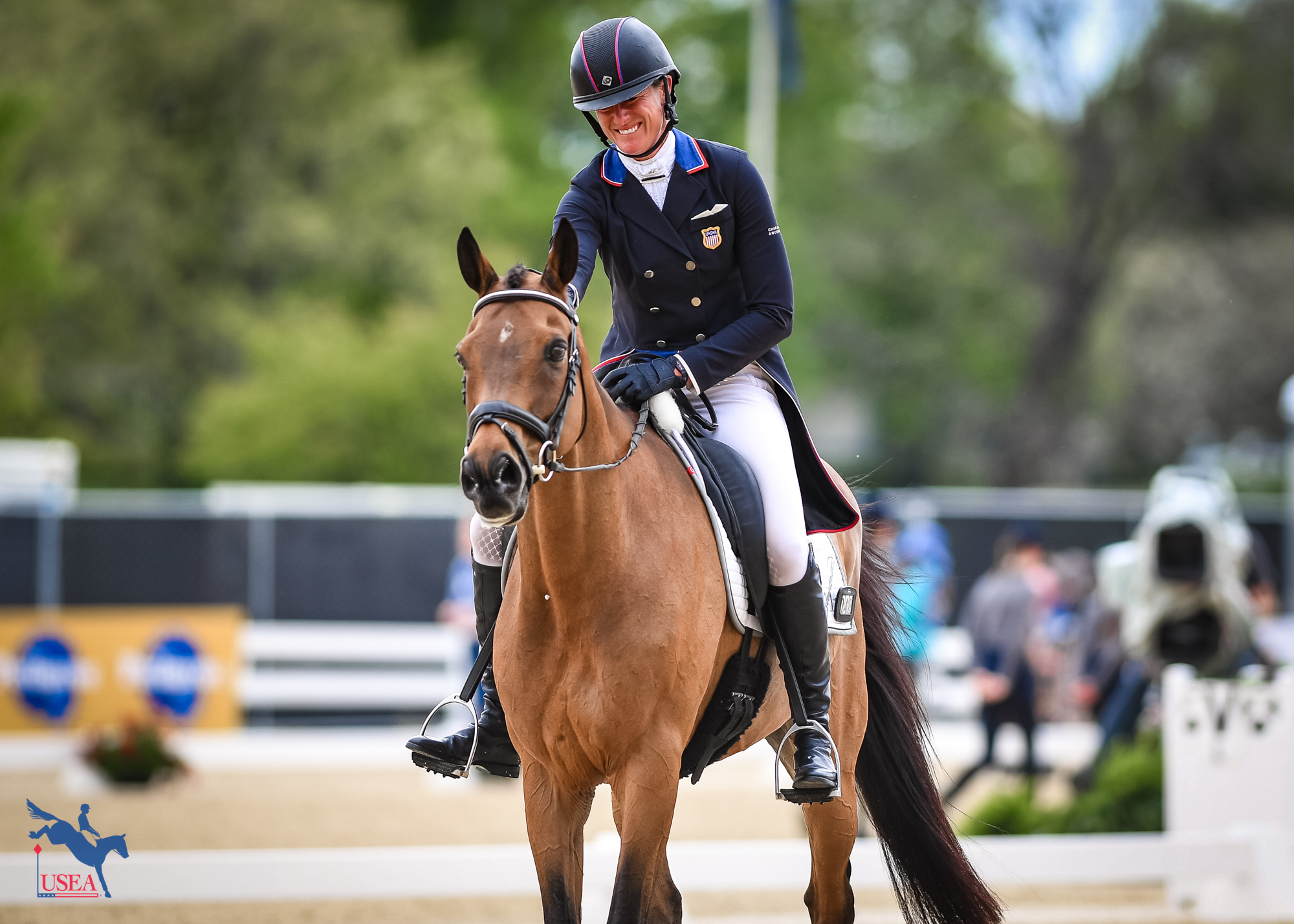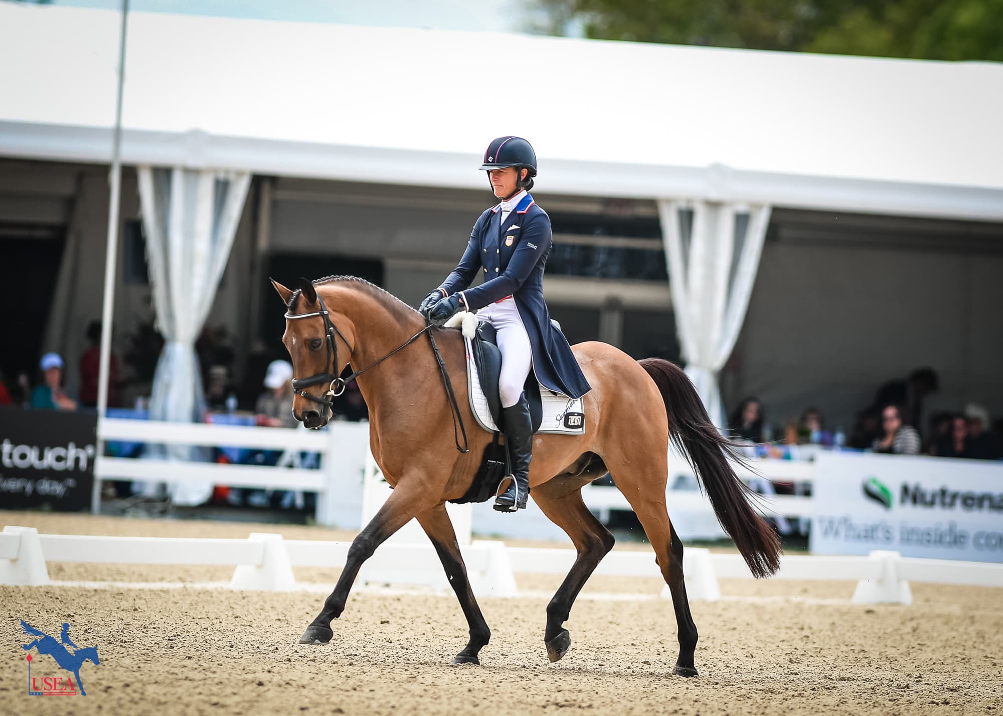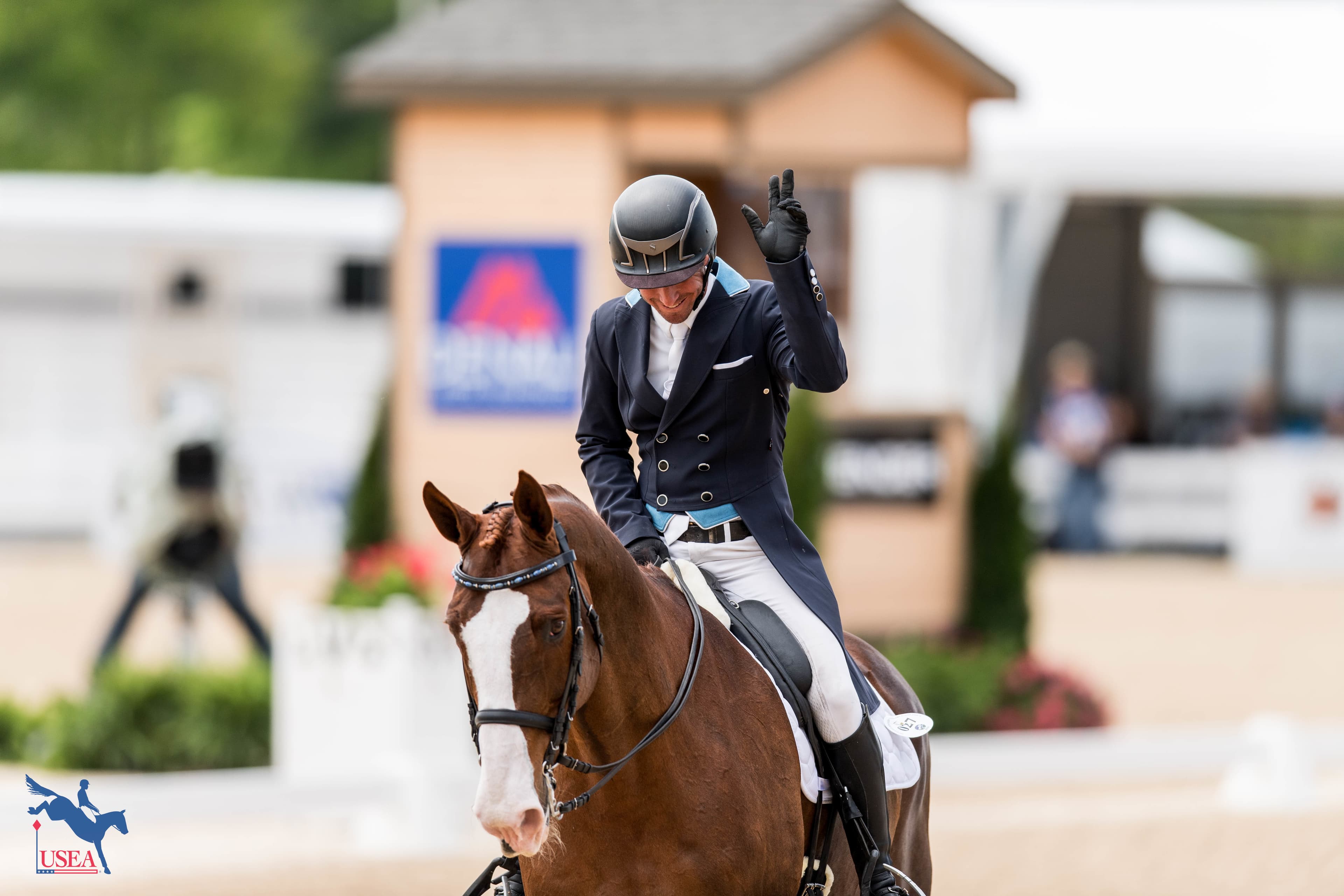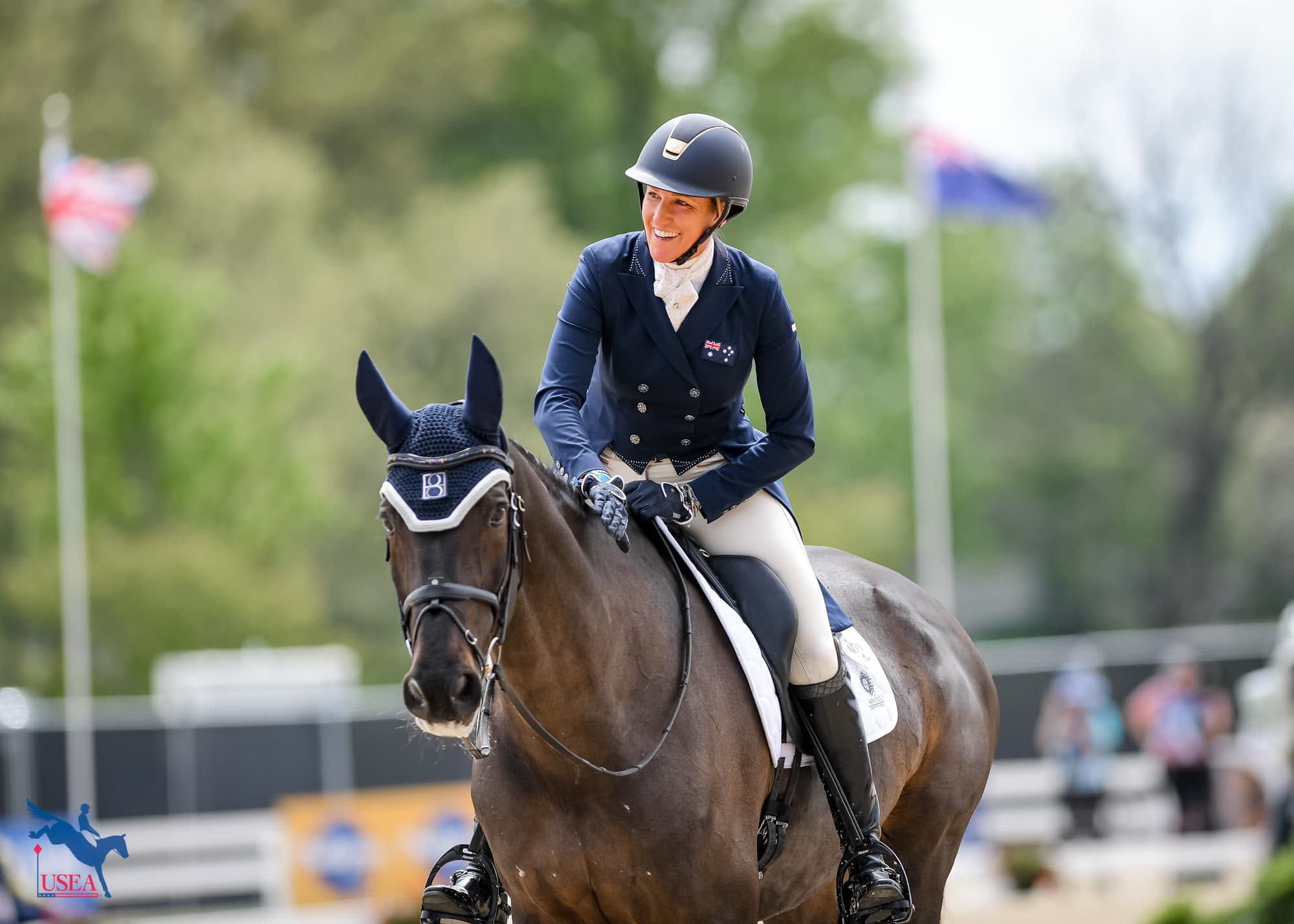“I was really thrilled with him,” she said. “He’s a young horse, very much a horse in the making still. For him to be in the top three with what I would consider the finished product sort of test—I’m thrilled with. He definitely noticed the cameras and the crowd cheering from the warmup, but he’s just a horse I believe so much in, and I’m absolutely thrilled with him today.”