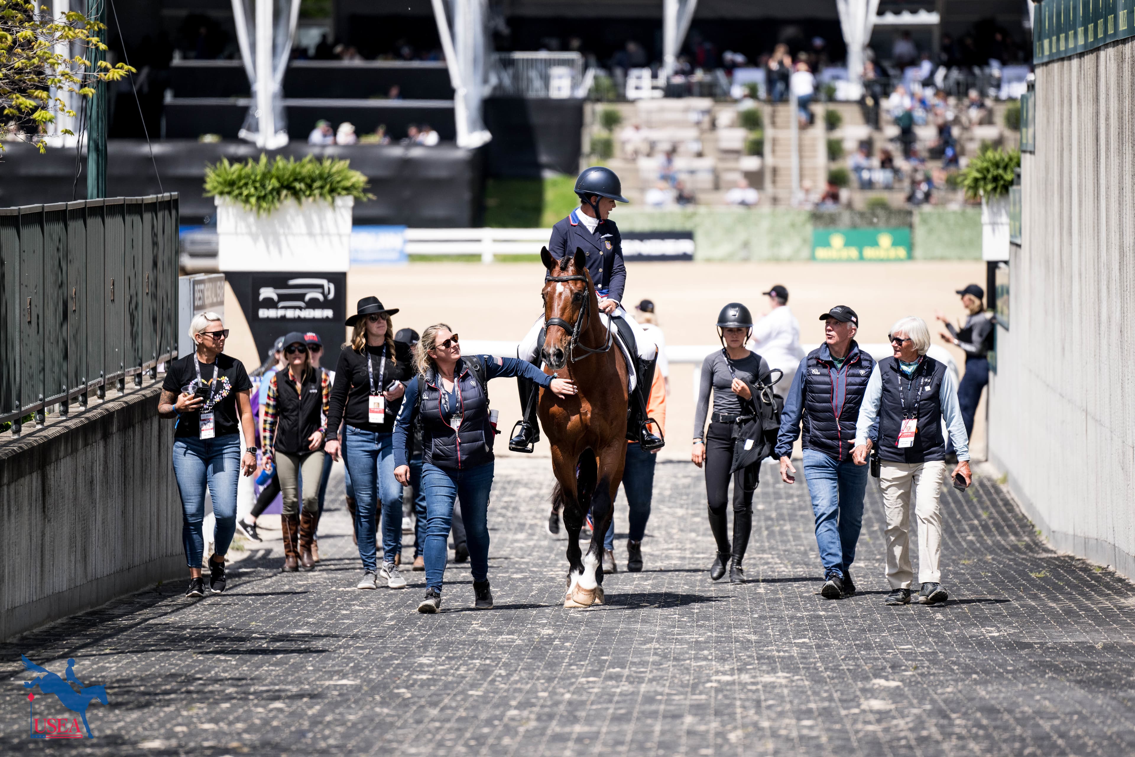 “It was definitely a big team effort because he was extremely excited to be back at the party,” she said. “He’s had a really long career. He did his first four-long as an 8-year-old and his first Kentucky five-star as a 10-year-old and has done two big things every year for the last decade, and last year was the first year he hasn’t. When we got here, he certainly let us know that he was very pleased to be back, and he’s been the wildest I’ve ever had him! He’s not the type you can just ride until he’s obedient. He’ll get worse and worse. He’s got quite the personality, and he’ll only tolerate so much drilling and training. It’s certainly been a collaborative effort all week getting the right amount of schooling and keeping his brain engaged.”