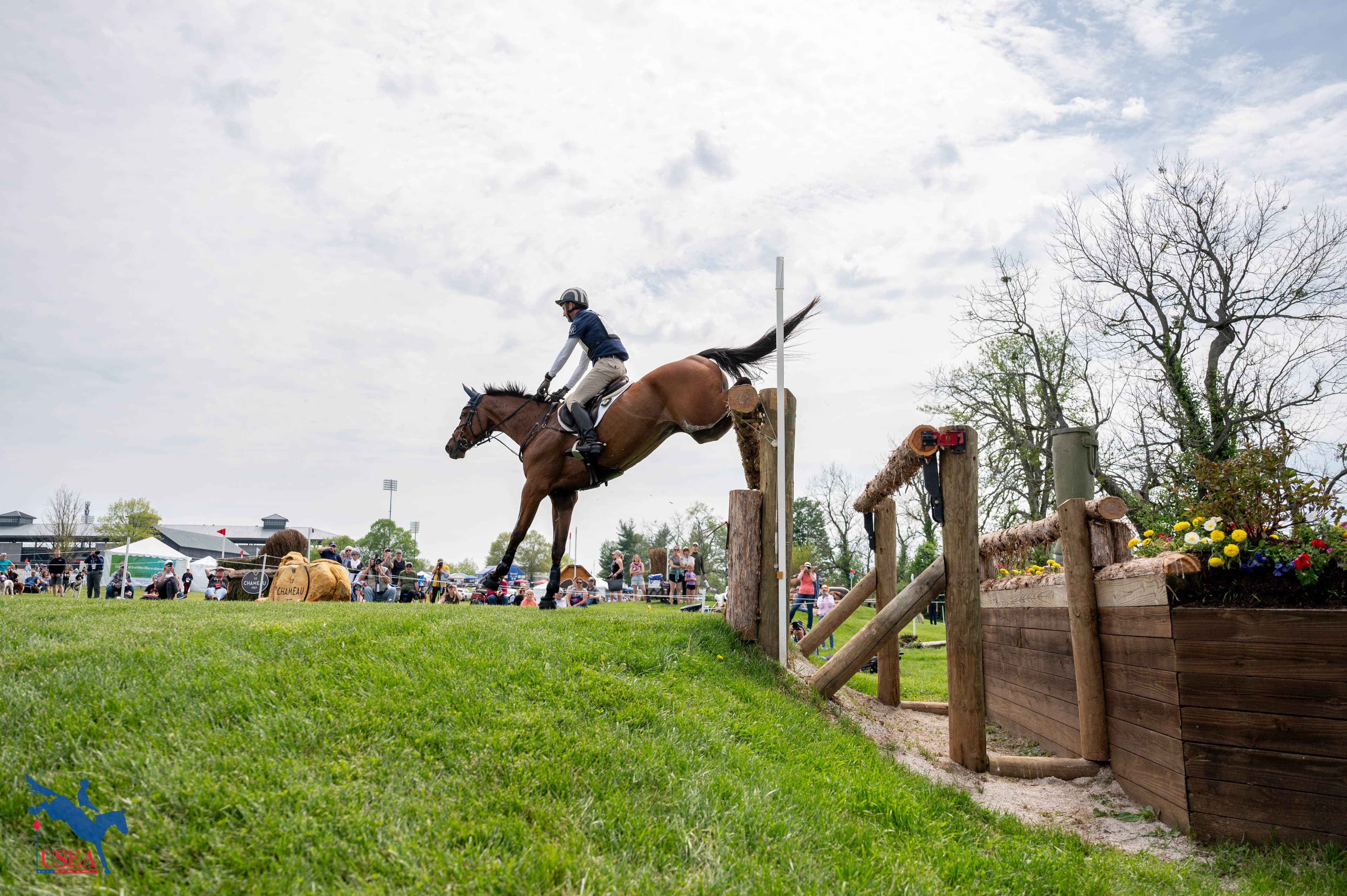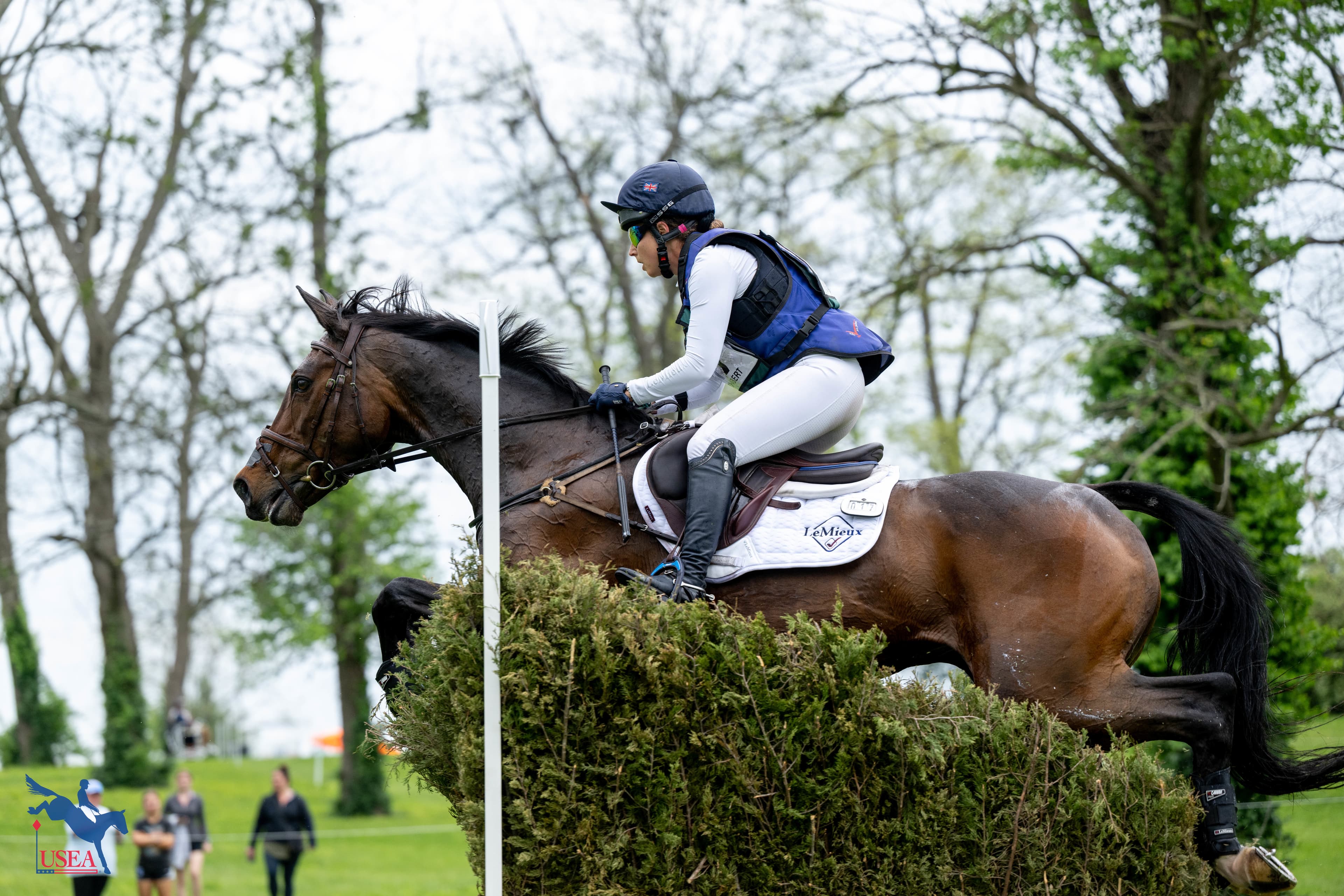 Lexington, Ky.—April 27—At the end of an eventful day of cross-country at the Defender Kentucky CCI5*-L, three British riders rose to the top of the Defender Kentucky CCI5*-L, led by dressage leaders Tom McEwen and JL Dublin.