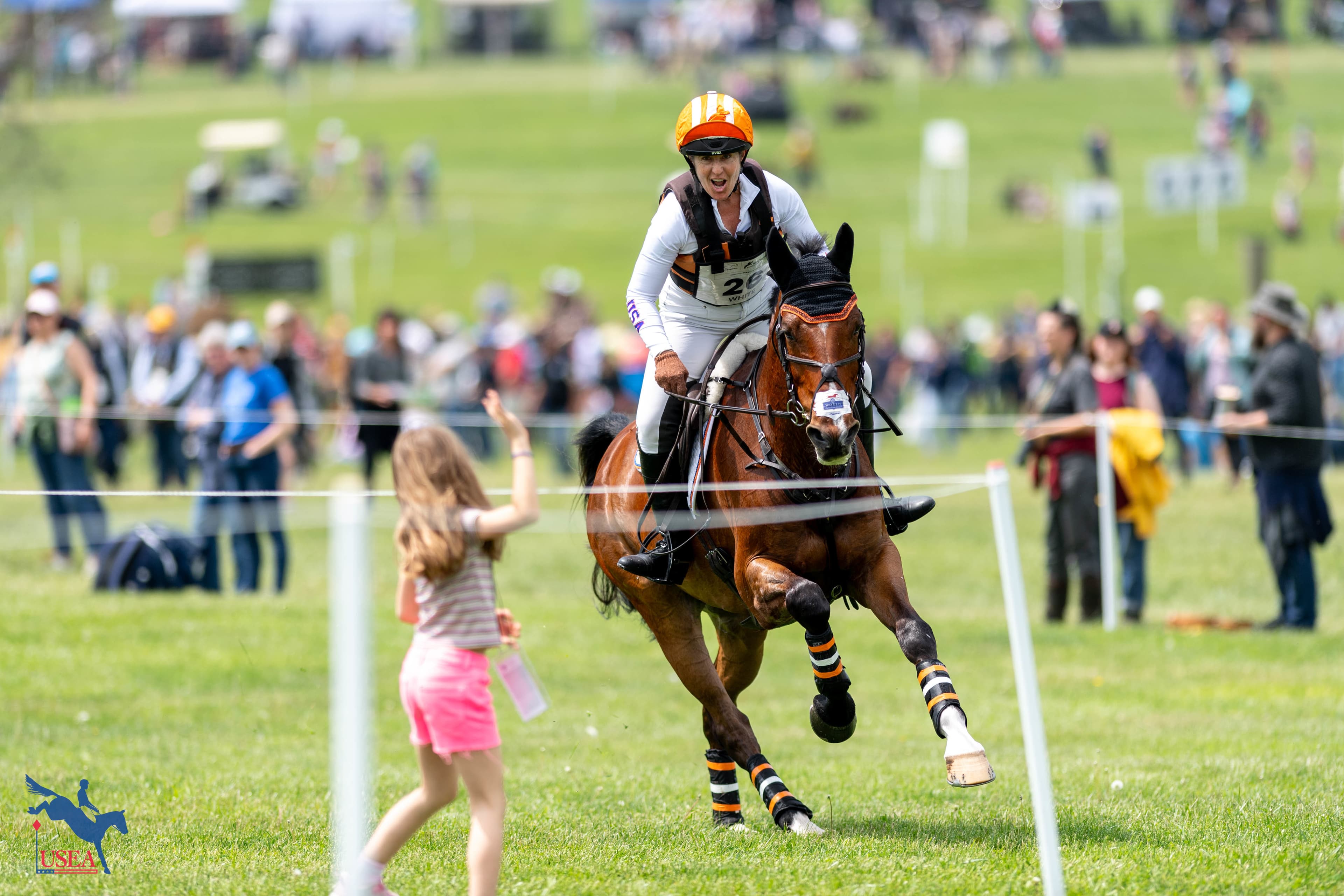 The top U.S. rider of the day was fan-favorite Mia Farley on David O’Connor’s 11-year-old off-the-track Thoroughbred gelding Phelps (Tiz Now x Boom Town Gal). They were one of two pairs to make the optimum time of 11 minutes 15 seconds over di Grazia’s track (the other was Germany’s Christoph Wahler and D’Accord FRH). As a result of their current fifth place standing, they’re leading the Defender/USEF CCI5*-L Eventing National Championship.