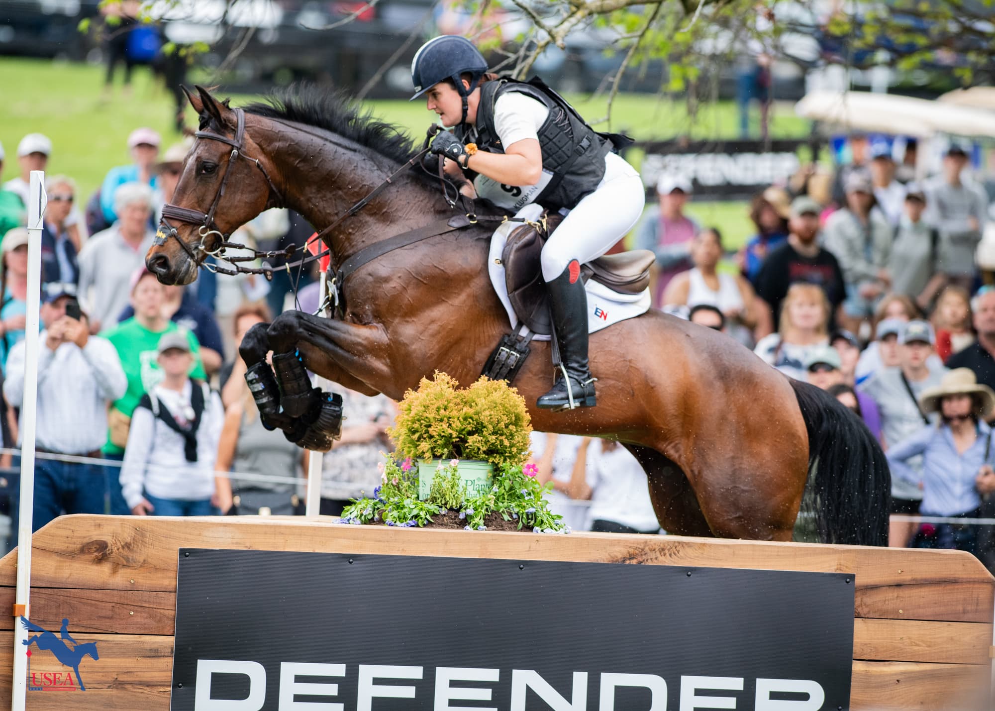 The pair had a few time penalties in hand over second-placed Yasmin Ingham on Banzai du Loir, and they used just enough, adding 4 time penalties to finish on 28.6. Ingham and “Banzai” remained in second place with 5.6 time penalties (31.6), while Oliver Townend and Cooley Rosalent jumped up from eighth after dressage with .4 time penalties (31.8).