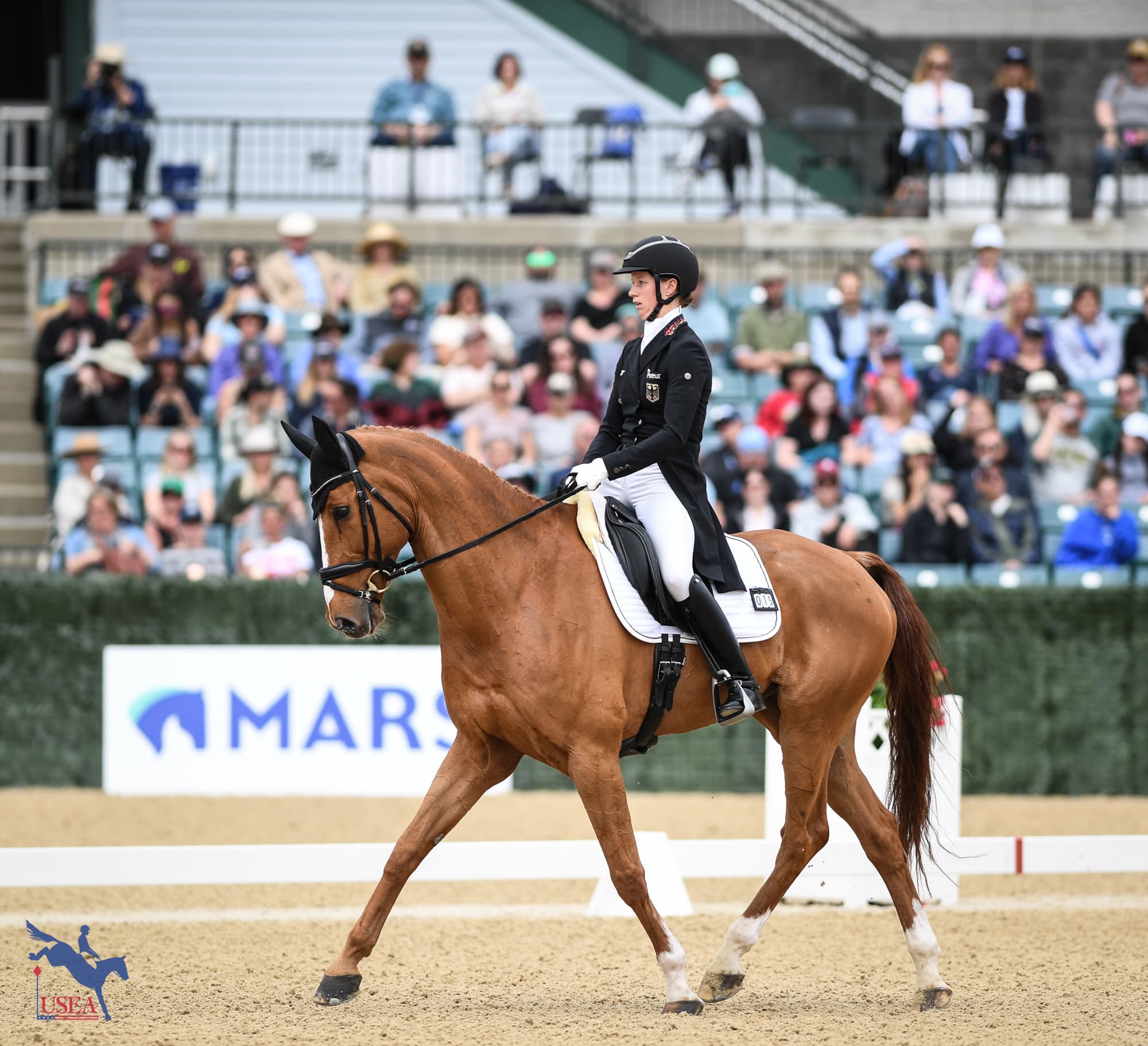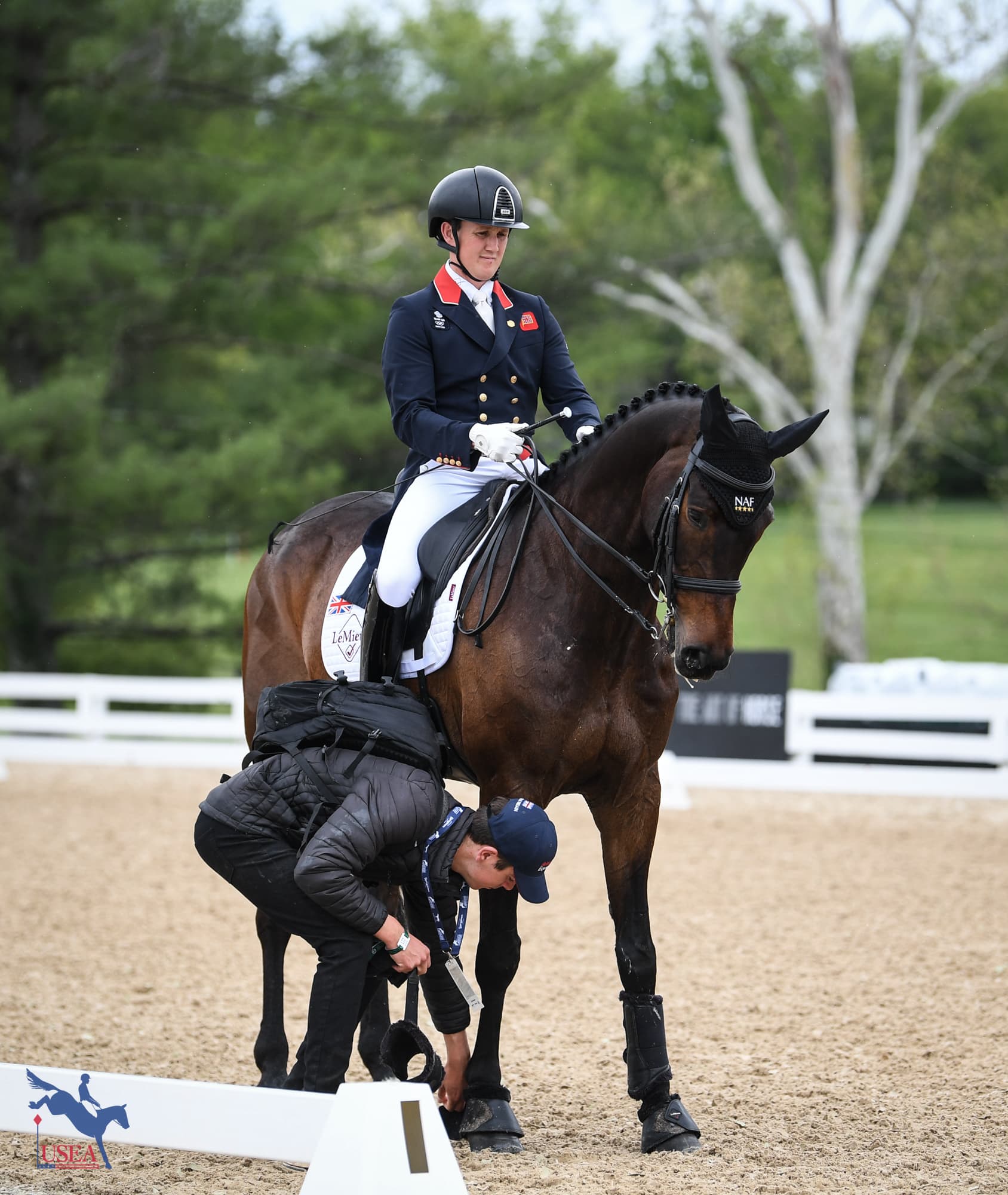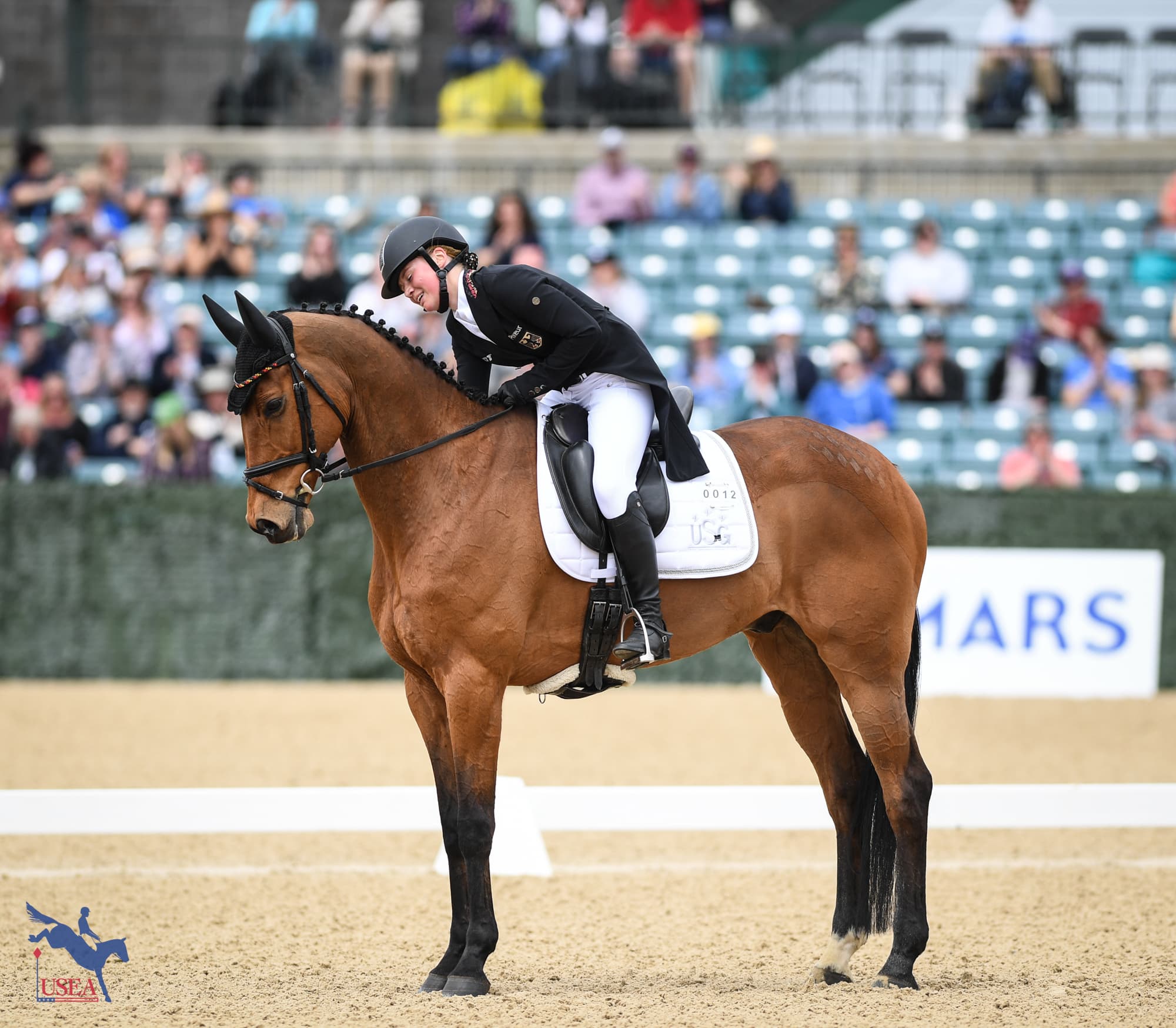 “I think it was one of his best tests to date,” she said. “We've been working on him getting stronger and being in more self-carriage and being in front of my leg, and he answered all the questions super. I really couldn't have asked him to be better. Maybe I had a couple little tiny mistakes, maybe two, three little, tiny mistakes, but I was very pleased.”