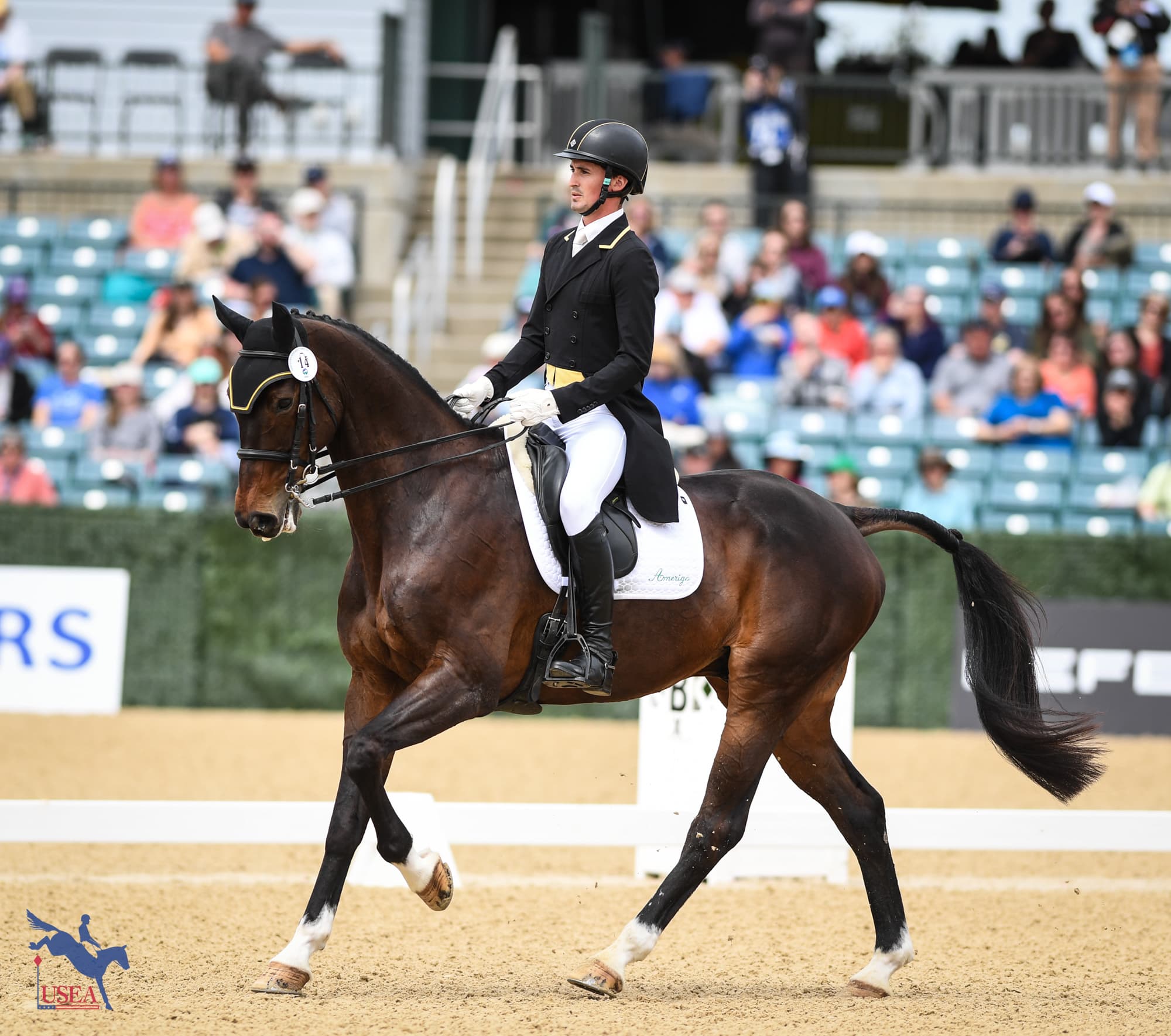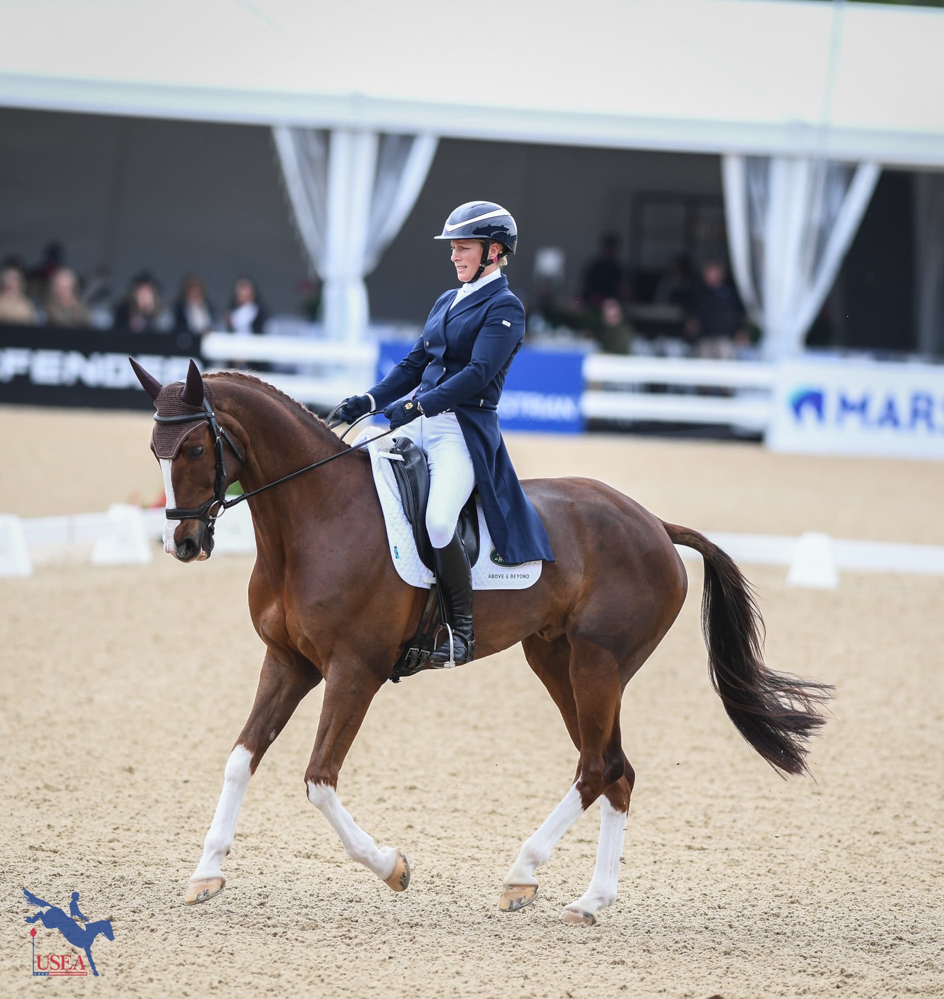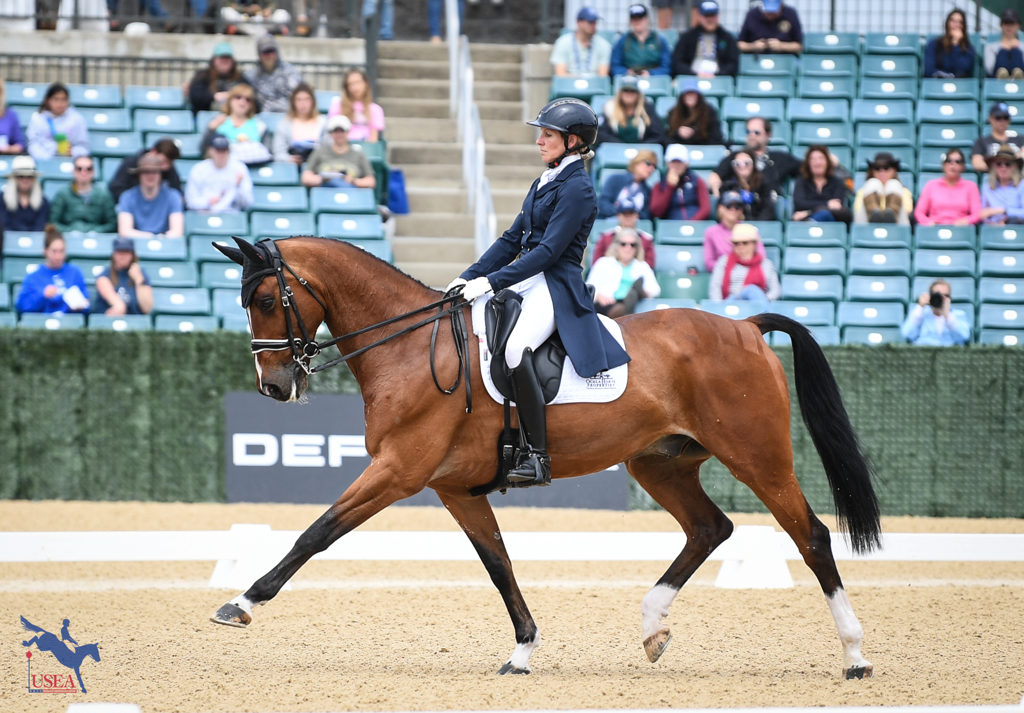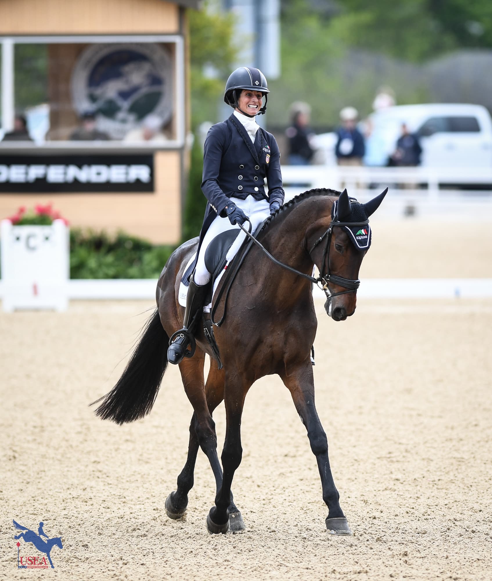 “I think it was one of his best tests to date,” she said. “We've been working on him getting stronger and being in more self-carriage and being in front of my leg, and he answered all the questions super. I really couldn't have asked him to be better. Maybe I had a couple little tiny mistakes, maybe two, three little, tiny mistakes, but I was very pleased.”