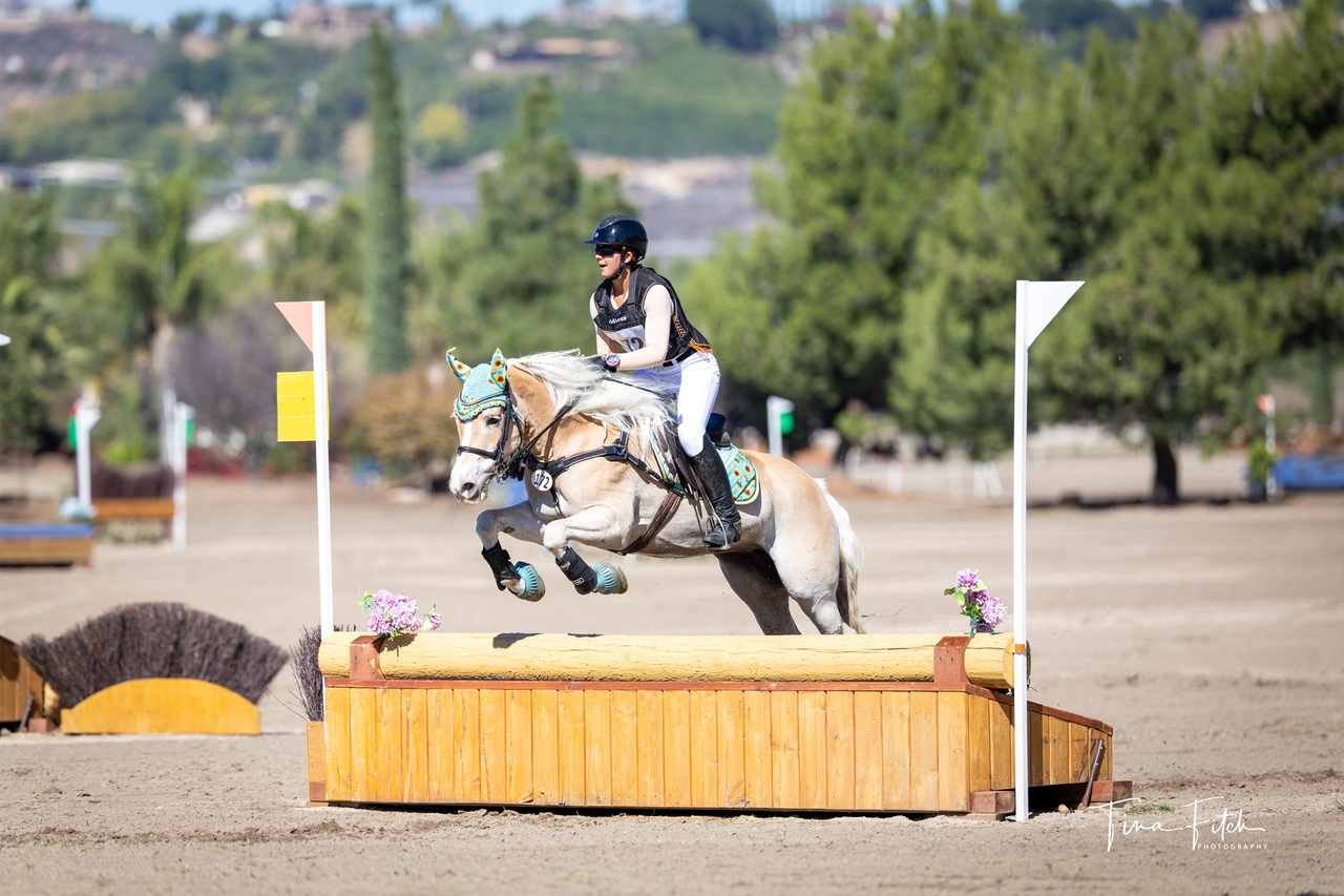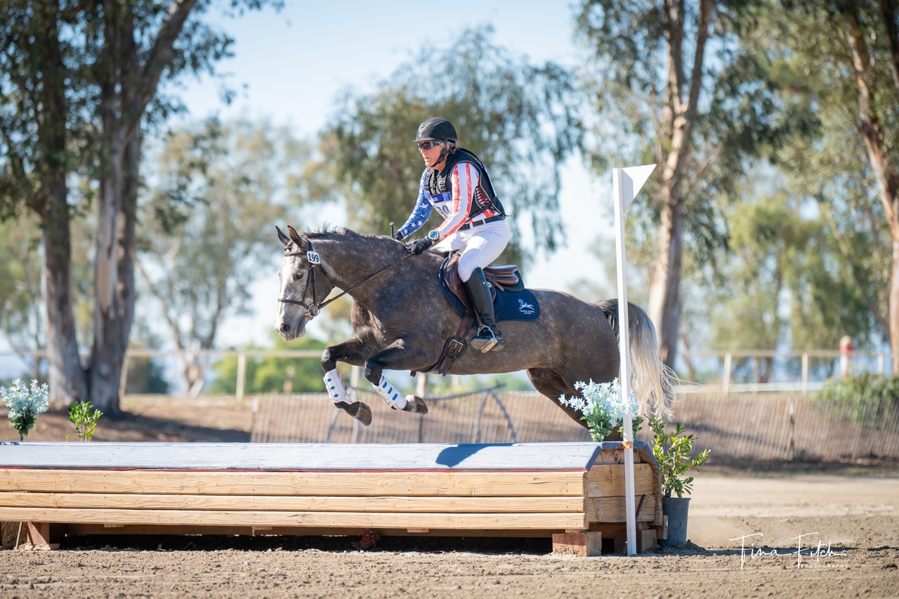 In dressage, “Waffles” was slightly off his game in the electric atmosphere, earning a 27.8. He breezed over his first Galway Downs cross-country track and overcame a first-fence stutter in show jumping to finish with an elegant clear round.