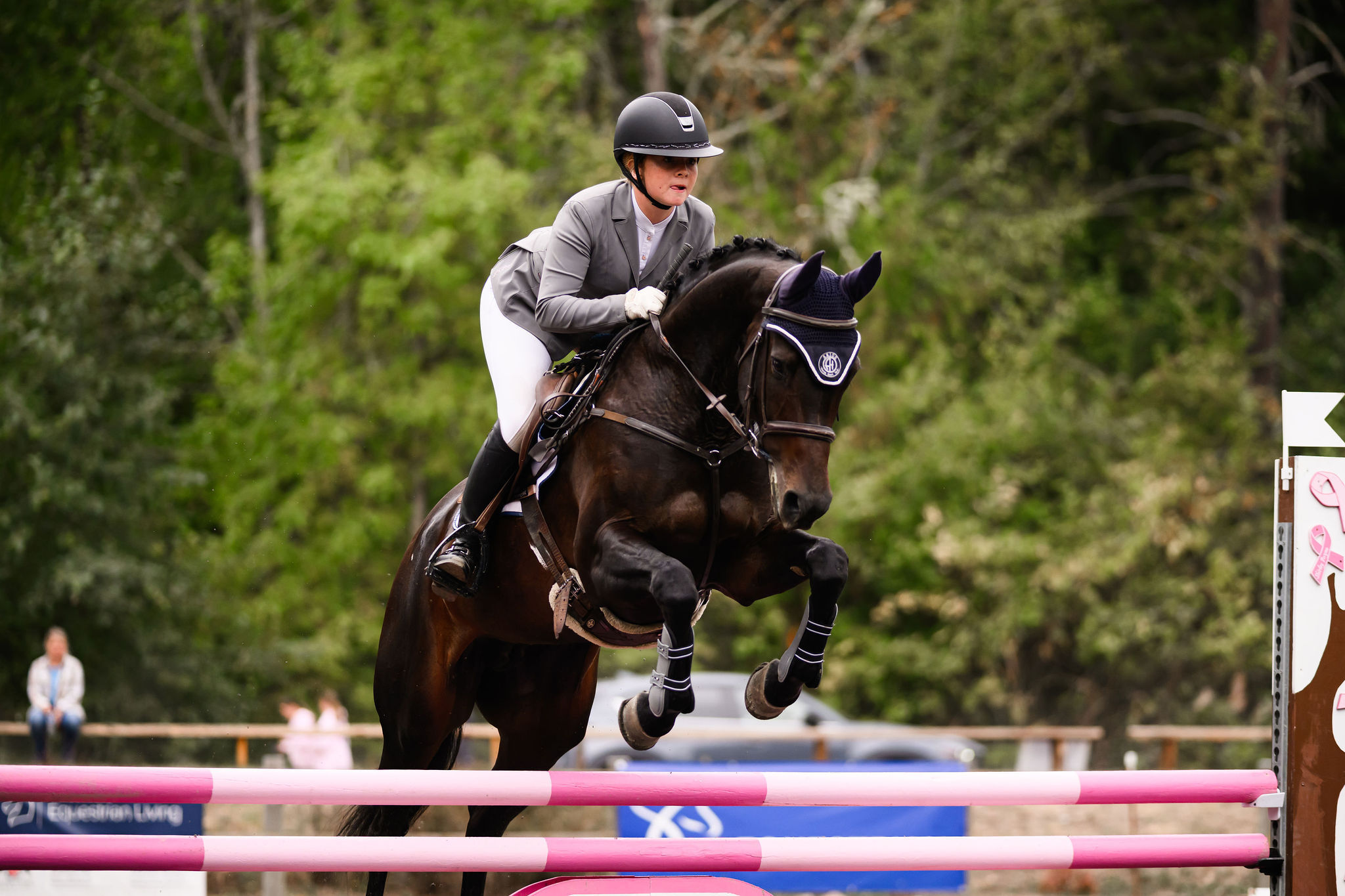 “With the help of Mary Burke and Asia Thayer and many excellent clinicians, we have progressed together,” she explained. “From lows, including being unceremoniously dumped off during stadium where she proceeded to cross the arena and jump a coop with me sitting in the dirt, to being bucked off in warm-up minutes before my stadium round and having to brush the dirt off and proceed, to our current reliable partnership, it has been a journey. It was so exciting to compete at Aspen Farms, something that seemed far out of my reach not that long ago. We have worked hard at dressage, and so I am very proud of our personal best 22.2 dressage score.”