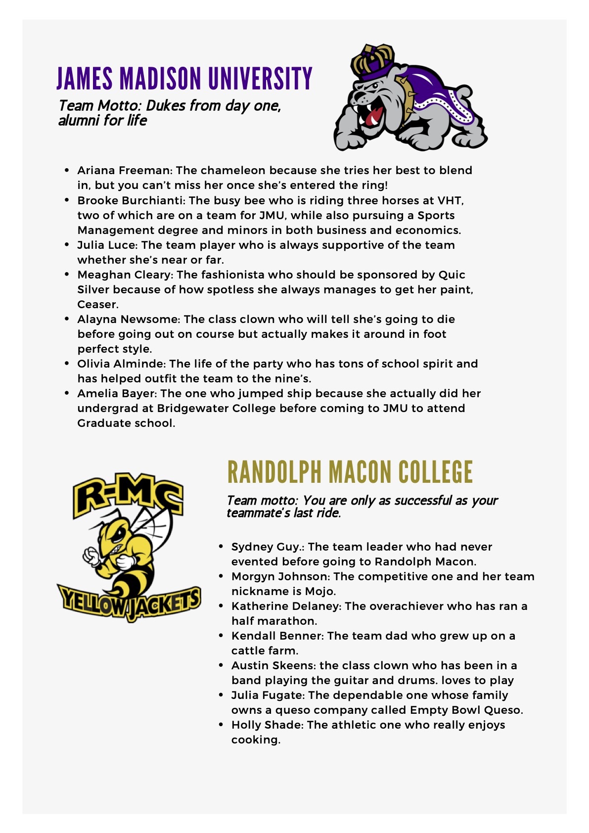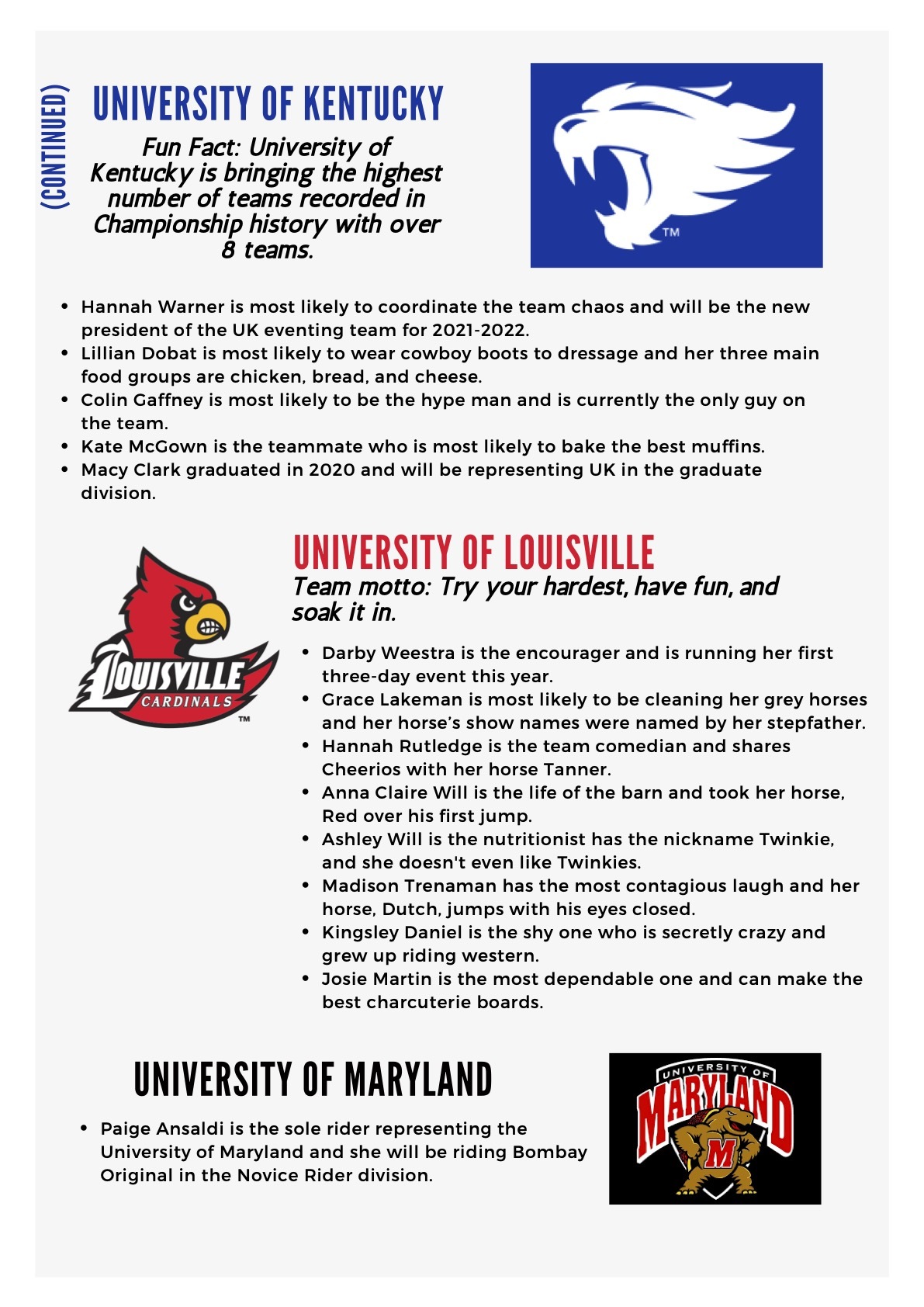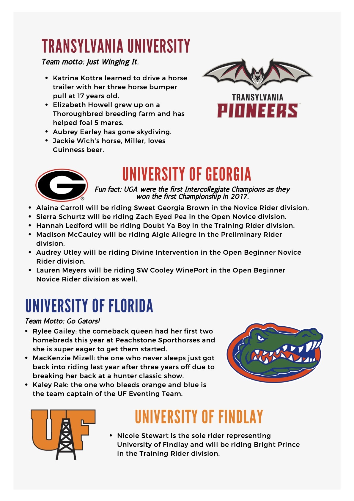 It’s time to meet the teams of the 2021 USEA Intercollegiate Eventing Championships! A total of 105 competitors, 15 schools, and 27 teams will be competing at the 2021 USEA Intercollegiate Eventing Championships on May 27-30 at Virginia Horse Trials.